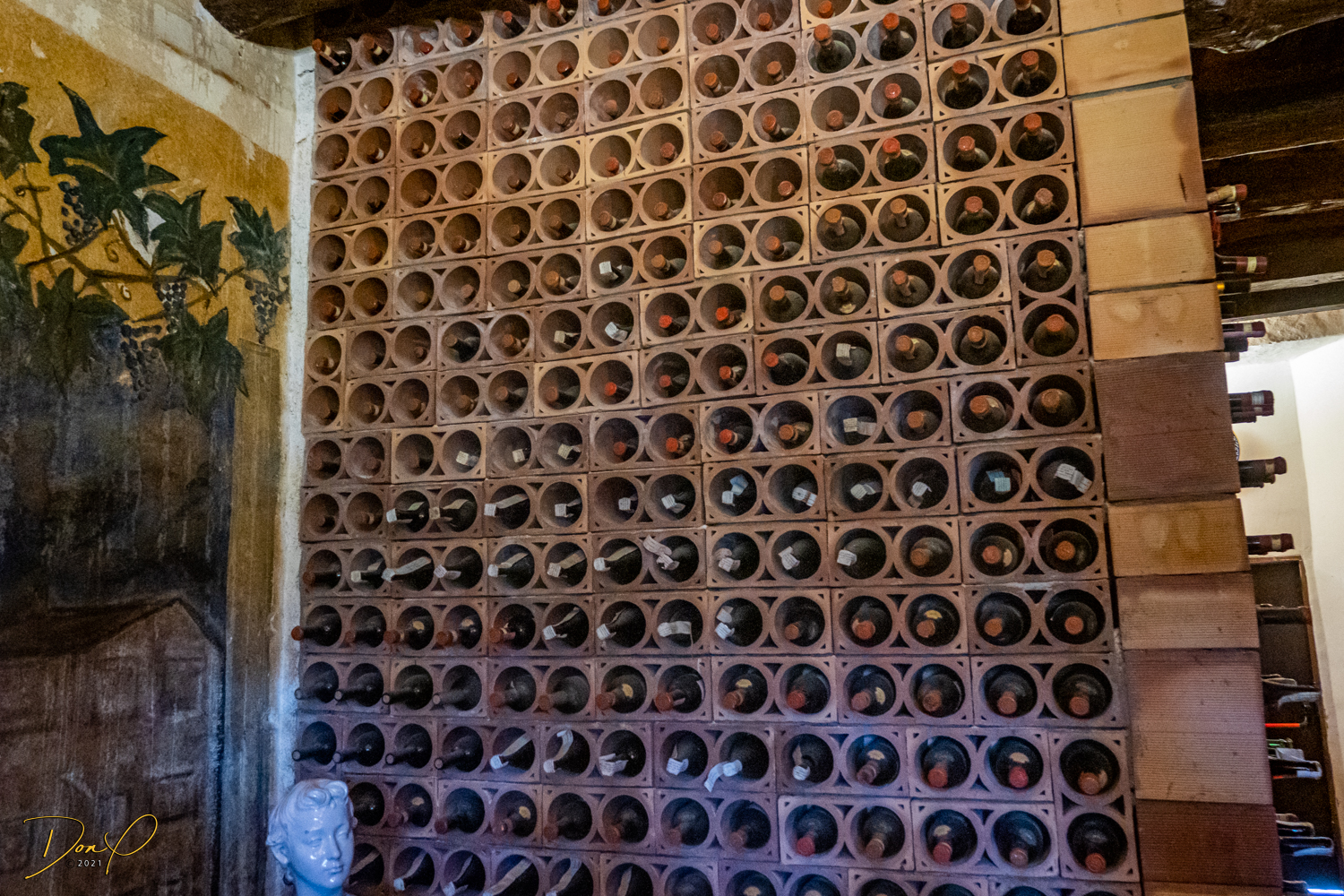 The doorways are barely large enough for a human to fit through and I have to ask our guide, Irene, how they got wine barrels in the cellar that are 8-10 feet wide and as tall? She tells me they assembled the barrels in place! Over 100 of them! We then all go into the restaurant and taste some of their wines. Good in their own right but not California wine by a long stretch!