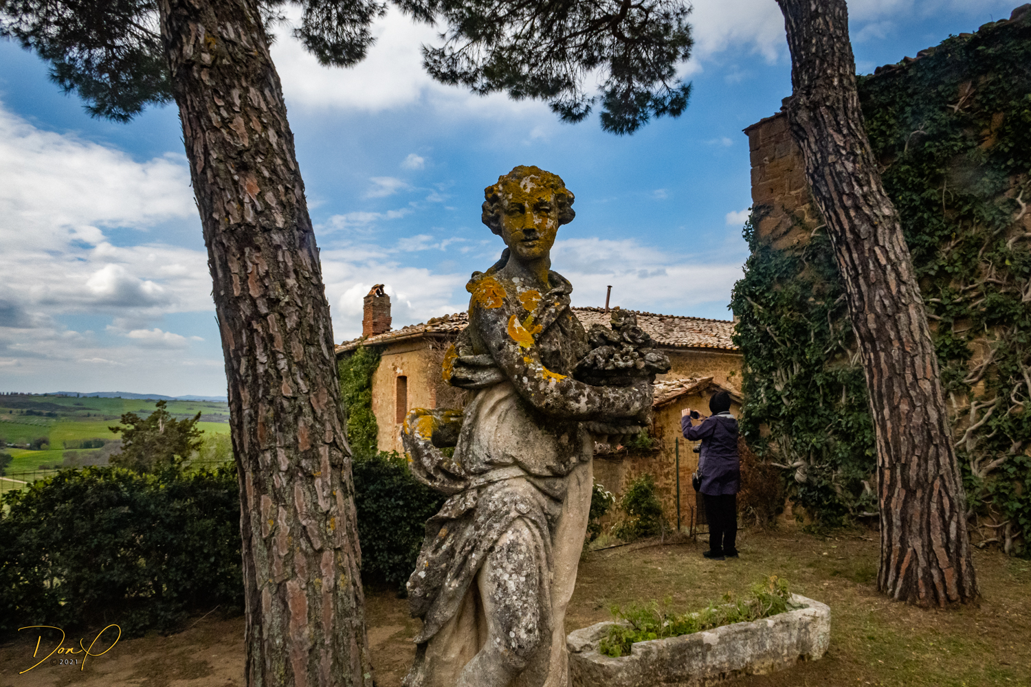 We finish our visit to the castle, which has some fun statues that are clearly very old along with some other very old relics and we drive away past an olive orchard!