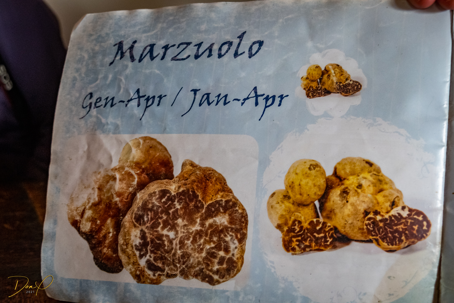 There are 3 basic kinds of Truffles, Marzuolo (found in the spring and the ones we find today!), Tartufo Estivo O Scorzone (Black Truffles, found in the summer and fall mostly) and Tartufo Bianco (White Truffles, found in the fall into winter)