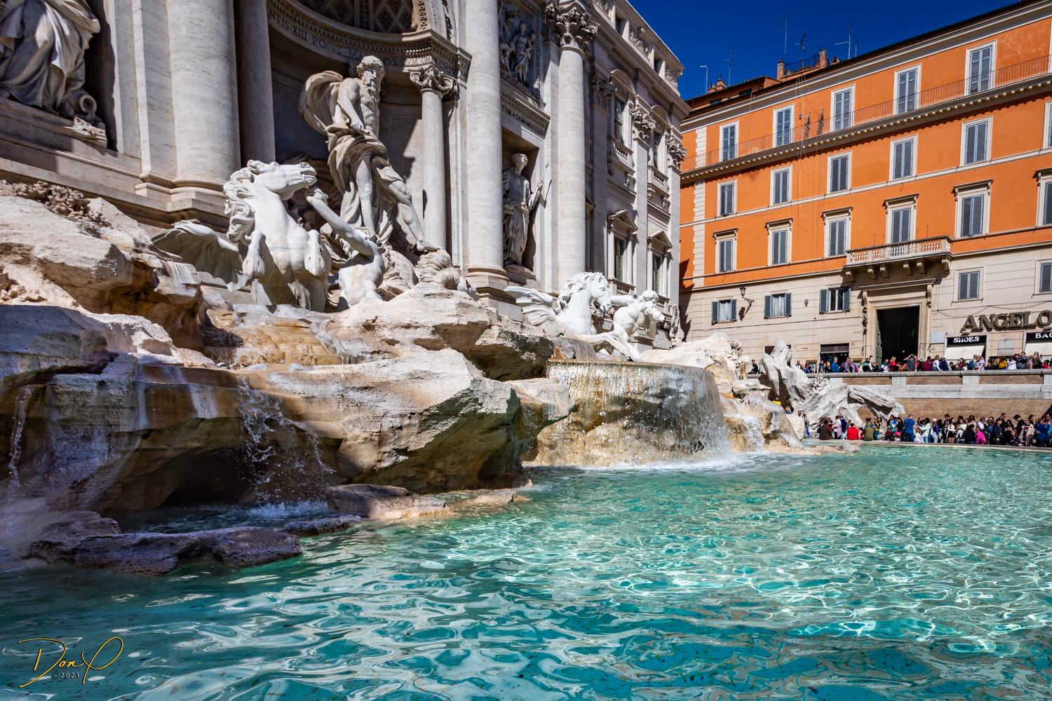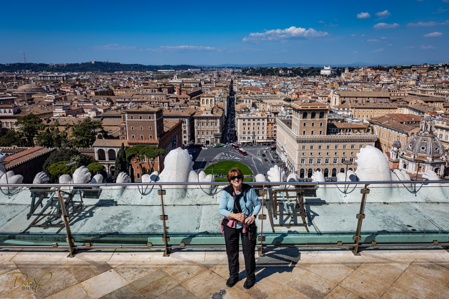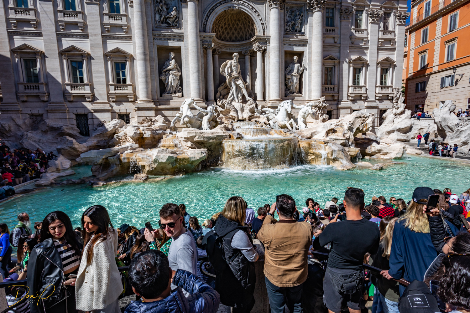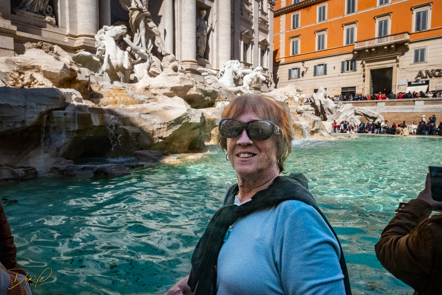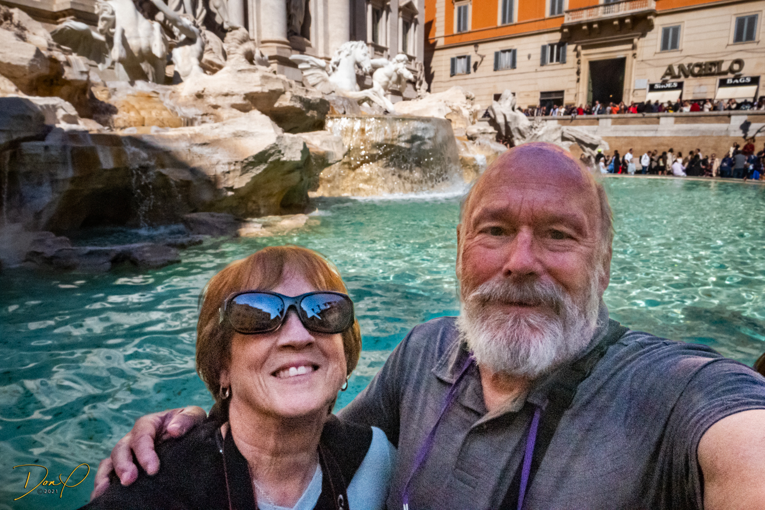 We study the view photo displays at the top and find where the Trevi Fountains are and we descend and head in that direction. Even though I have walking navigation with me, it is not hard to find. Just follow the bulk of the crowd and we soon arrive! Before we leave the Fountains, we get our last taste of Italian Gelato, it is just the best! I acquire some coins in the change from the Gelato and Elee tosses one in the Fountains in honor of her Mom who we brought here 7 years ago in a wheelchair. It brings tears to Elee’s eyes and I choke up a little also! We even get to see the Spanish Steps but elect not to climb them!