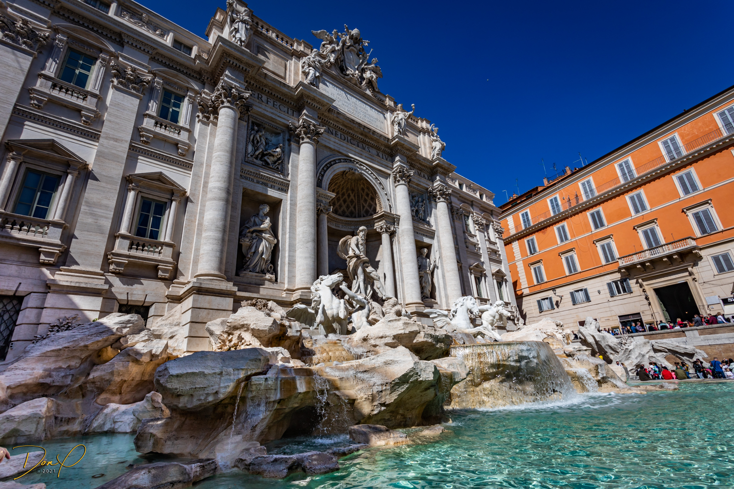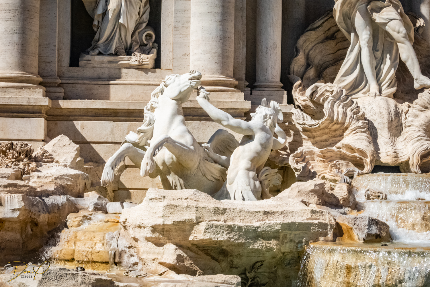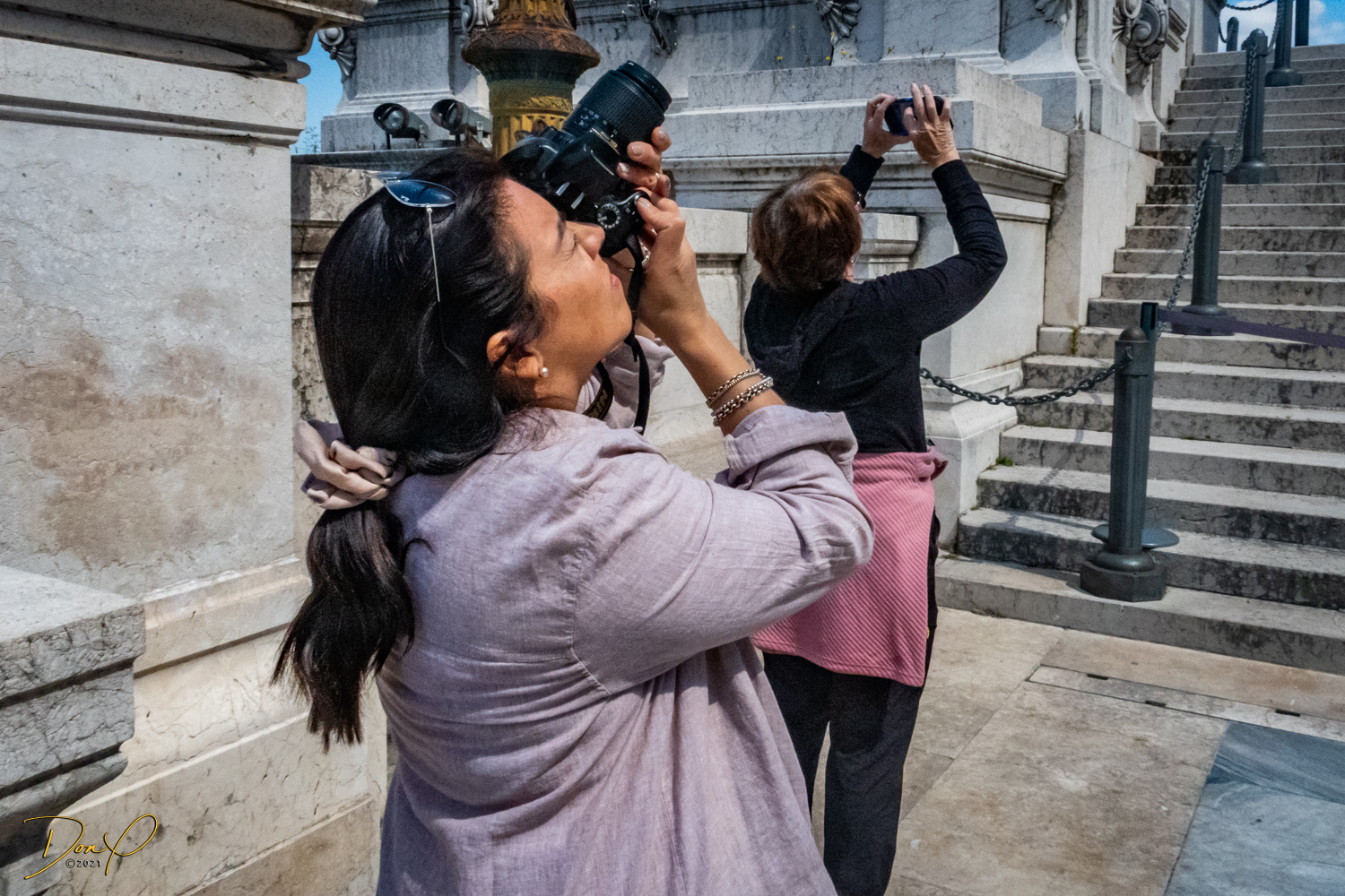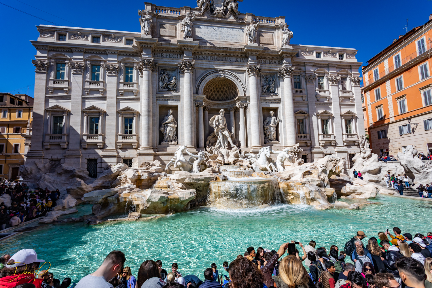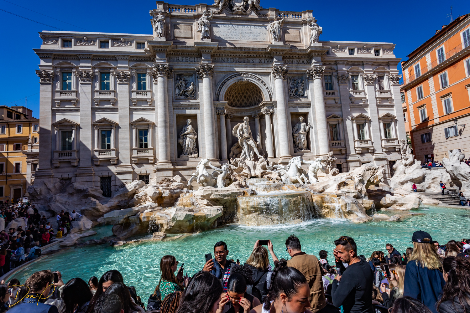 We study the view photo displays at the top and find where the Trevi Fountains are and we descend and head in that direction. Even though I have walking navigation with me, it is not hard to find. Just follow the bulk of the crowd and we soon arrive! Before we leave the Fountains, we get our last taste of Italian Gelato, it is just the best! I acquire some coins in the change from the Gelato and Elee tosses one in the Fountains in honor of her Mom who we brought here 7 years ago in a wheelchair. It brings tears to Elee’s eyes and I choke up a little also! We even get to see the Spanish Steps but elect not to climb them!