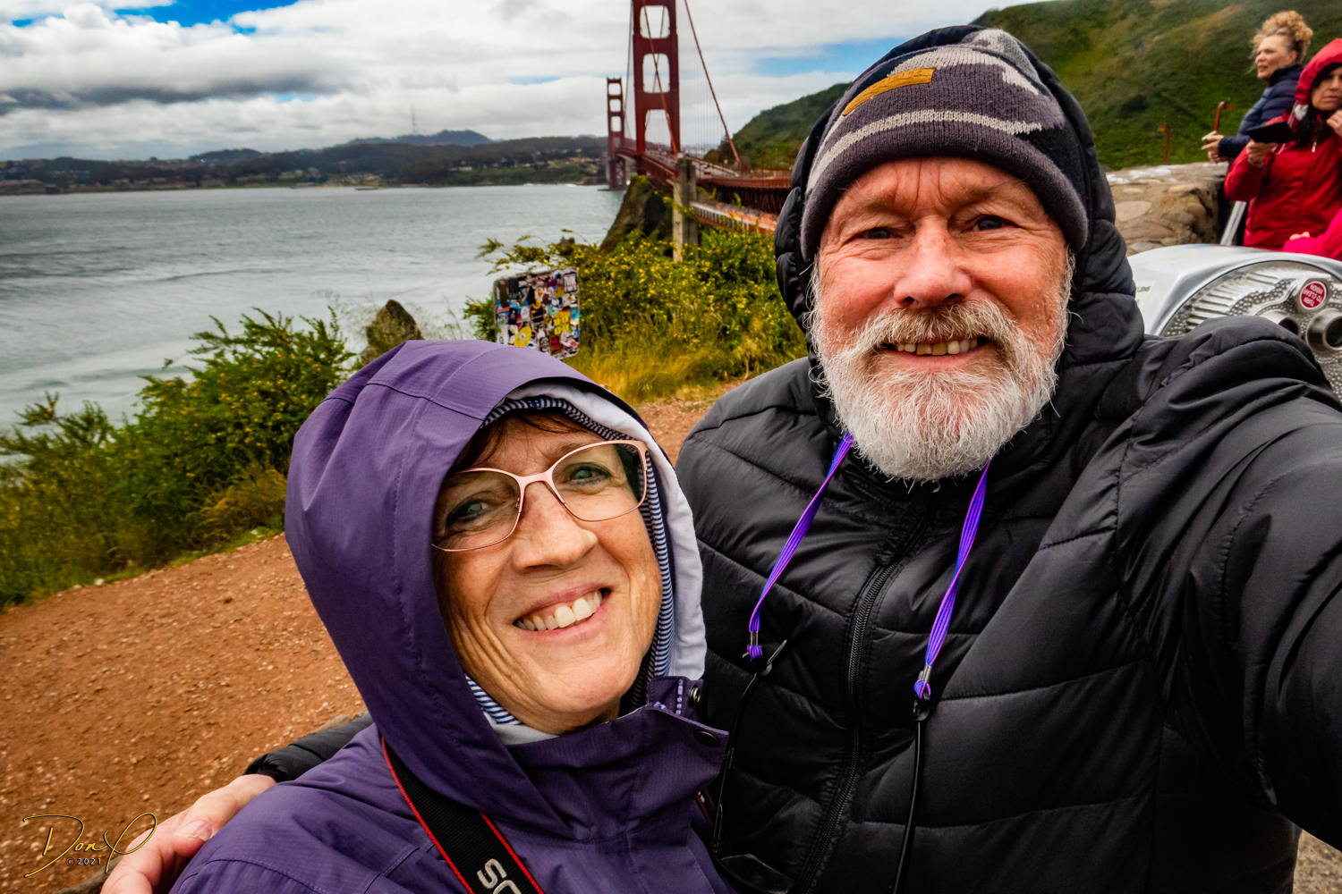 Then we take a Hop On, Hop Off Bus ride across the Golden Gate Bridge to a small park where there are views of the Bridge and the Bay and The City! It was cold and windy but don’t let that slow us down!