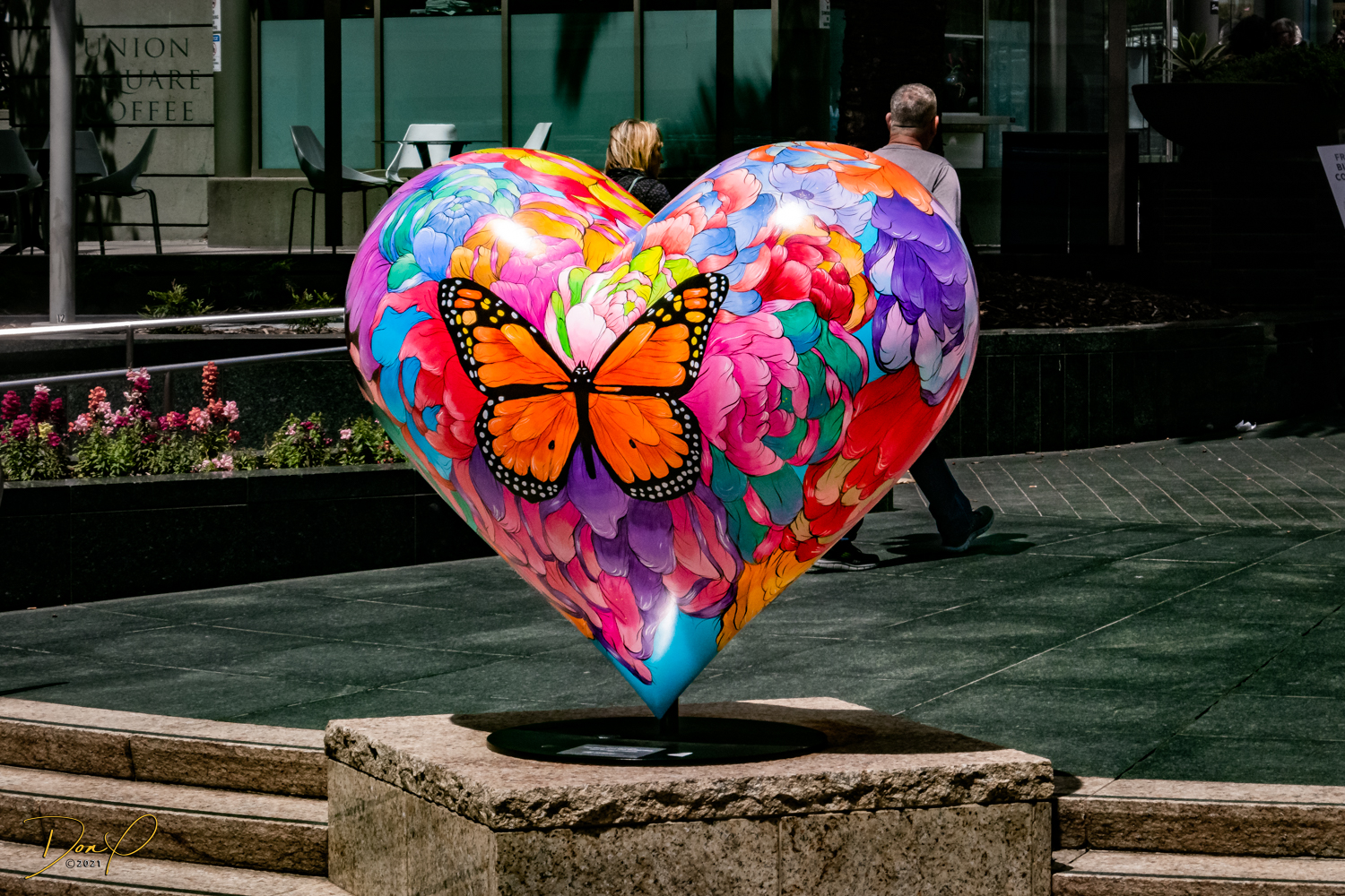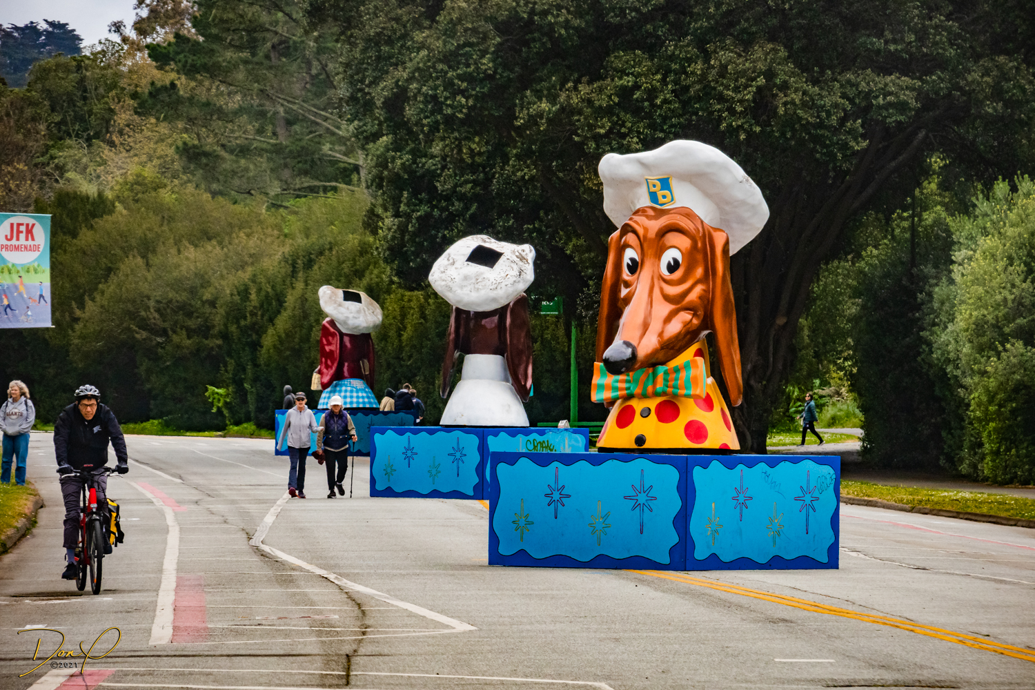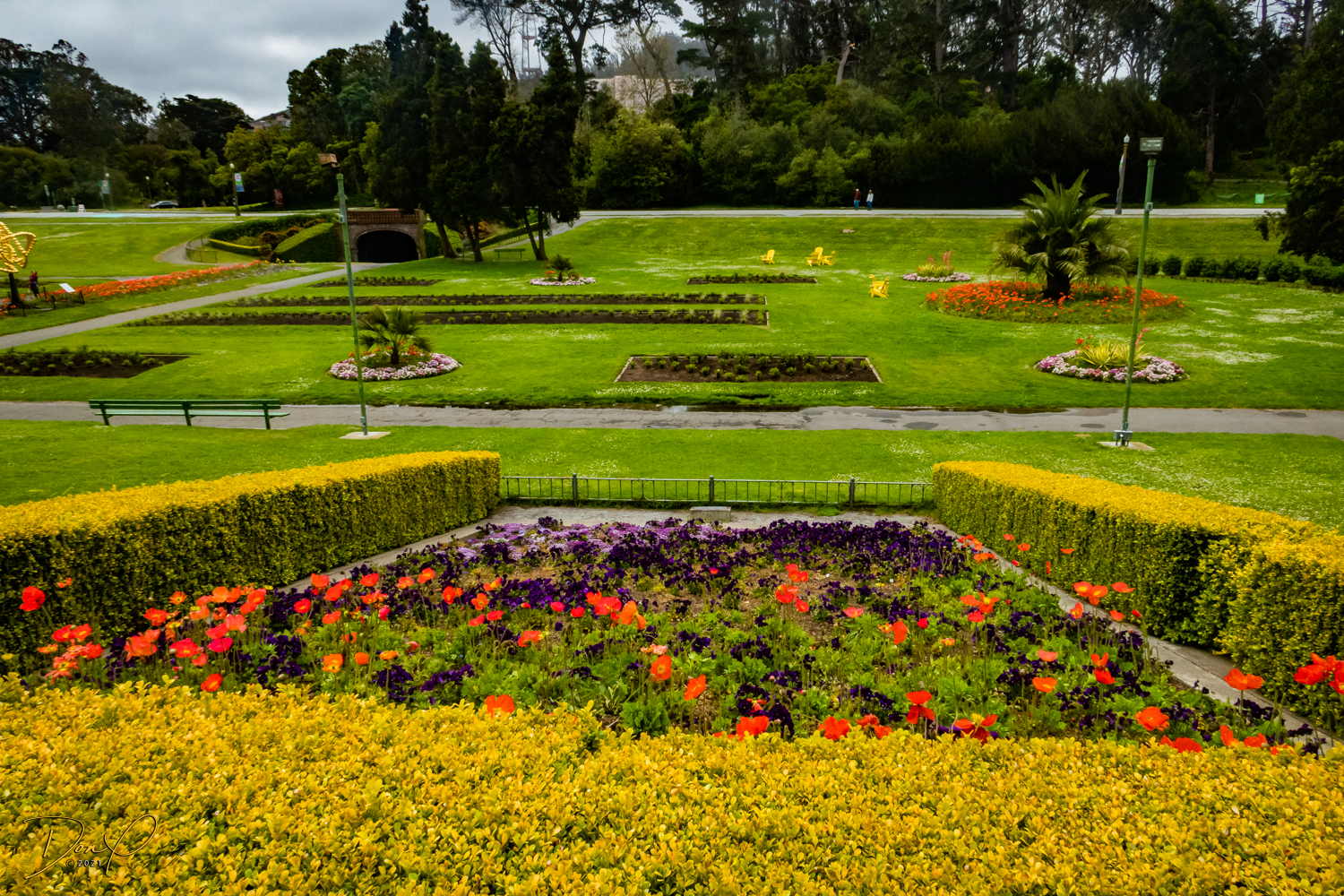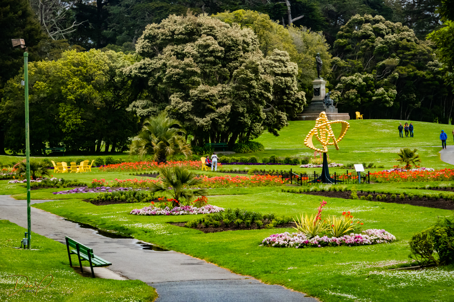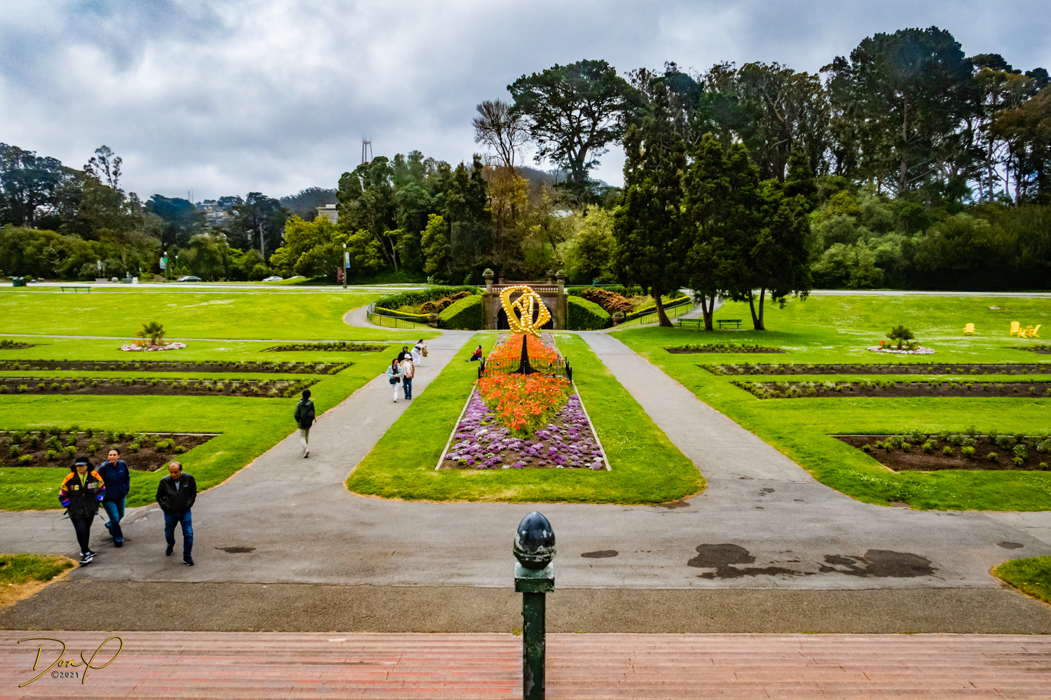 We cross back into the city on the bus and get off at Golden Gate Park. One place that is on our list. Eclectic artwork everywhere. Middle of the streets even! Chef Dog statues that we can’t explain. Walkways. Lawn displays everywhere. An enclosed Botanic Garden that is closed today. A florally painted piano that a local tourist played for me! A floral clock! And a message of love spelled out in large building blocks!
