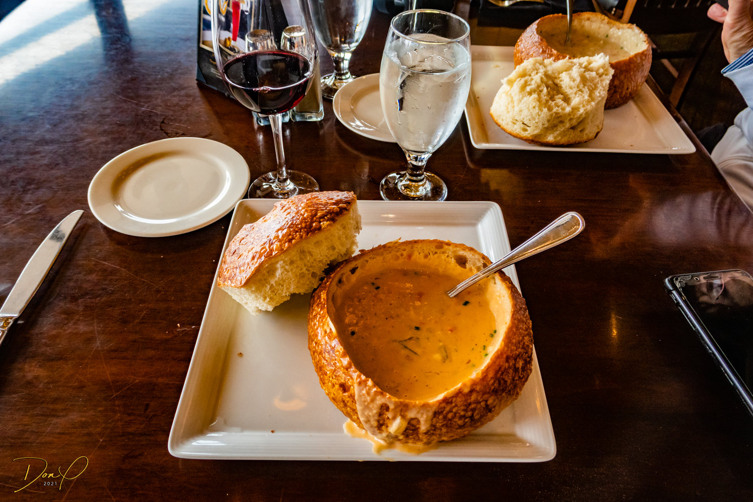 Then, on weary legs, we trudge our way back to the ship, but not until we stop at Boudin’s for some Chowder in a fresh Sourdough bread bowl!