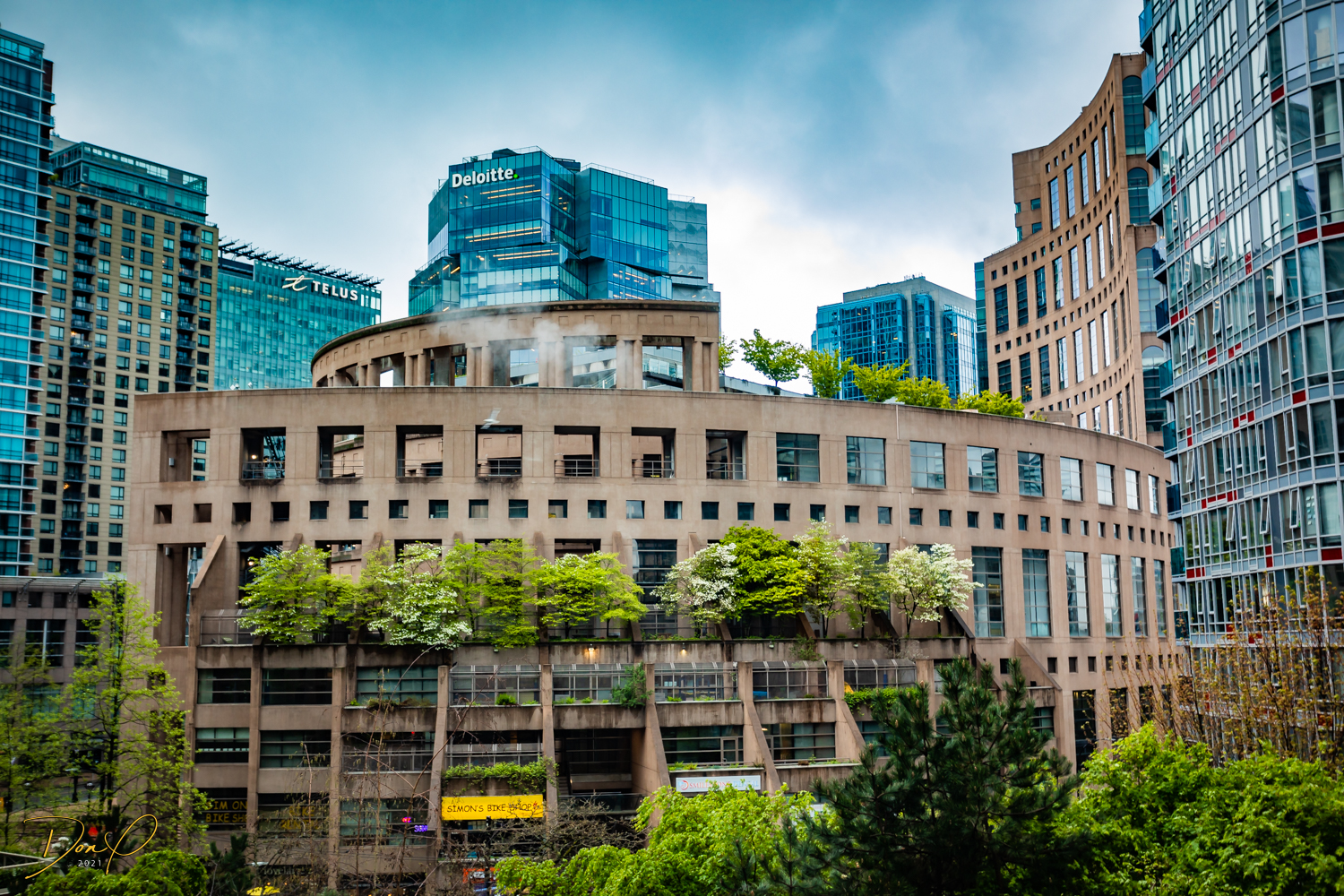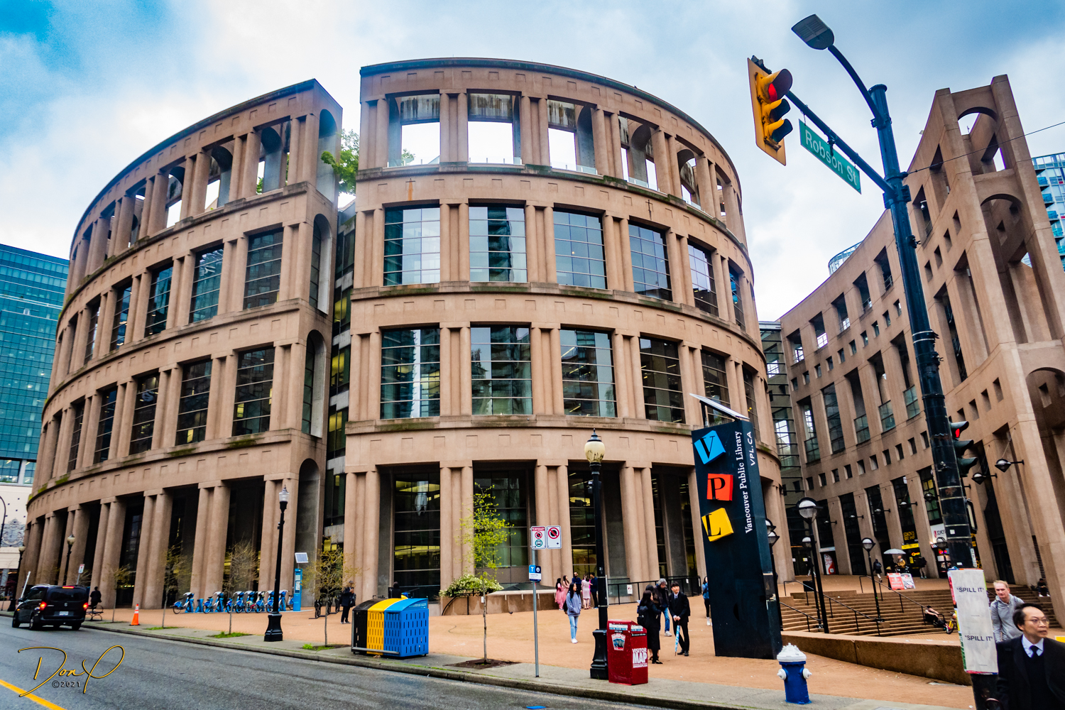 Back down to the street and we take in more sights as we work our way back to the hotel. The Vancouver Library is interesting as it is designed with the Roman Coliseum in mind!