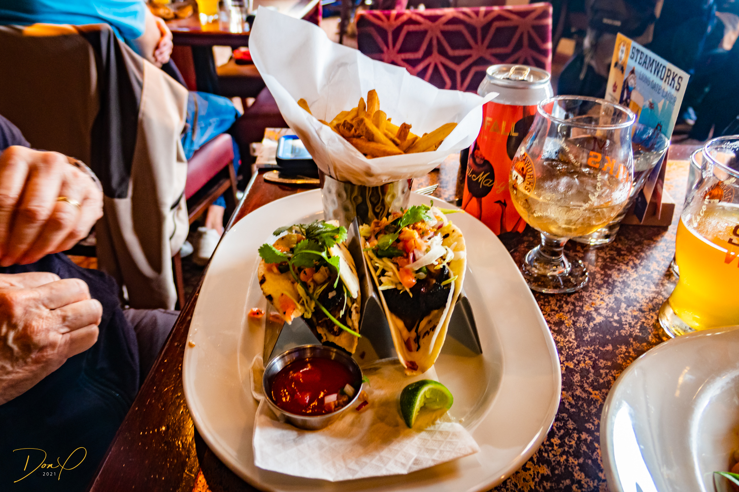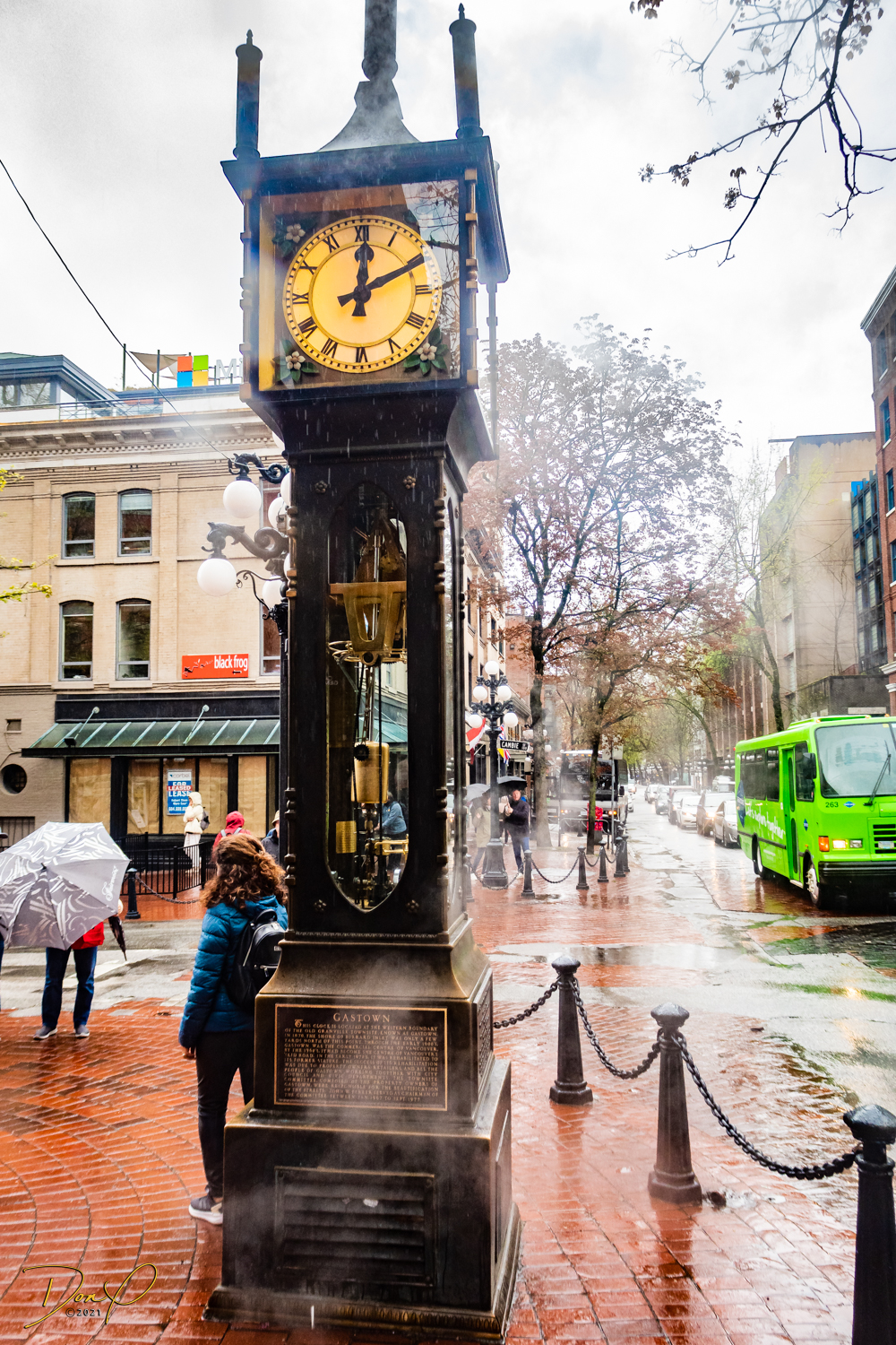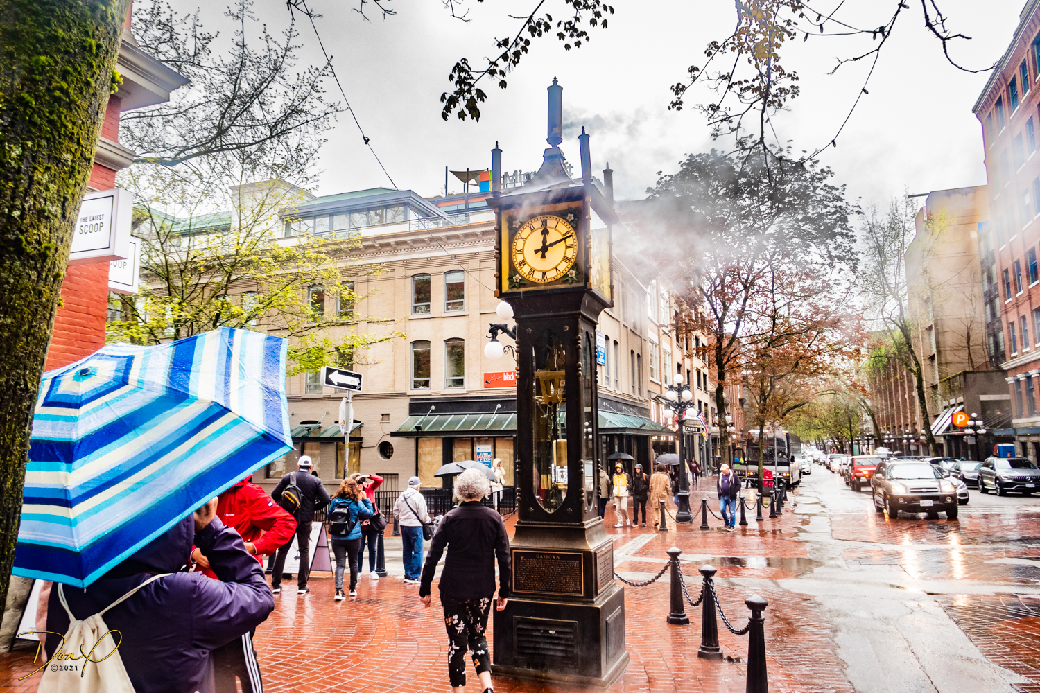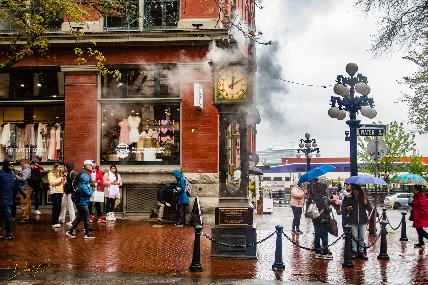 Then we take our cameras and head out on a walking tour of the city. The architecture of the city is quite modern. Then we come across the “Steam Clock”, a clock powered by the city’s underground steam vents! Not modern at all! By now it is lunchtime and we get a bite to eat and drinks in the “Steam Works” bar overlooking the seafront.