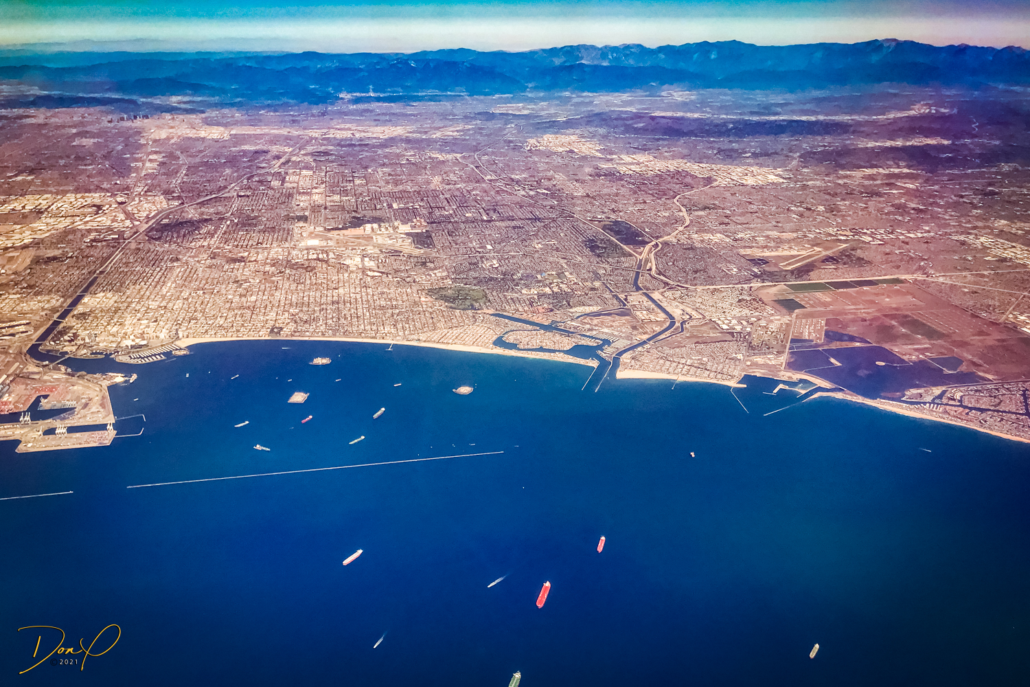 We arise today excited for our newest adventure! We zip up our bags that were mostly packed last night. Just the final essentials to put in and we/re ready to go! Our shuttle driver arrives on time. All is good. We are traveling with full size Check In Luggage this time for laundry mid trip will be expensive and unpredictable. I entertain myself by photographing Southern California from the plane window.