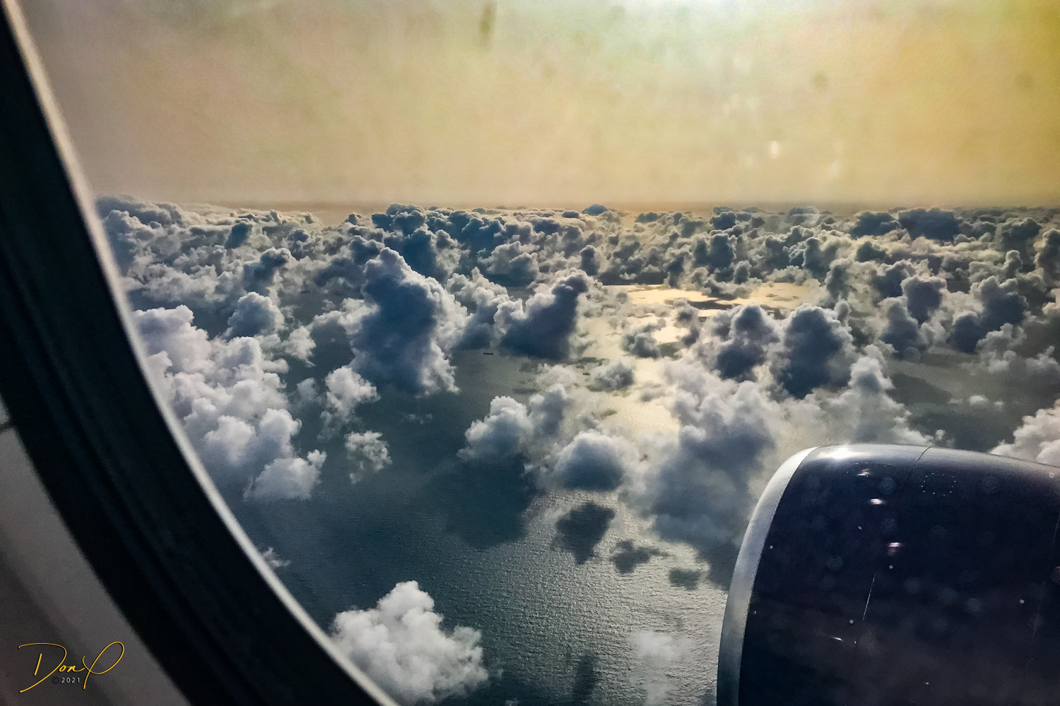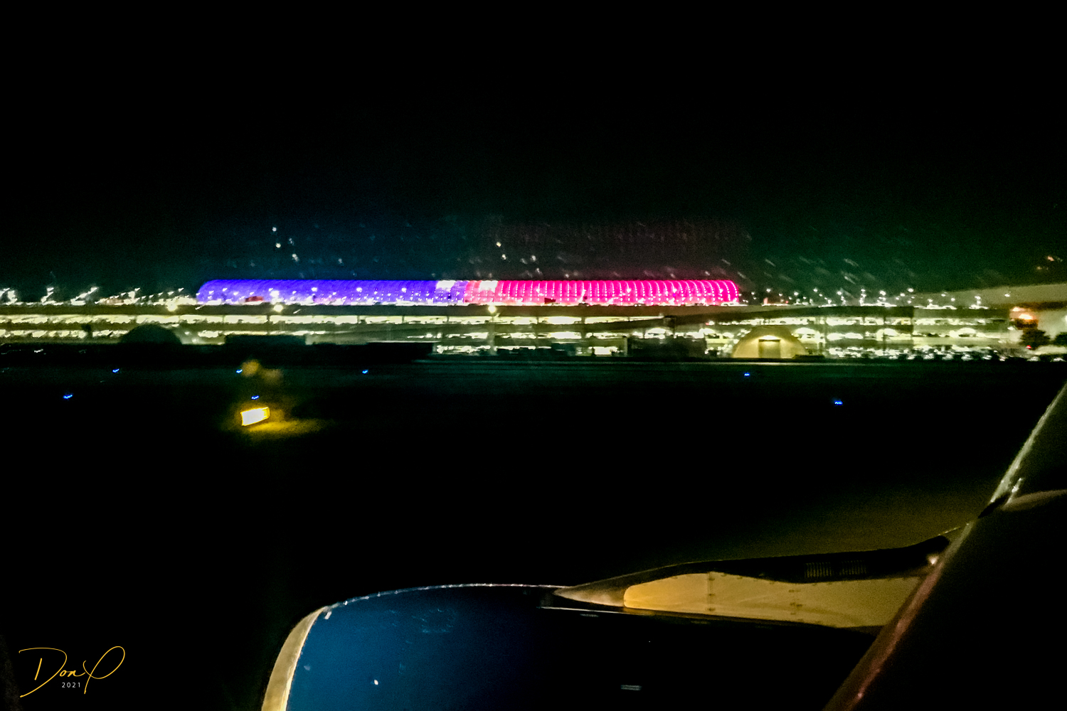Elee clears the line and gets seated next to a young lady who is very conversational (to her benefit, considering her exhaustion level!) but I get flagged (Oh great! What now???) and I’m told my seat has been changed. But the good news they tell me is I have an empty row and have 3 seats to myself! Looking forward to this arrangement, i get on board the plane and find I have been assigned to an overwing exit row (that doesn’t have reclining seats) and I actually look forward to it! The plane takes off and I strap myself into the middle of 3 seats and lay down across the 3 seats, not really comfortable, but doable! I close my eyes and try to sleep, fitfully and somewhat unsuccessful for sleep but I get some rest!