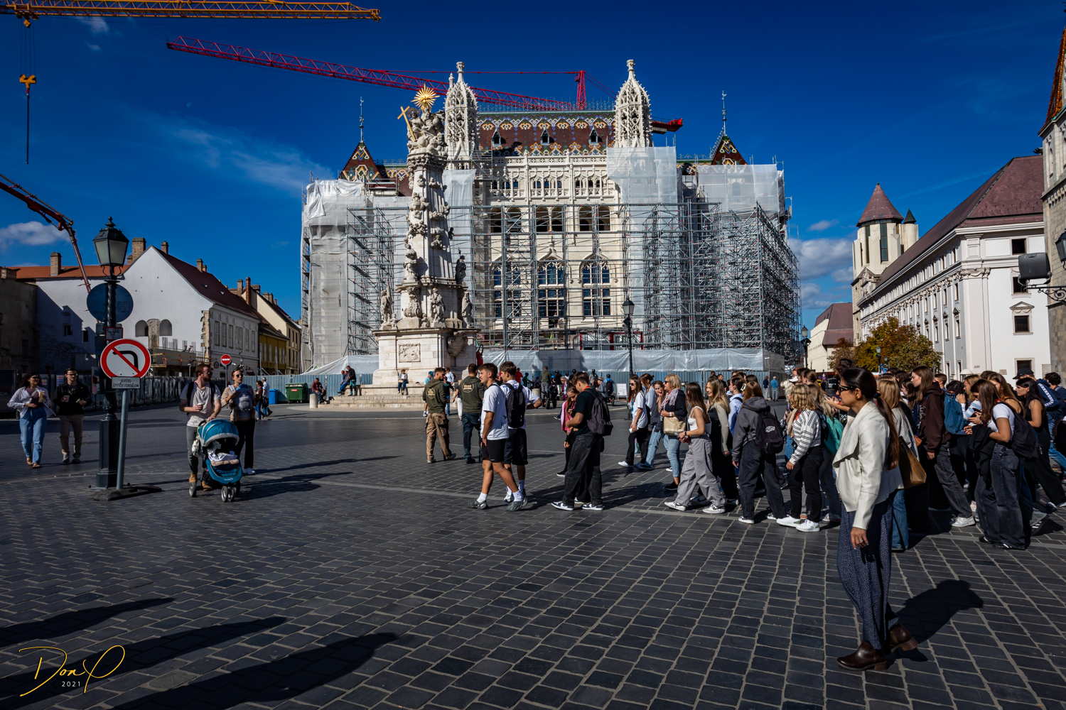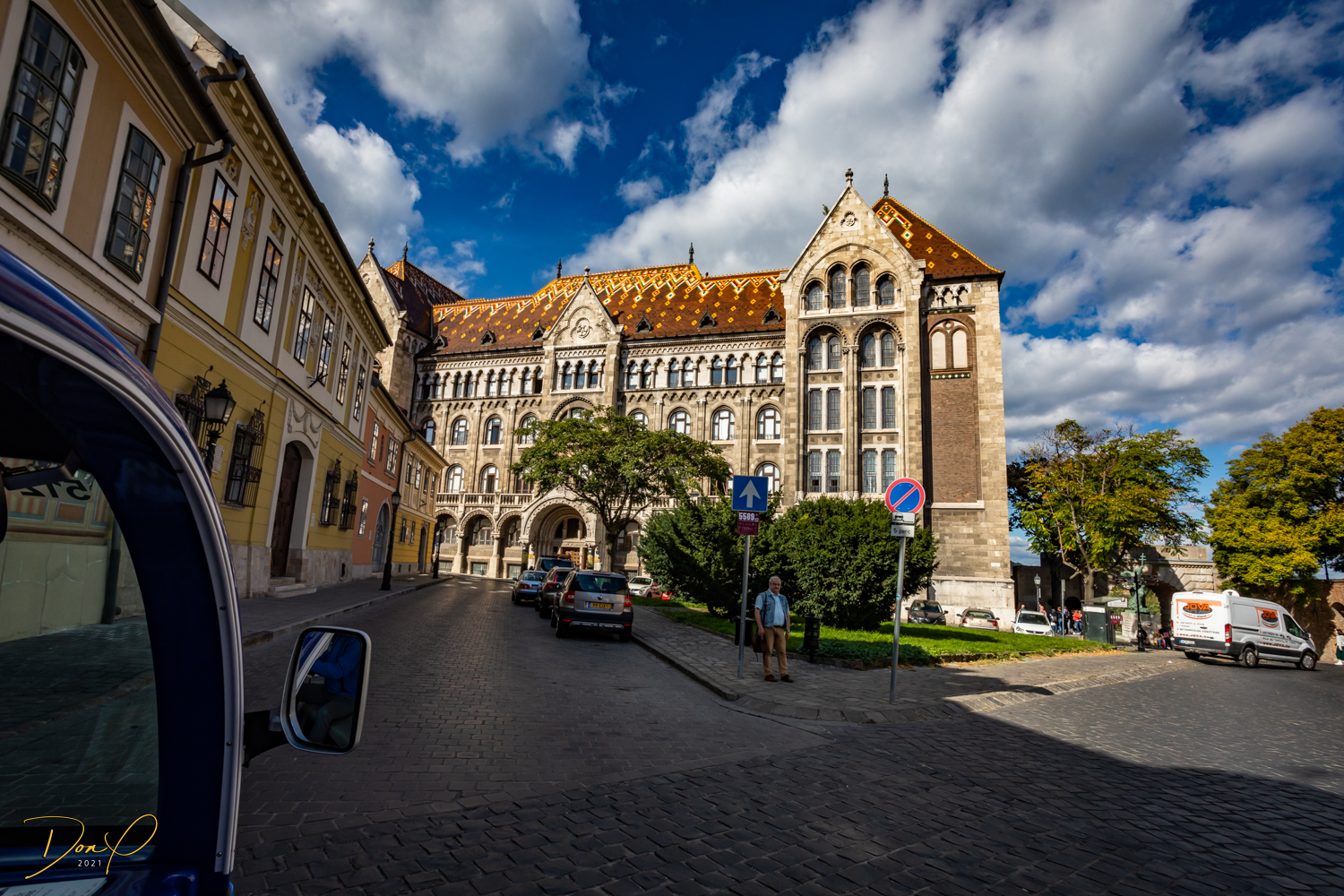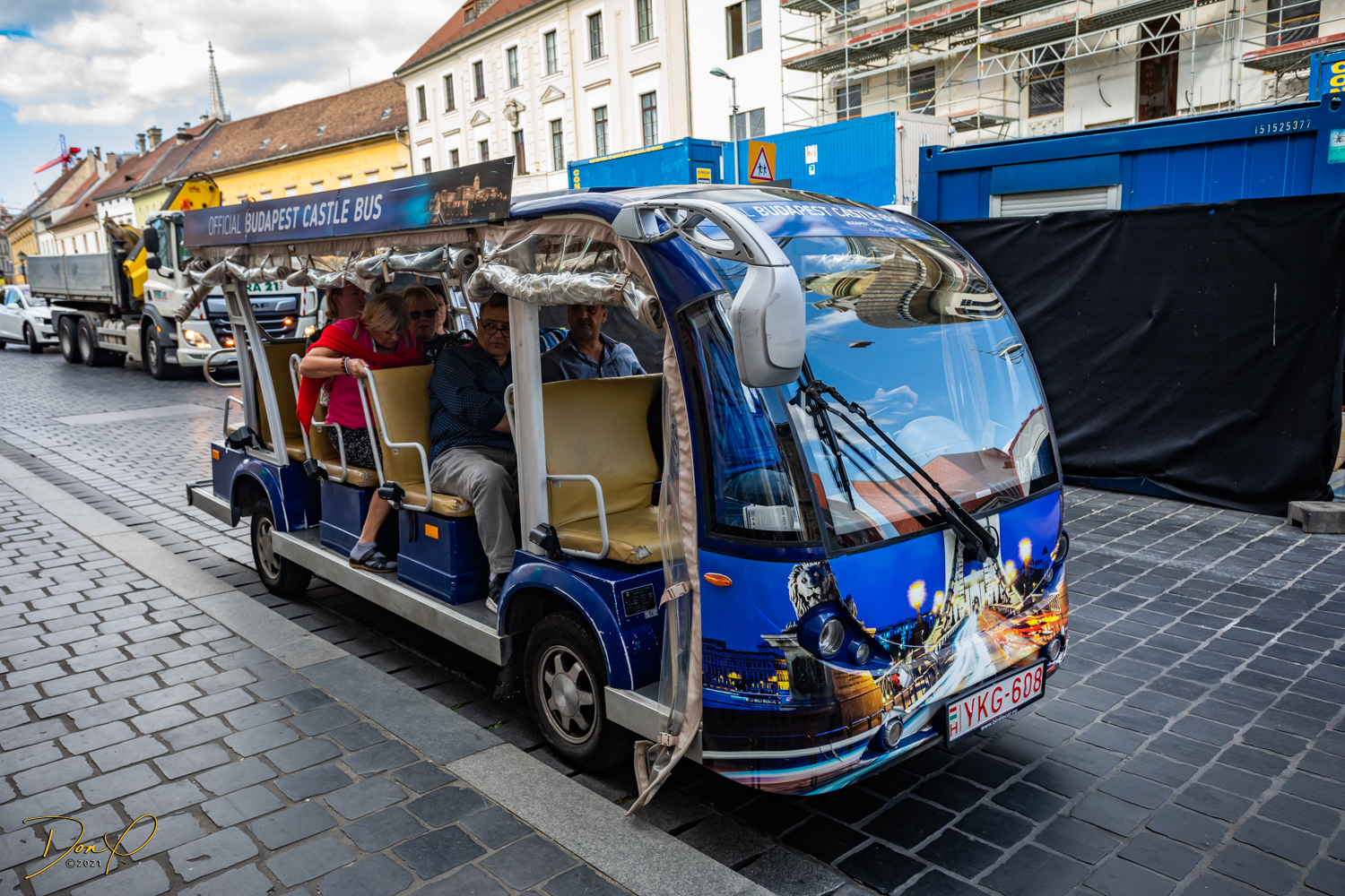 Once we finally get to the Funicular, we cue up for tickets. The cue is about a hundred people long! A savvy Vendor selling tickets to an enhanced golf cart ride up instead of the Funicular sells us on a golf cart ride that includes a Hop On Hop Off feature at all the stops! And we know that the Castle and Palace are on steep hillsides so we go for it. As fun as a Funicular is, we have ridden Funiculars in many places around the world. So we opt for the easier walking routes!
