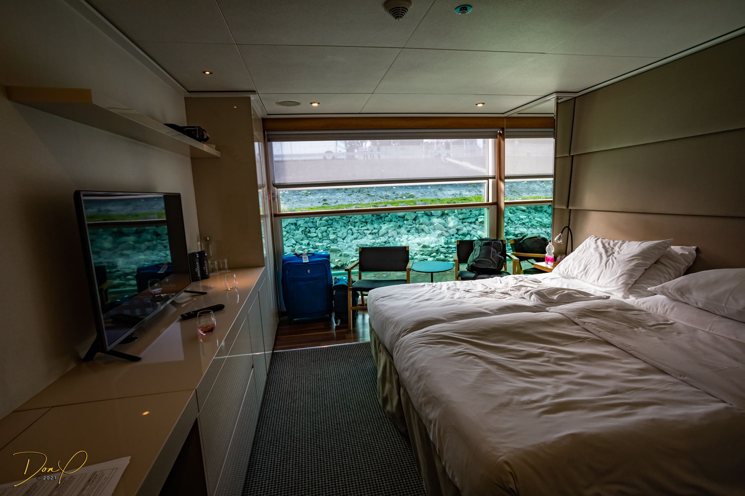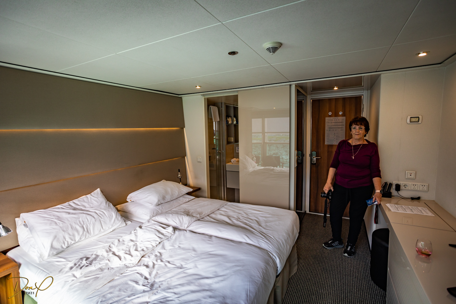 So we jog for 5 seconds and jump on the bus. Sure enough, the bus takes us within walking distance of our ship! Bless that young man’s heart! We make it to the ship and concierge shows us to our room. We take a couple hour nap and then attend an orientation meeting on the ship! We have logged almost 10,000 steps today and are glad to be “home” for the next 8 days!