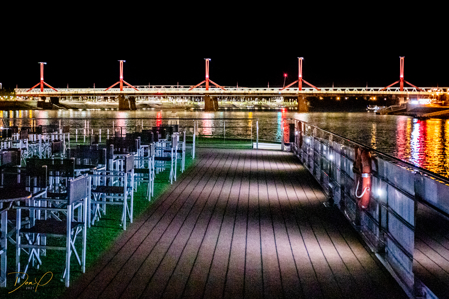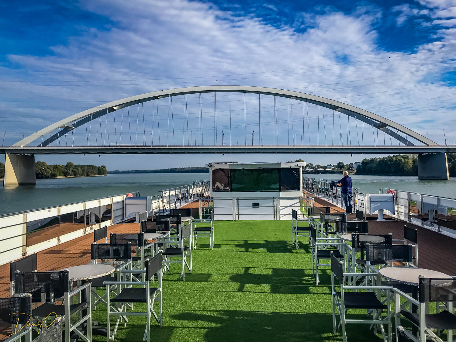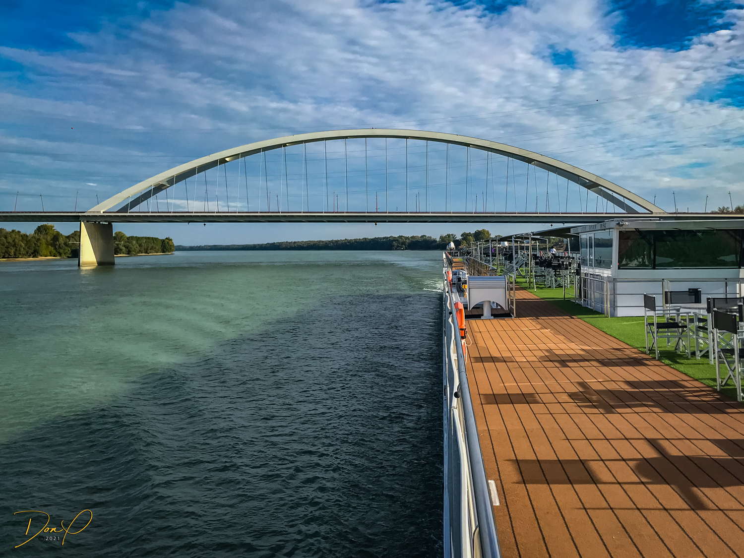 We get back on the ‘Castle Bus’ and ride down to the bottom. We then ride a train tram for a mile or so along the river. We get off when the tram starts to turn in and up the hill of the city. We need to travel 2-3 more miles along the river to get to our Ship. We start walking with neither of us looking forward to an hour plus hike. But public transportation here is prevalent and cheap. So we call out at a bus stop, “Do you speak English?” And a young guy says, “I do!” (people here are all friendly and helpful) So we describe our dilemma and where we need to go and he explains to us that we need to take the 107 Bus and it will take us right by our ship! I look over and see a blue bus pulling up to the stop (that has ‘107’ on the marquee) and say, “Like That one?” And he says, “Yes, that one!”