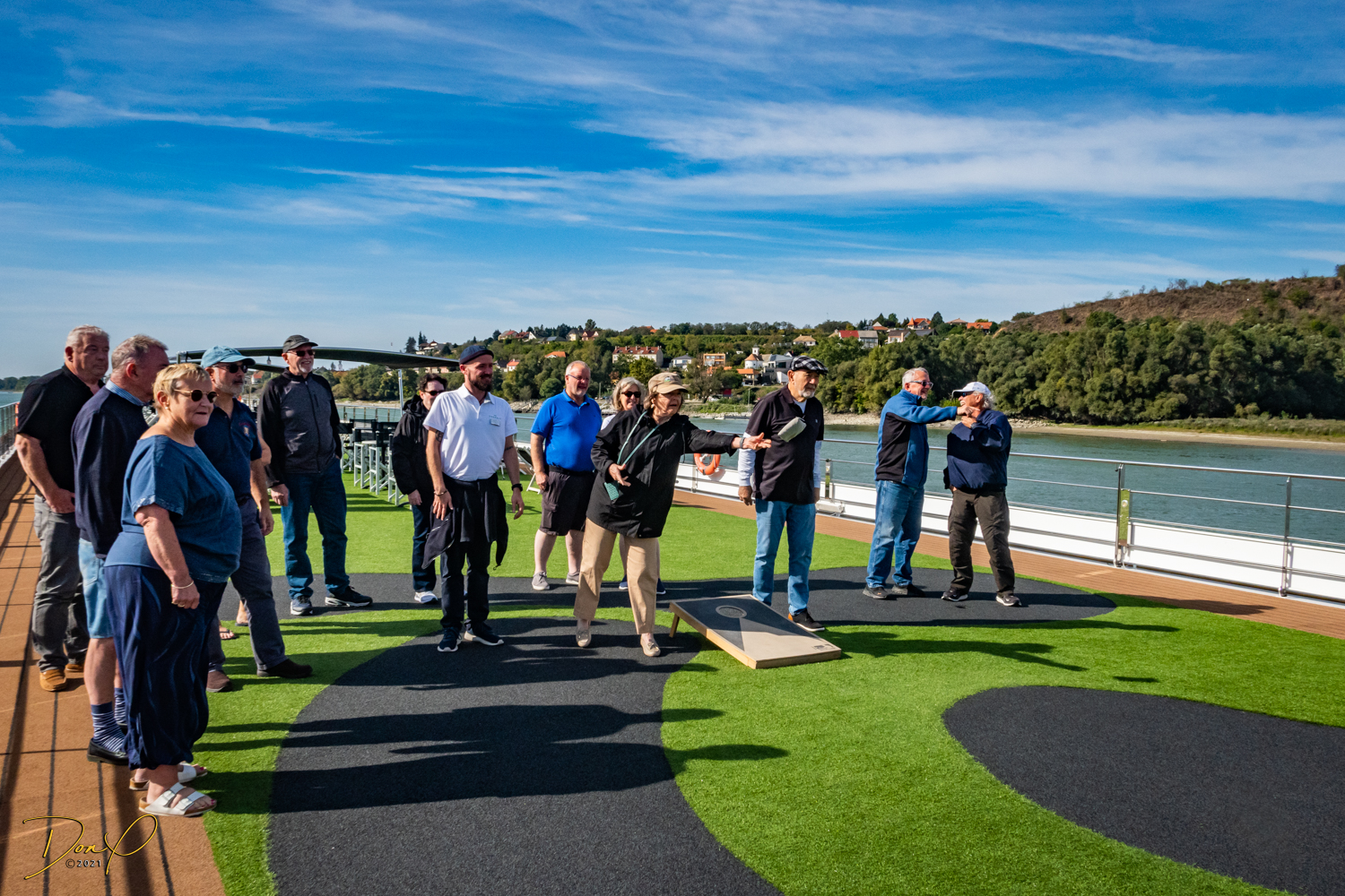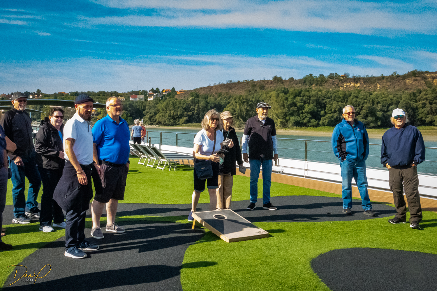 Back on the buses and we head back to the ship. An hour’s nap is refreshing! We go up on deck and play a game of Corn Hole! Neither of us wins, but fun and camaraderie is had by all!