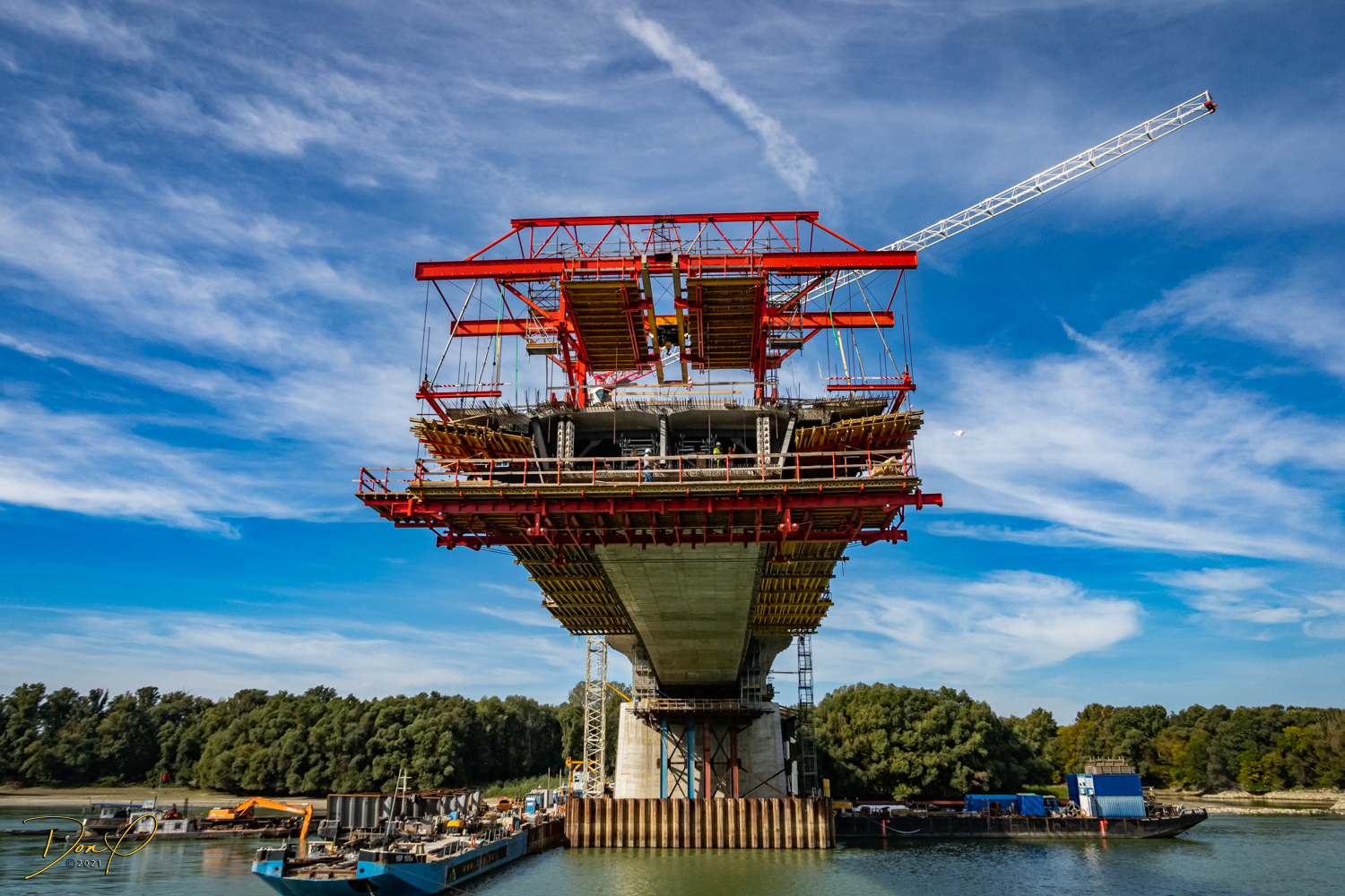On our time on top of the ship, we are passing under a bridge being built! Such an interesting thing to watch!