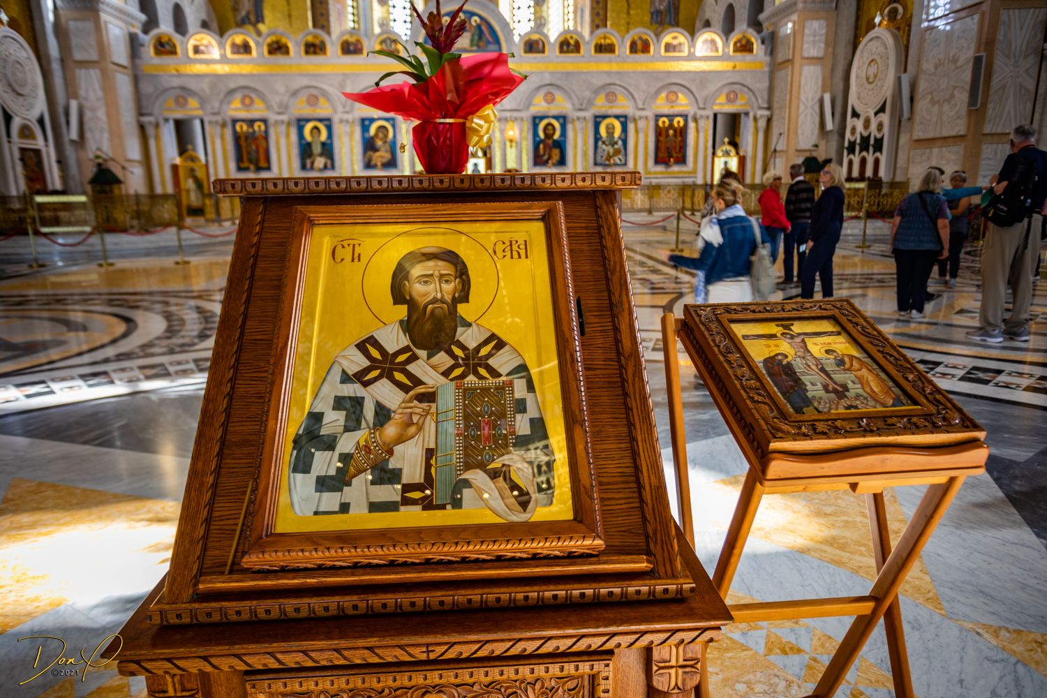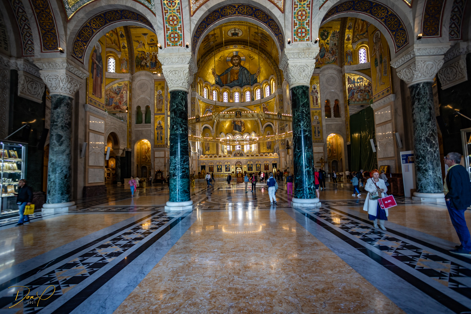 We get some panoramic views from the fort and head back to the bus. Next we visit the Belgrade Temple. More amazing architecture both inside and out. We watch as patrons of the church come and go, digilently kissing all the alters. There is a lot of gold leaf and gold plating and the lights twinkle and shine!