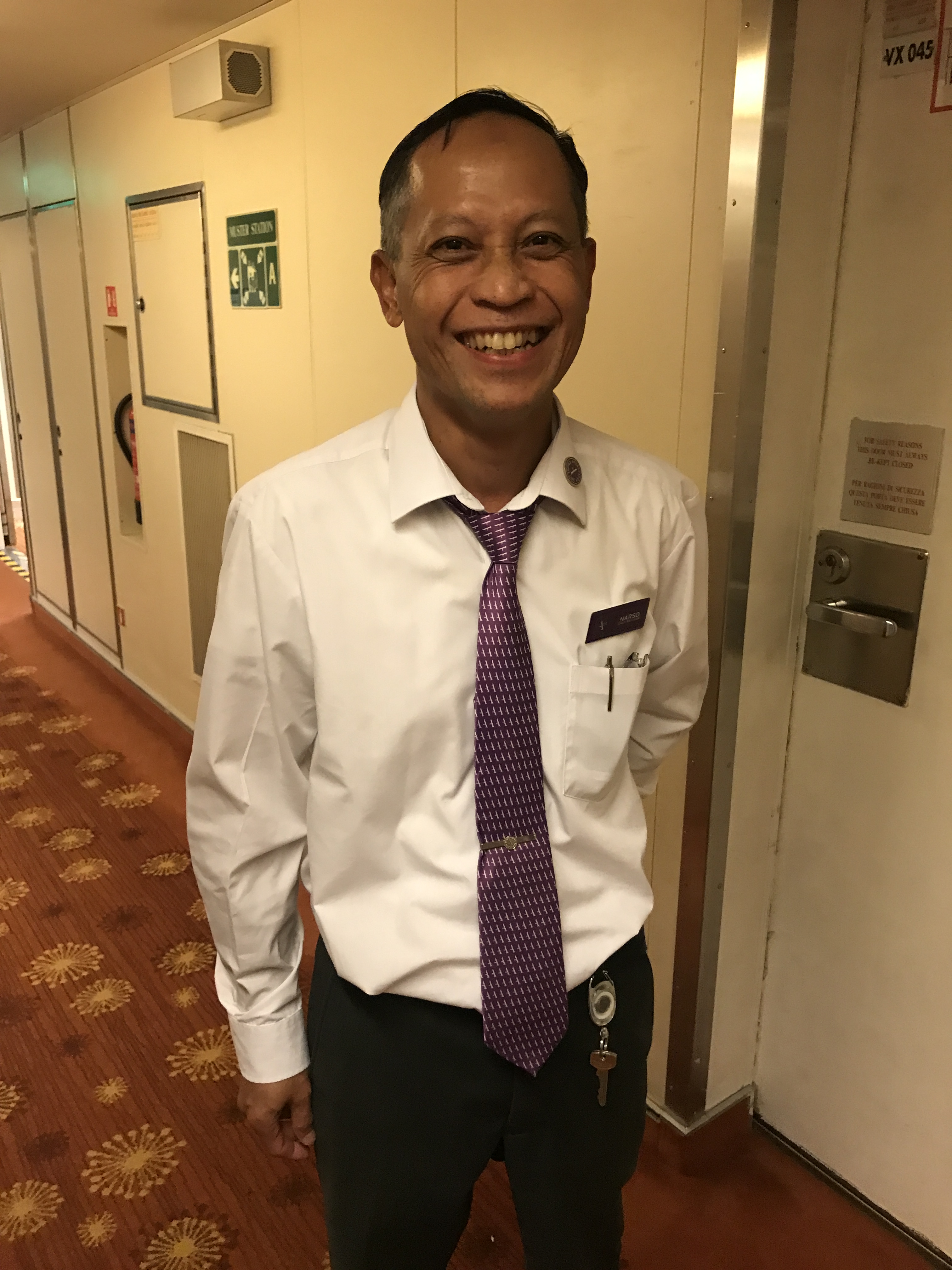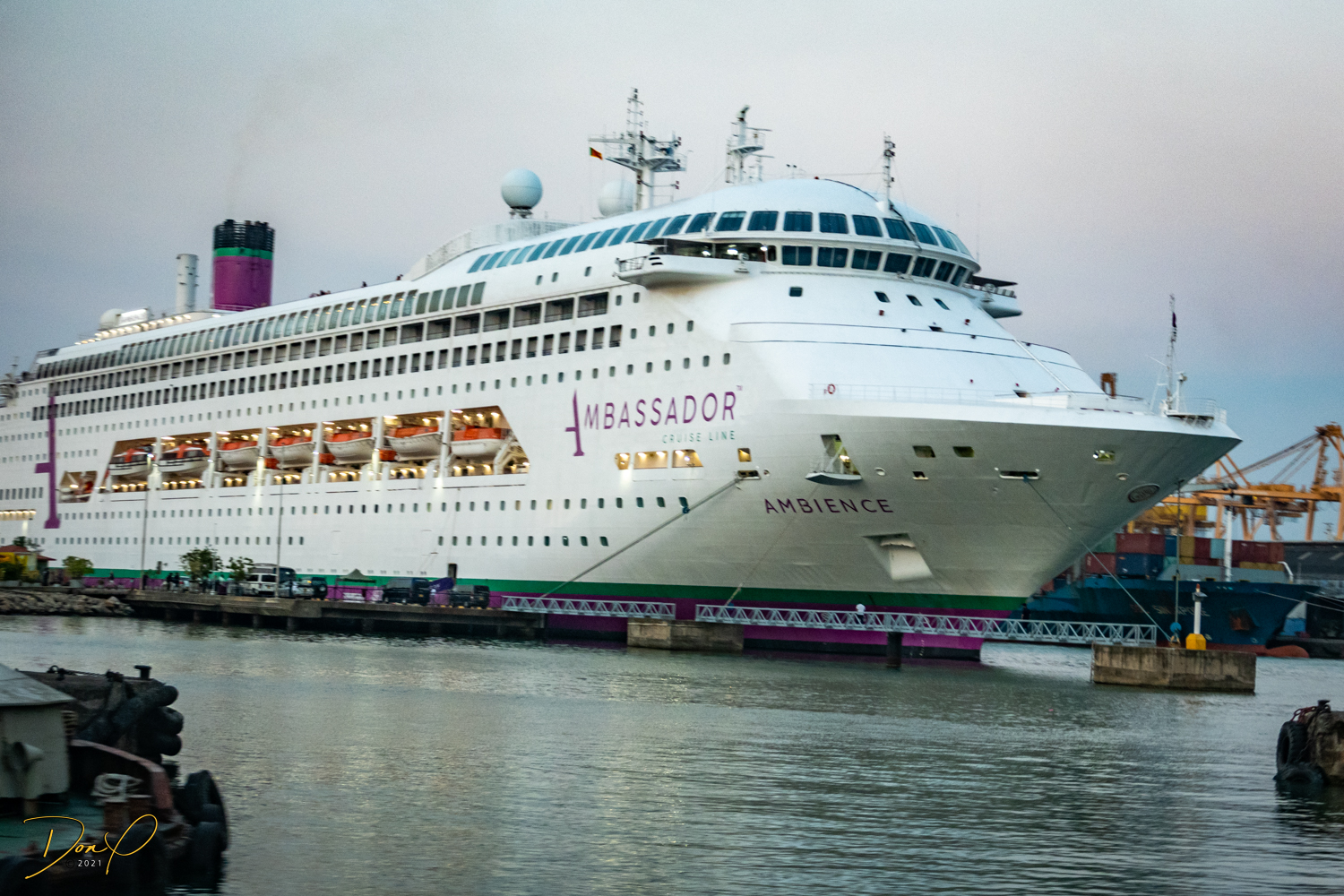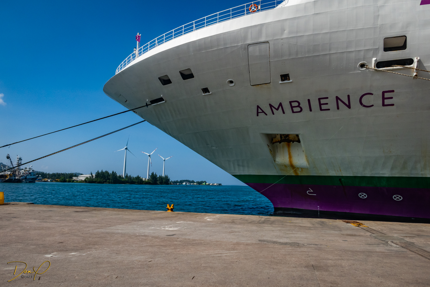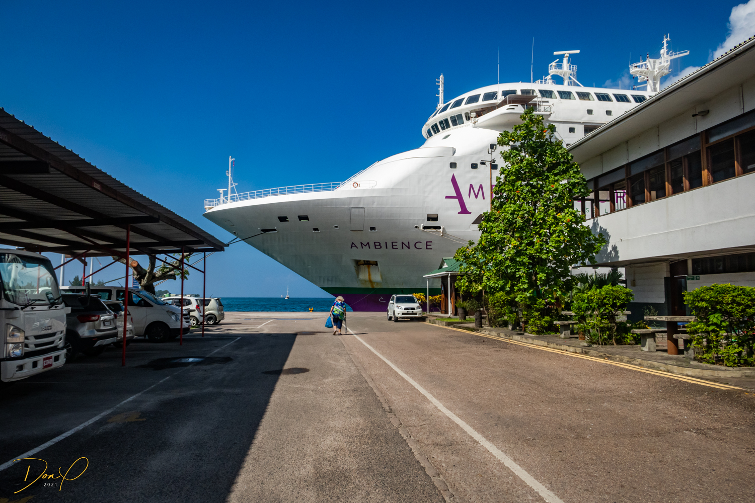 Coming into port today, we have all the indications of a Tender Port (No, not a soft and gentle port, LOL) A “Tender” Port is where you dock in the harbor (like we did in the Maldives) and the ship’s ‘Tenders’ (aka, lifeboats) bring you to shore. But then, as we get closer, we see we will be pulling up to a dock. This is our preferred way to come in as we don’t have that added chore of riding the Tender to port, but can walk right off the ship onto dry land!