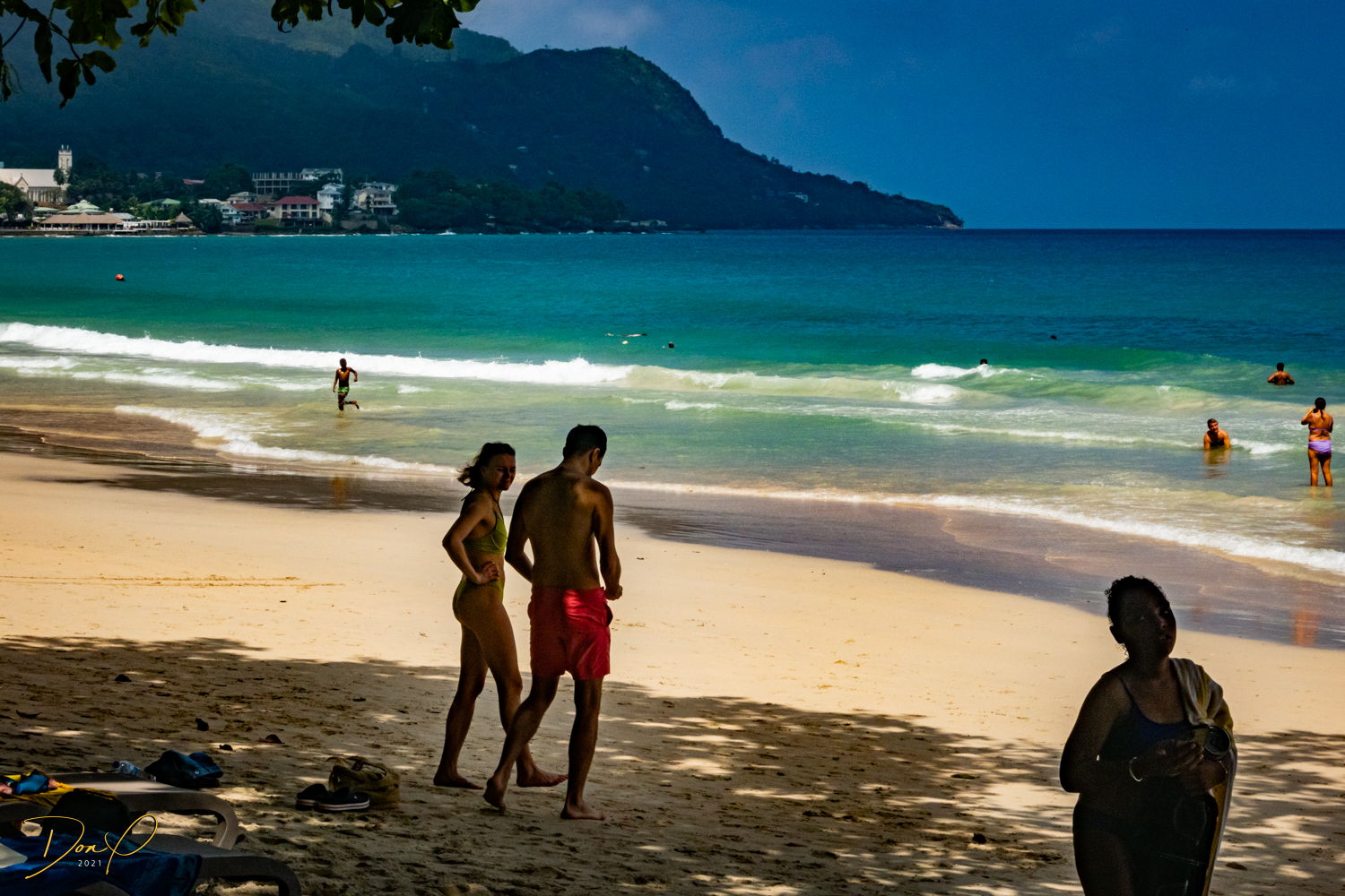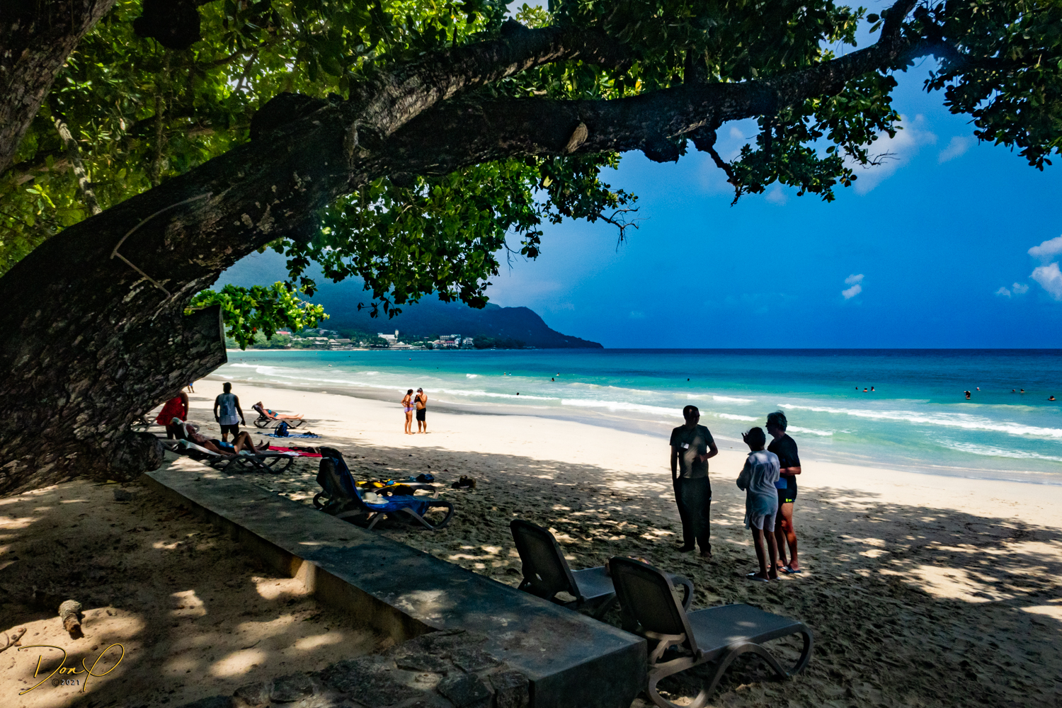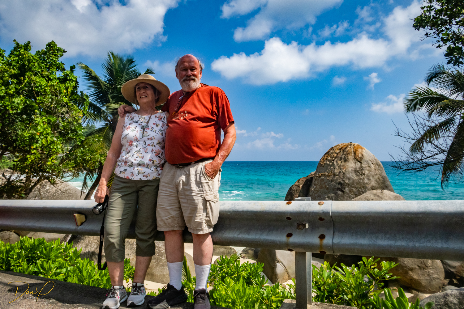 So we agree to tour the island with the above provisions. Oh, and it must include a lunch stop and we have to be back on the ship by 3PM. We head out. I take the front seat with my camera. Everybody is happy. We head out and the tour starts. We drive along the shore heading north. This island is called “Mahe”. There are 115 islands in the Seychelles. This one is tropical and fun to see. “Nelson”, our driver, stops several times for photos and knows all the ‘Kodak’ spots! Our cameras are all in their happy place as we go along. We stop at this one spectacular beach (maybe the most beautiful beach I have ever seen!). There is one house right there overlooking the beach and I ask Nelson what that house would cost. Nelson thinks about it and says, “Approximately 2.5 million Seychelle Rupees!” I do the math and that translates it to about $200,000 dollars! Wow! I look at Elee and say, “Want to move to the Seychelles?” LOL