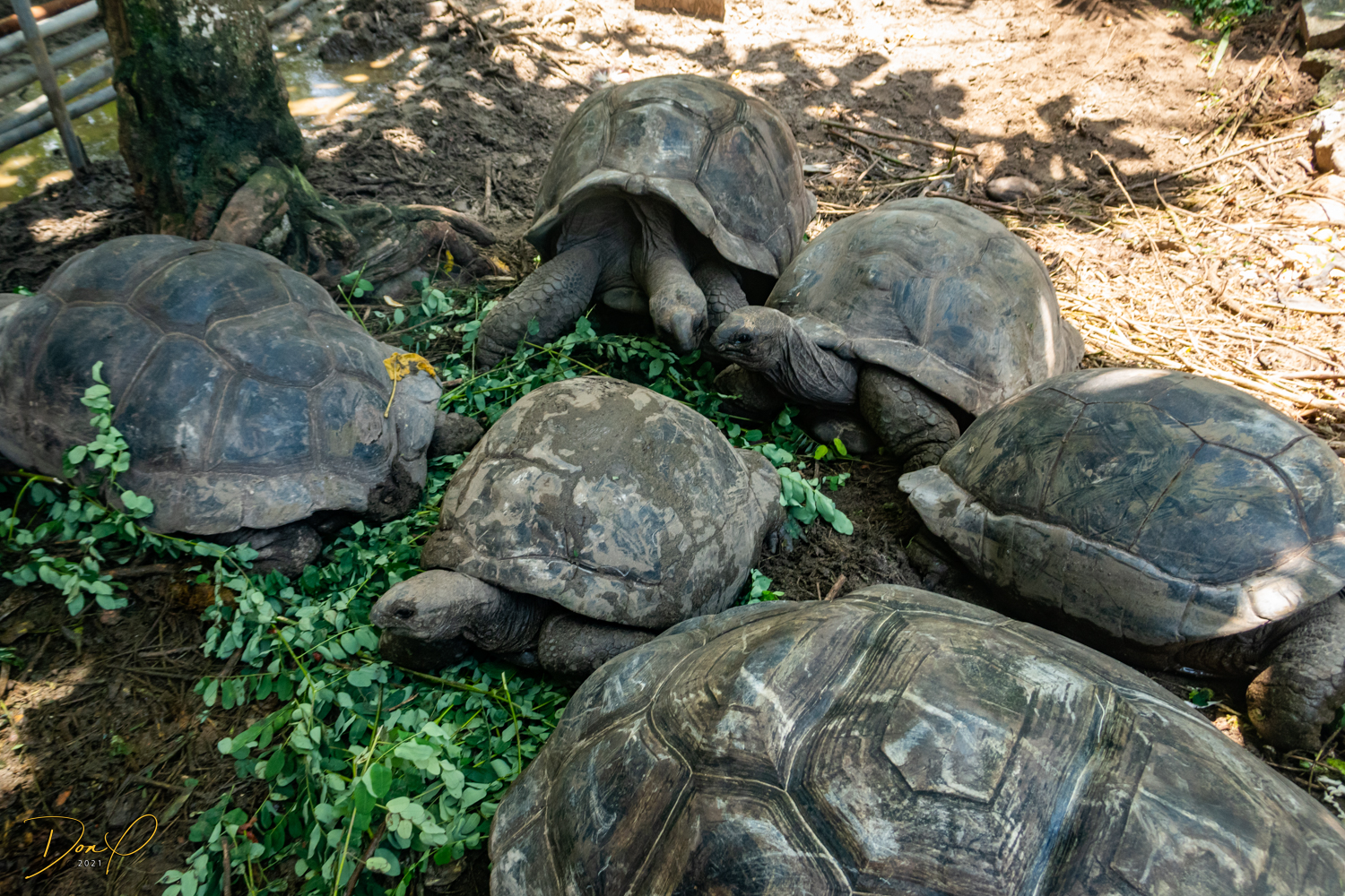 Today we meet friends in the Purple Turtle (haven’t you been paying attention?) at 9AM. There are 5 of us, a perfect amount to hire a van. We first ask about going to the Botanical Garden and are told it is a 5 minute walk. Next we ask for a tour of the island that MUST include seeing Land Tortoises and Beaches.