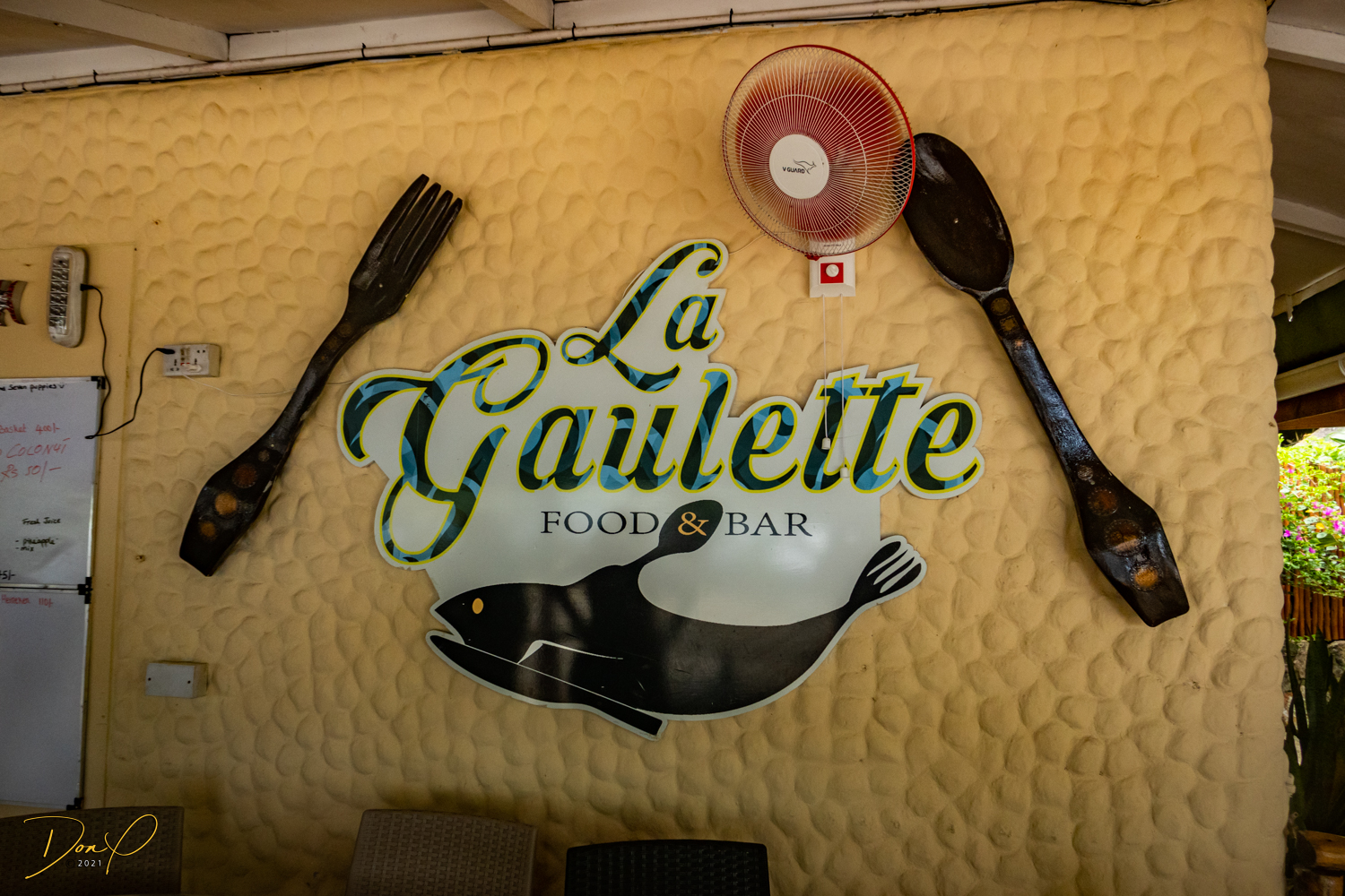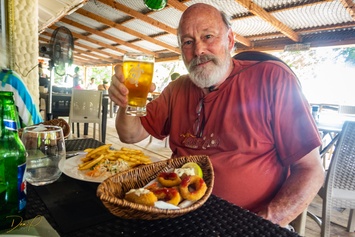 More gorgeous beaches and then it is off to lunch at “La Gaulette” where the food was good but a bit pricey ($40 per person for a meal and a drink). One person with us lucked out and got a fabulous seafood meal. I ordered their ‘Special’ which turned out to be a run of the mill fried prawns and fish basket with chips (fries, for you Americans). Not bad, but there would be a learning curve to order food here, for sure!