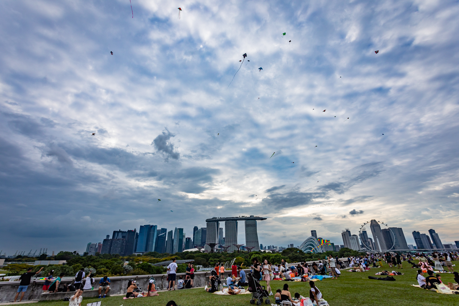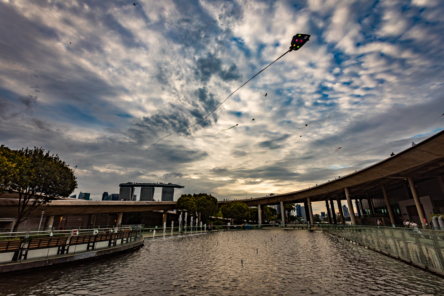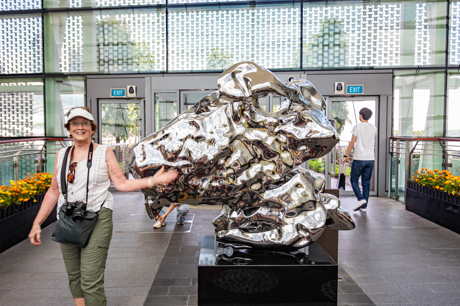 Our tour guide, Edna, is very excited to show us the sights and she is worthy of her job title! She takes us to the “Barrage”, a location where you can see some of the artistic “Trees” and views of the Marina Bay Hotel. On weekends (this is Saturday!), hundreds of locals and tourists bring their families and children for picnics and to fly kites! We watch literally hundreds of colorful kites as they fly in the skies as we photograph the sites! An absolutely magical sight!