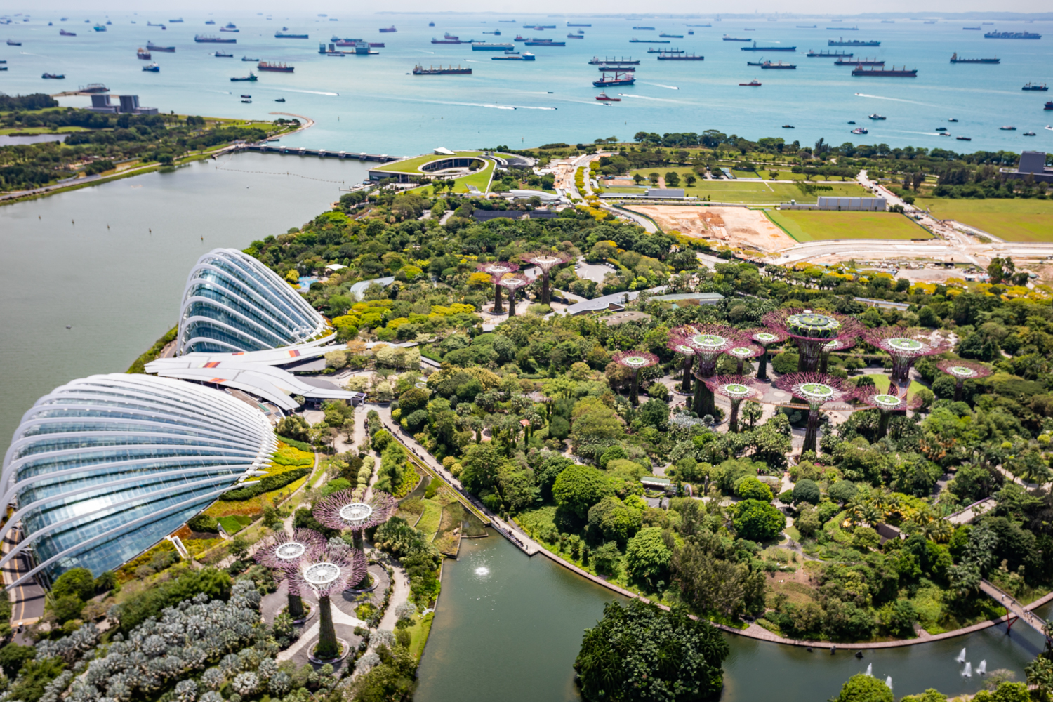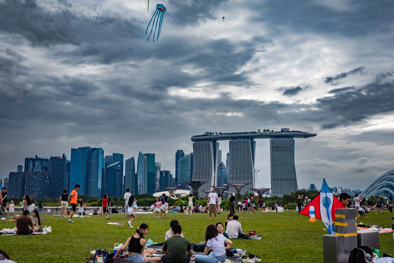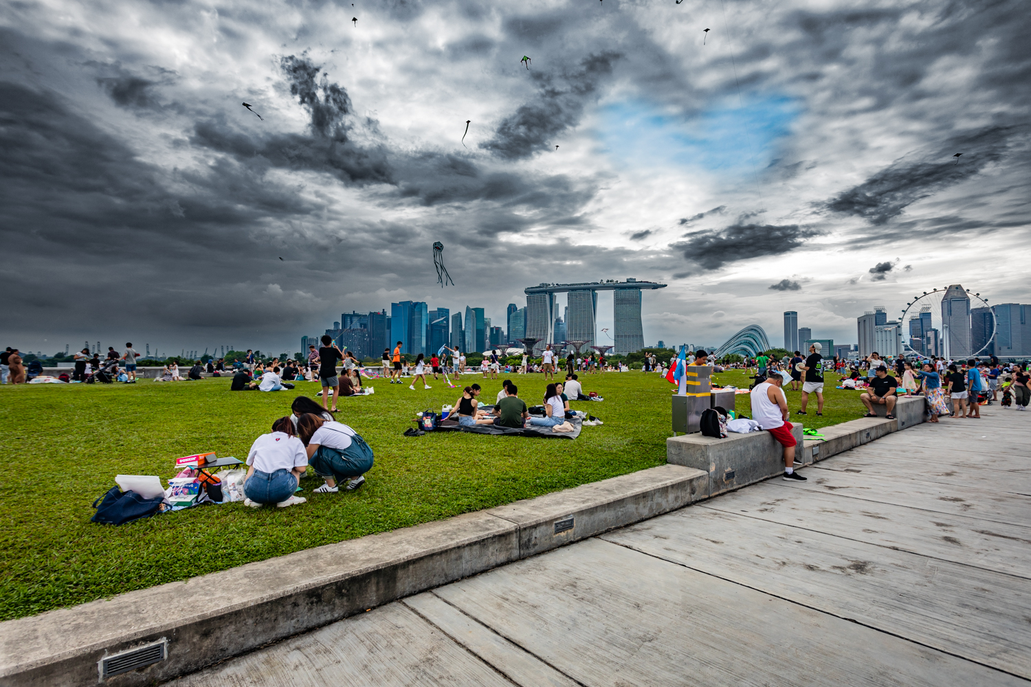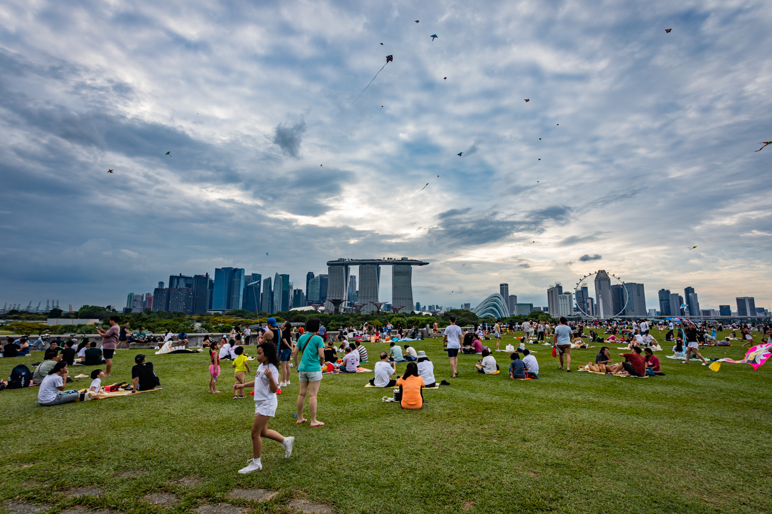 Our tour guide, Edna, is very excited to show us the sights and she is worthy of her job title! She takes us to the “Barrage”, a location where you can see some of the artistic “Trees” and views of the Marina Bay Hotel. On weekends (this is Saturday!), hundreds of locals and tourists bring their families and children for picnics and to fly kites! We watch literally hundreds of colorful kites as they fly in the skies as we photograph the sites! An absolutely magical sight!