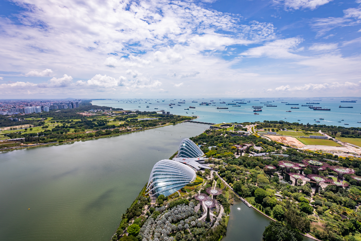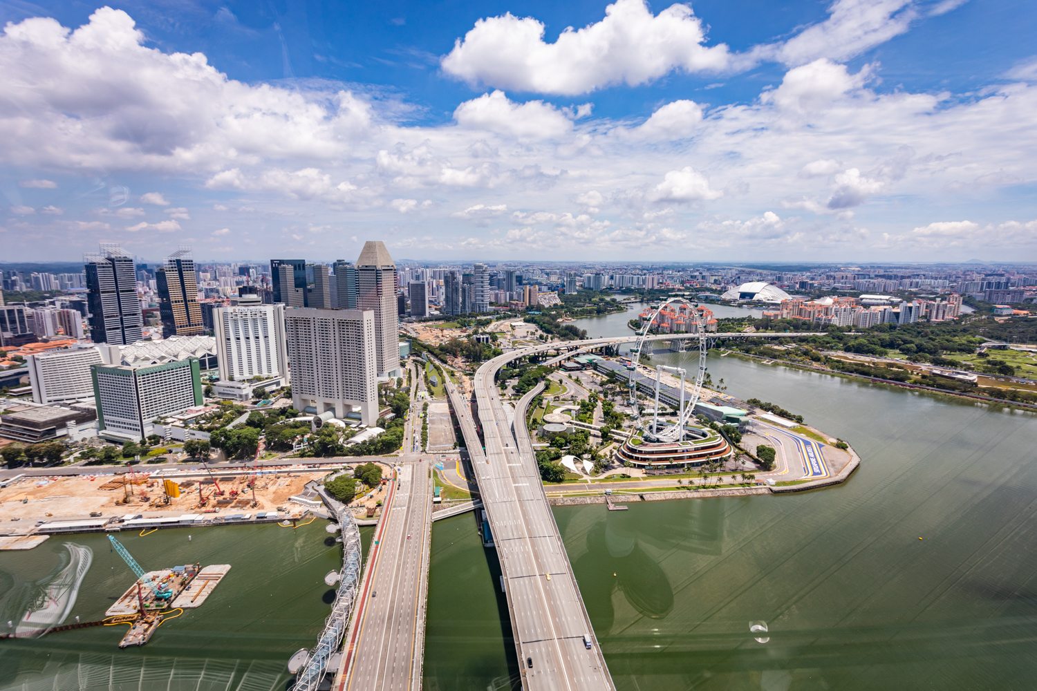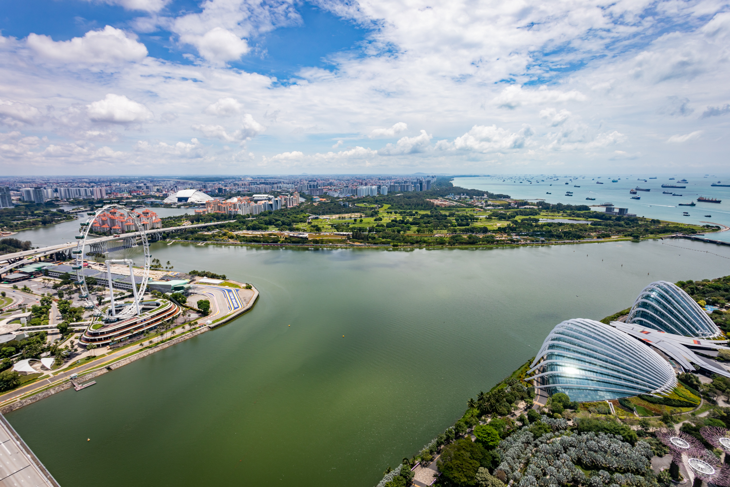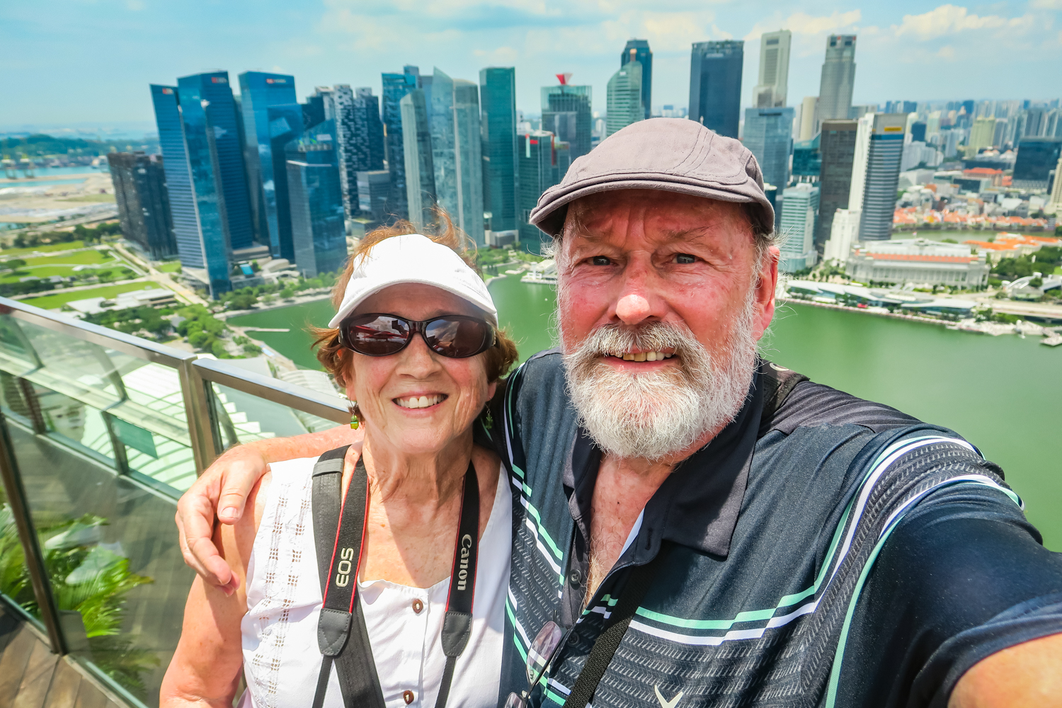 There is a bar and lounge at the top but it is cordoned off from our area. We inquire what it would take to sit there for a while and enjoy the view and it turns out all we had to do at the bottom was to ask to ride to the top for a drink! Sheesh, such typical tourists we are! We paid $32 Singapore dollars each for this view ($24 American dollars each) and could have sat there under shade and enjoyed the same view for free! I’m surprised that we didn’t find this out in advance, being the frugal travelers that we are!