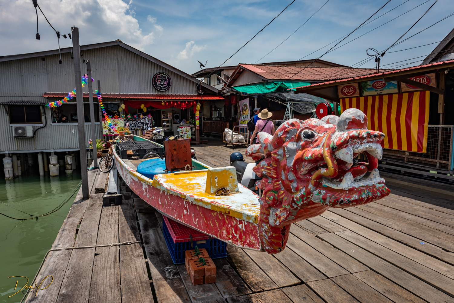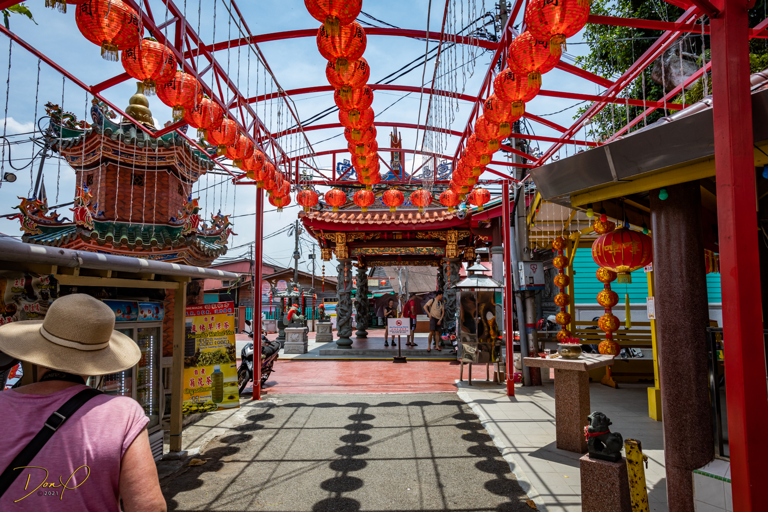 We also travel to a set of shops built on a jetty out on the water, “Chew Jetty”. We even spy a stand with the fruit, ‘Durian’, which hotels fine you for bringing in! Alas, they want $10 for a taste! Maybe another time! Also a Temple built on the jetty. Interesting way of life. We are tired and it is time to go back to our ship. We spend the rest of the afternoon on board, cruising the different parts of the ship and meeting new friends.