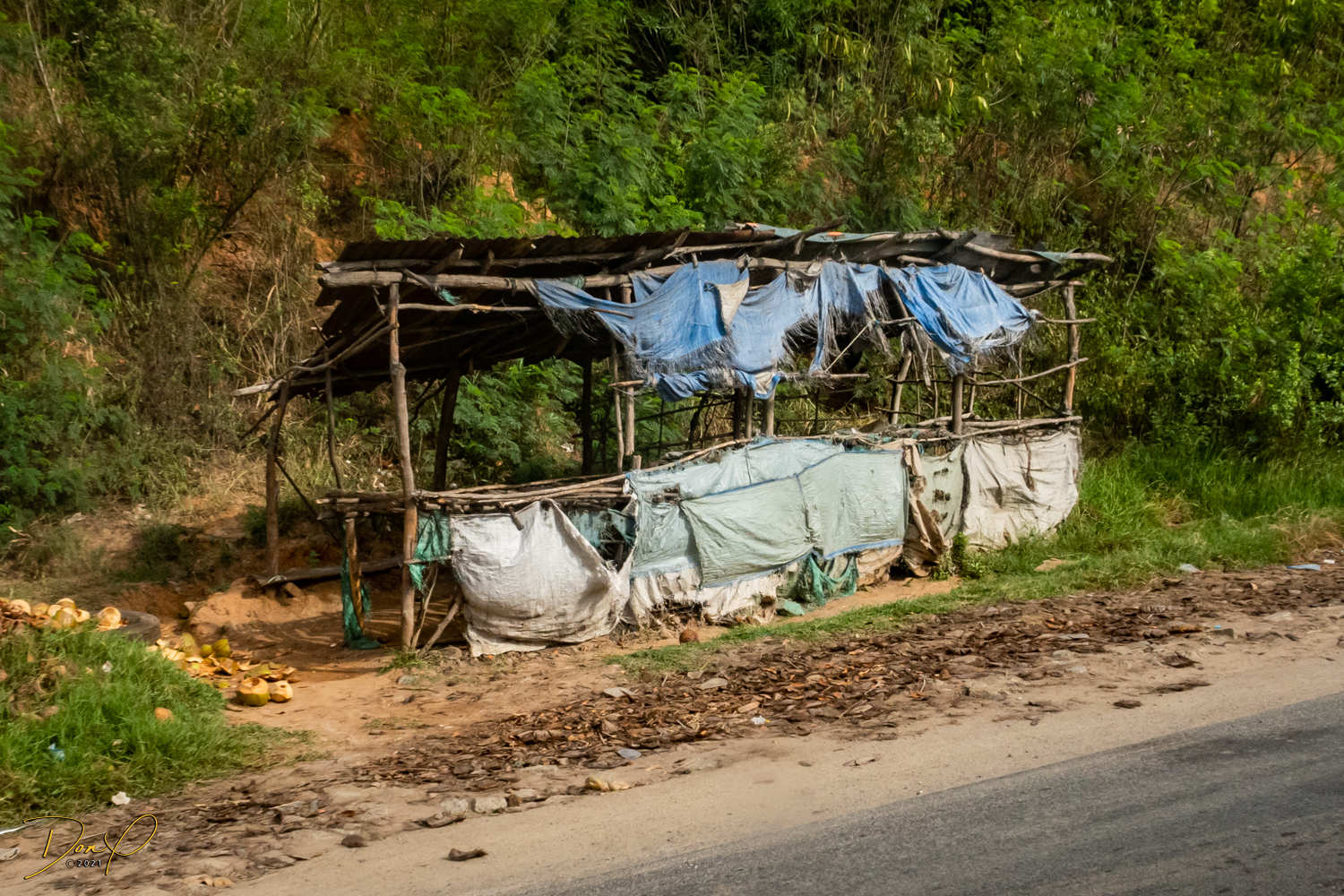 We get in our van and there is one seat empty. The van doesn’t leave and we are told there is one person left to join us. It is before 8AM and the temp is already over 30 degrees Celsius (86 F). We wait and wait in the hot van and finally, almost an hour later, a lady shows up saying she couldn’t find us. Well, we had a wee bit of trouble finding the vans also, so we are just relieved to be able to get going. Our cameras start to capture roadside sights in this third world country.