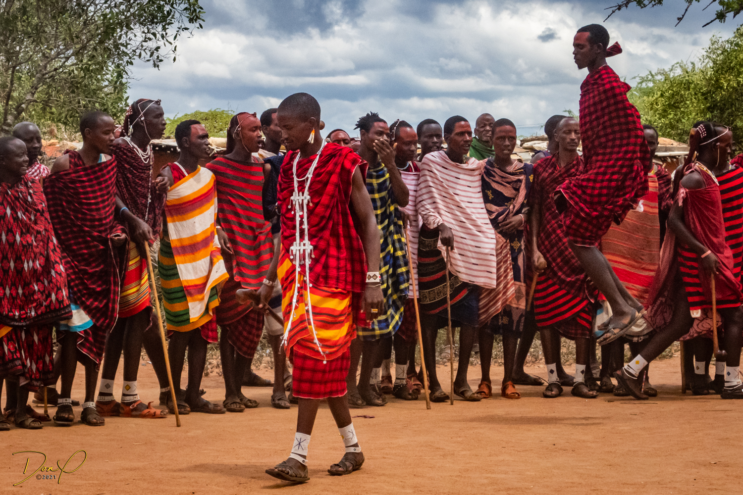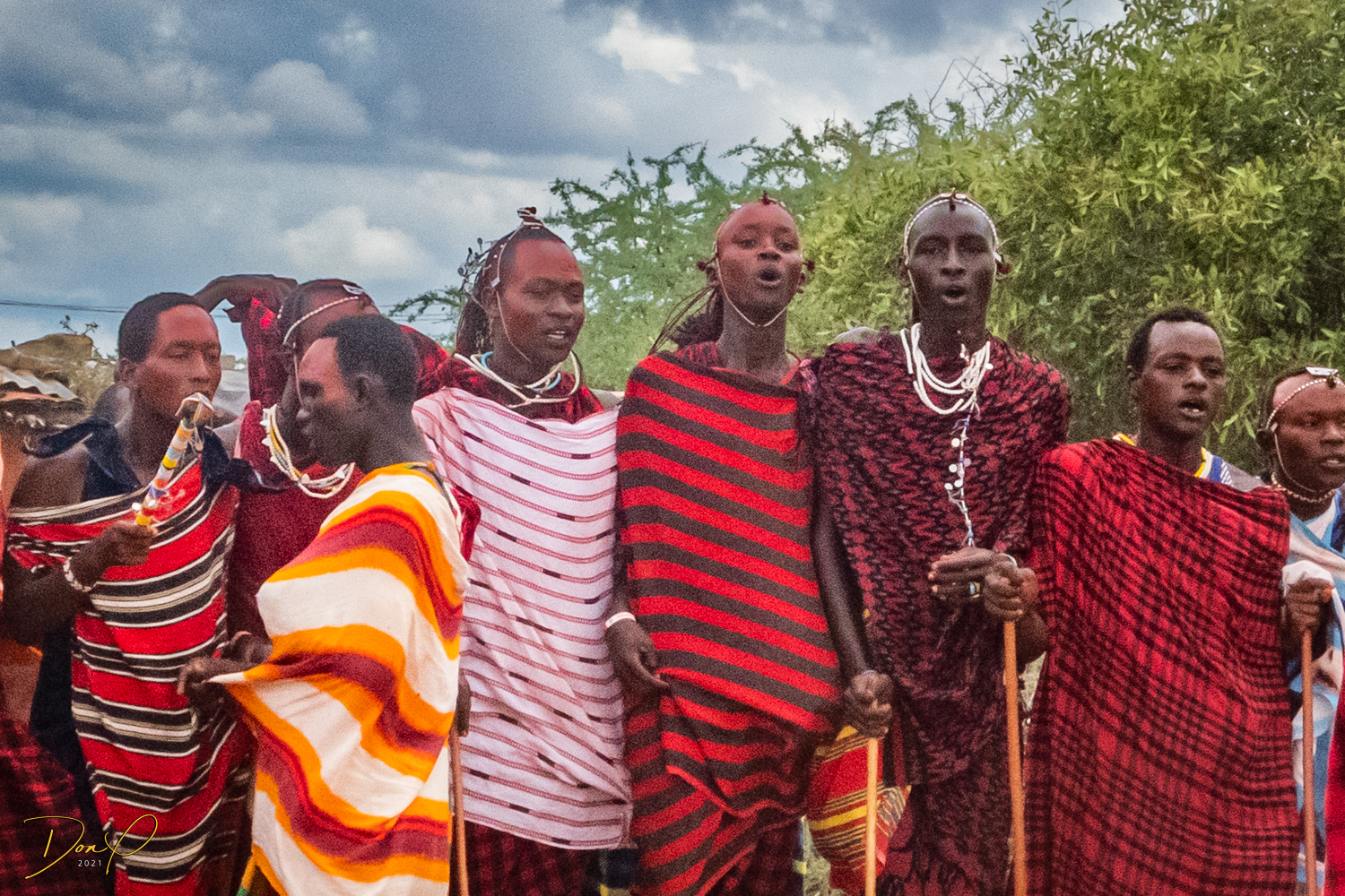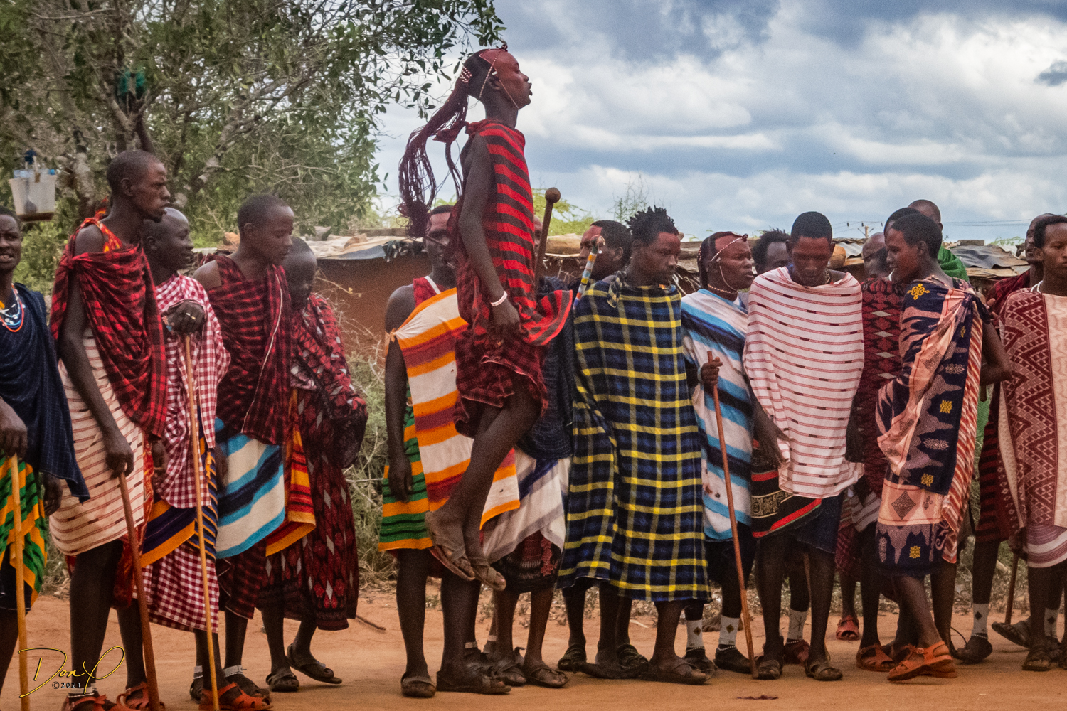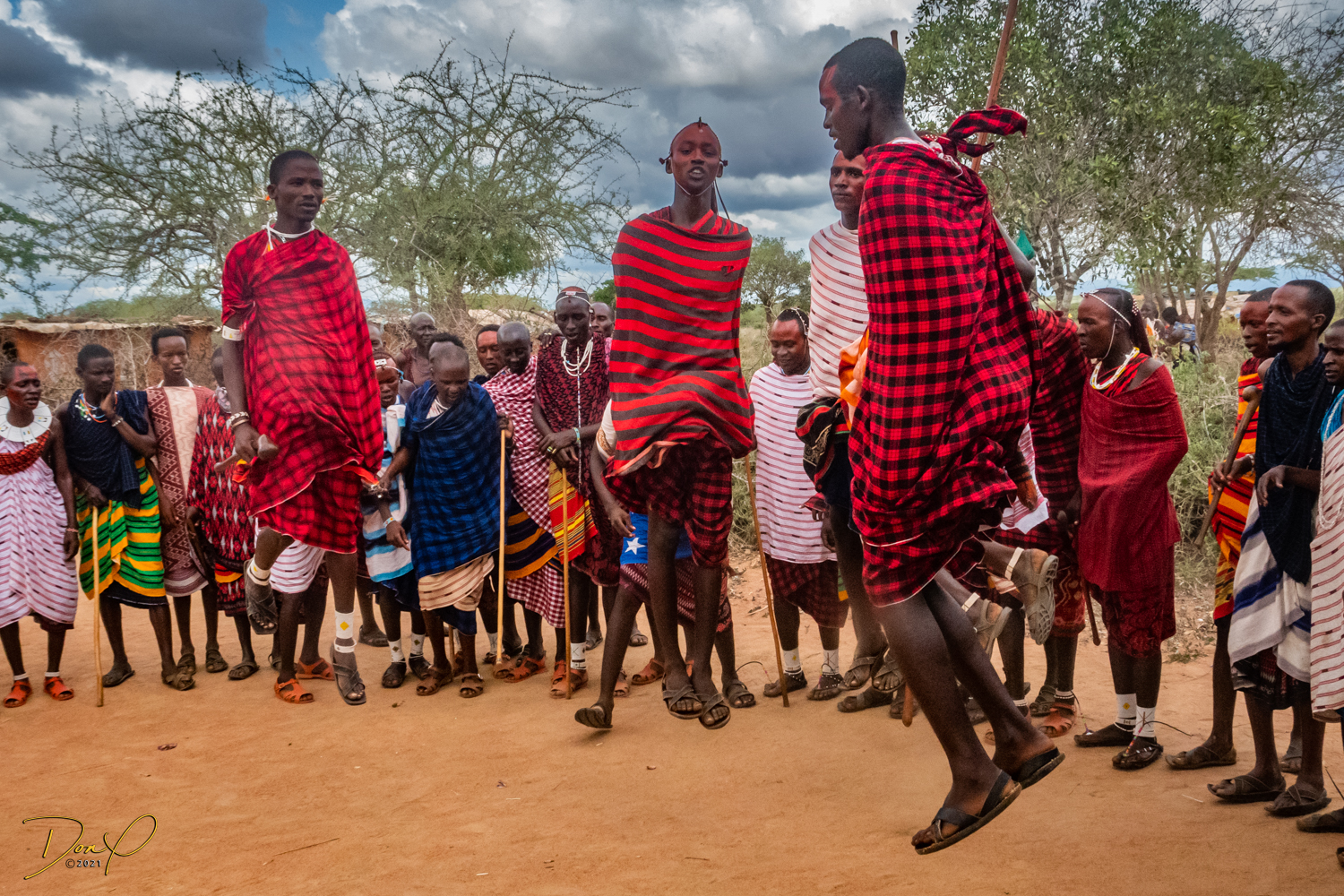We drive on and arrive at a ‘Masai’ village. Who has heard of the ‘Masai’? What a fun treat! They come out and dance for us. Soon they start ‘jumping’! If you’ve never witnessed Masai Warriors jump, you’re missing out! They dance and jump for 30 minutes or more! I’m tired just watching them!