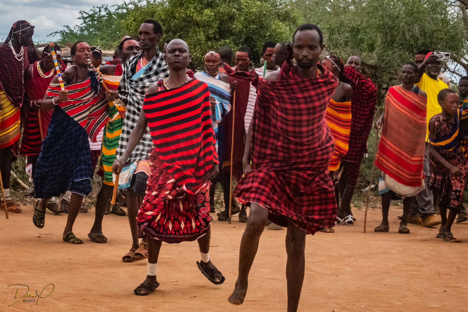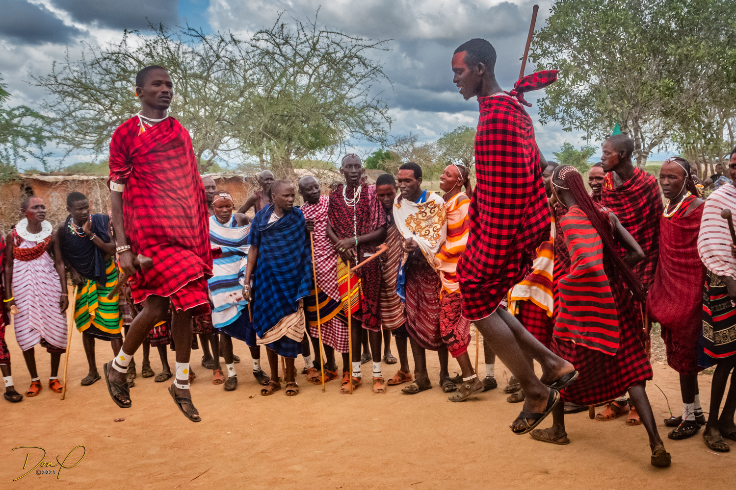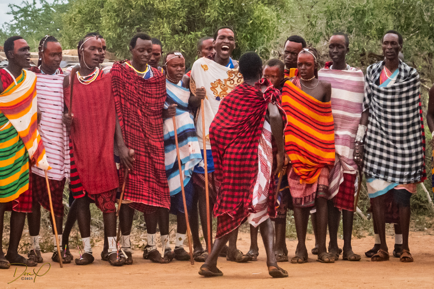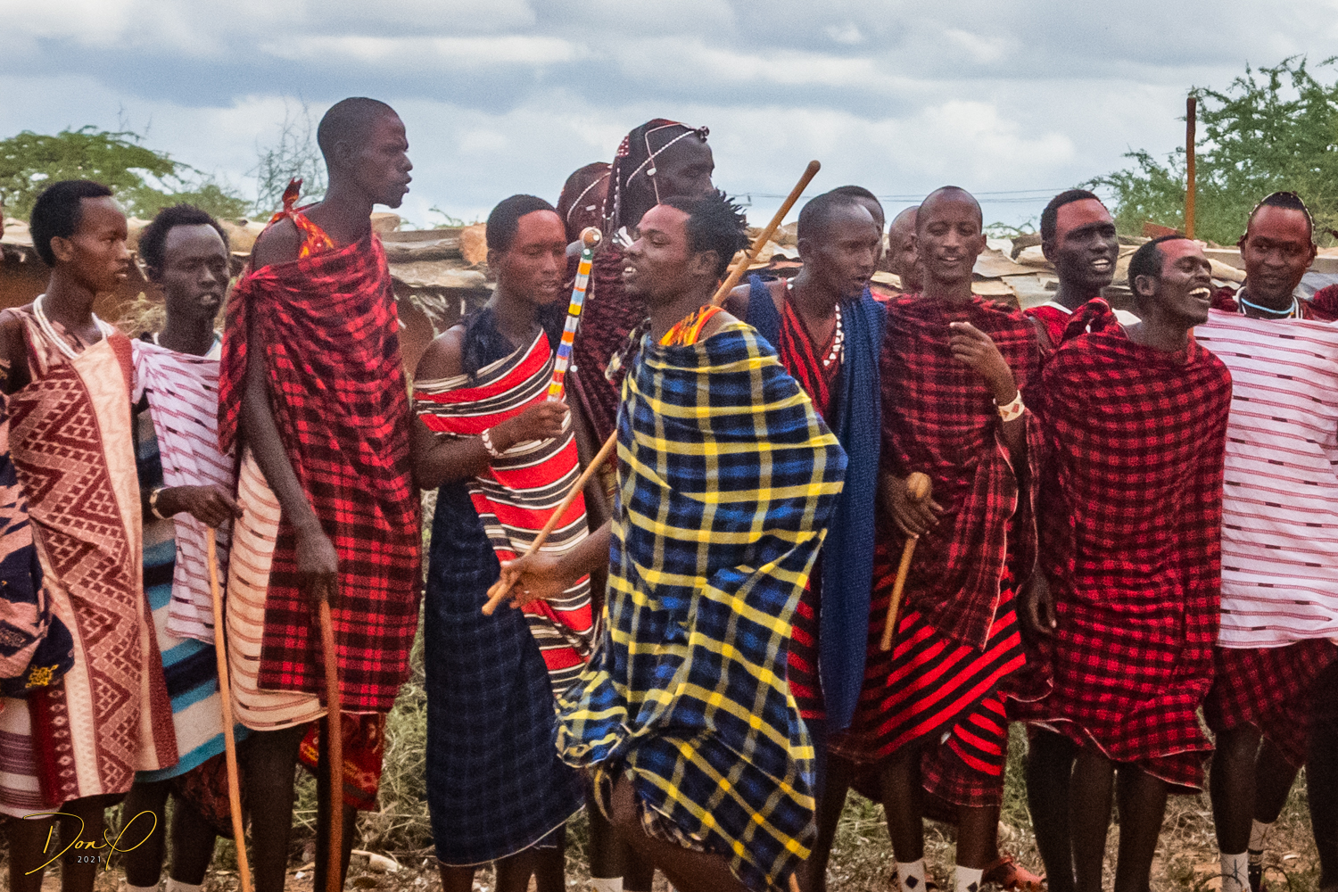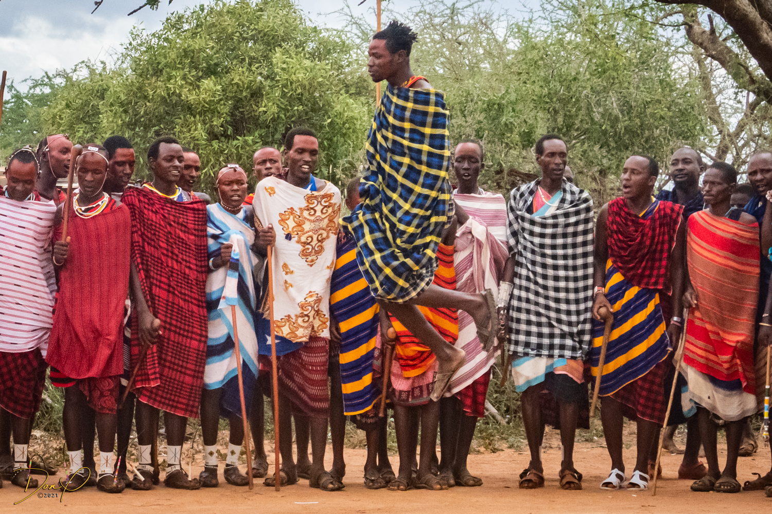 We drive on and arrive at a ‘Masai’ village. Who has heard of the ‘Masai’? What a fun treat! They come out and dance for us. Soon they start ‘jumping’! If you’ve never witnessed Masai Warriors jump, you’re missing out! They dance and jump for 30 minutes or more! I’m tired just watching them!