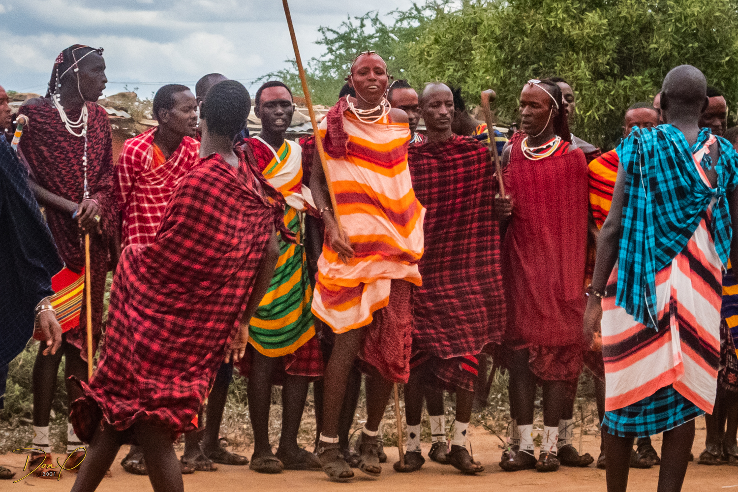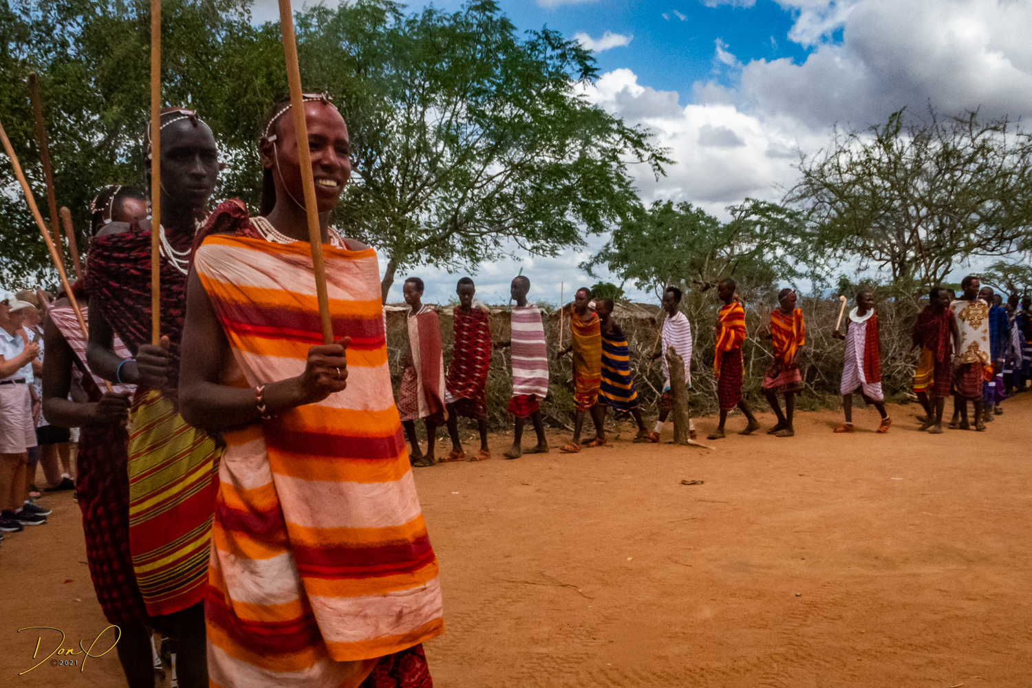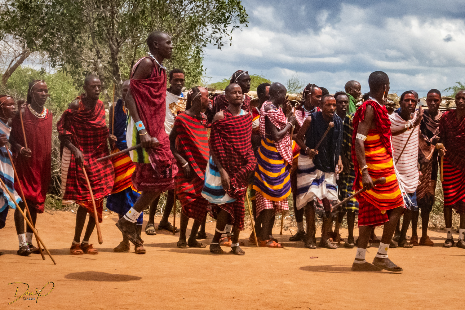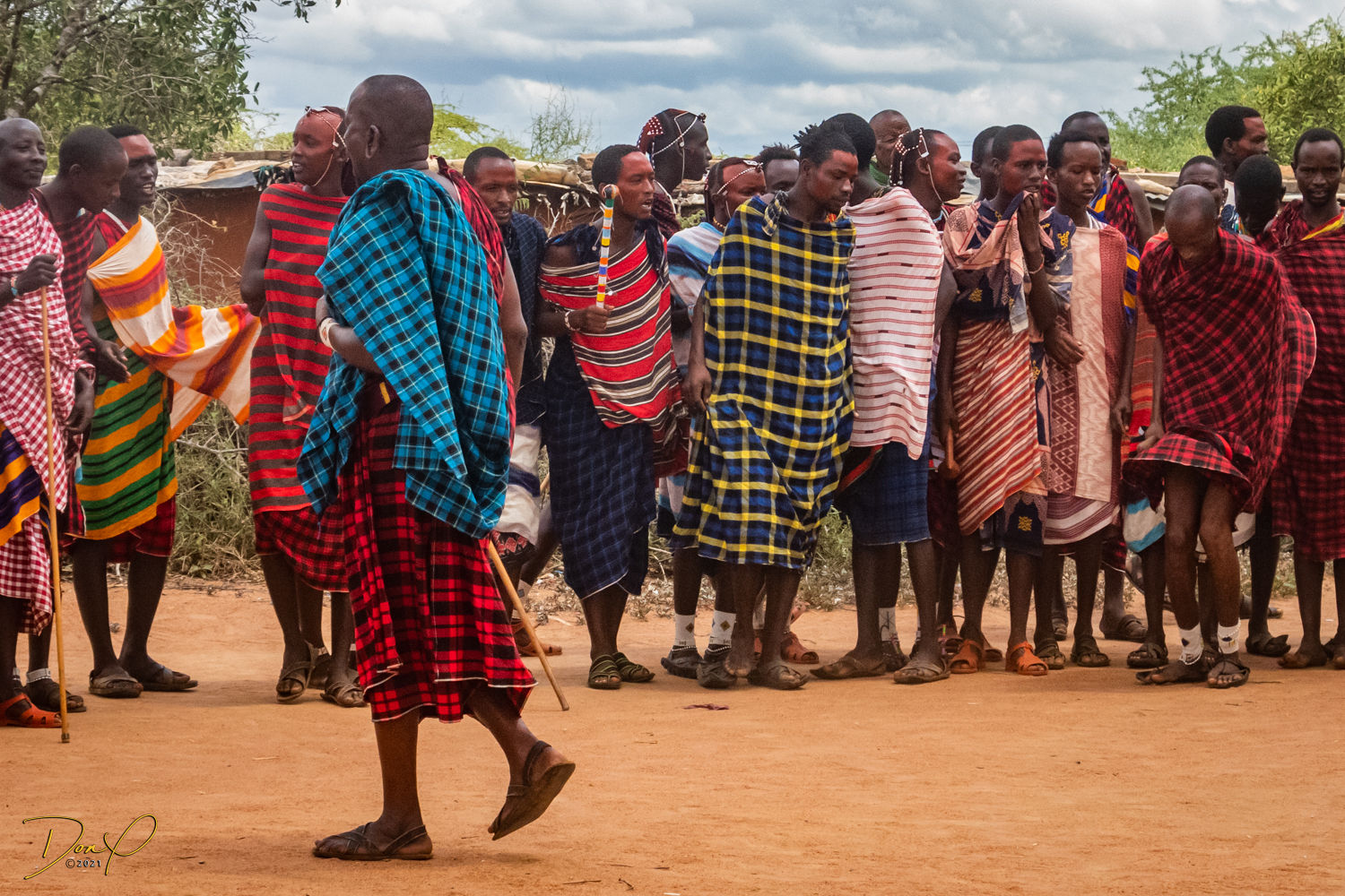 We drive on and arrive at a ‘Masai’ village. Who has heard of the ‘Masai’? What a fun treat! They come out and dance for us. Soon they start ‘jumping’! If you’ve never witnessed Masai Warriors jump, you’re missing out! They dance and jump for 30 minutes or more! I’m tired just watching them!
