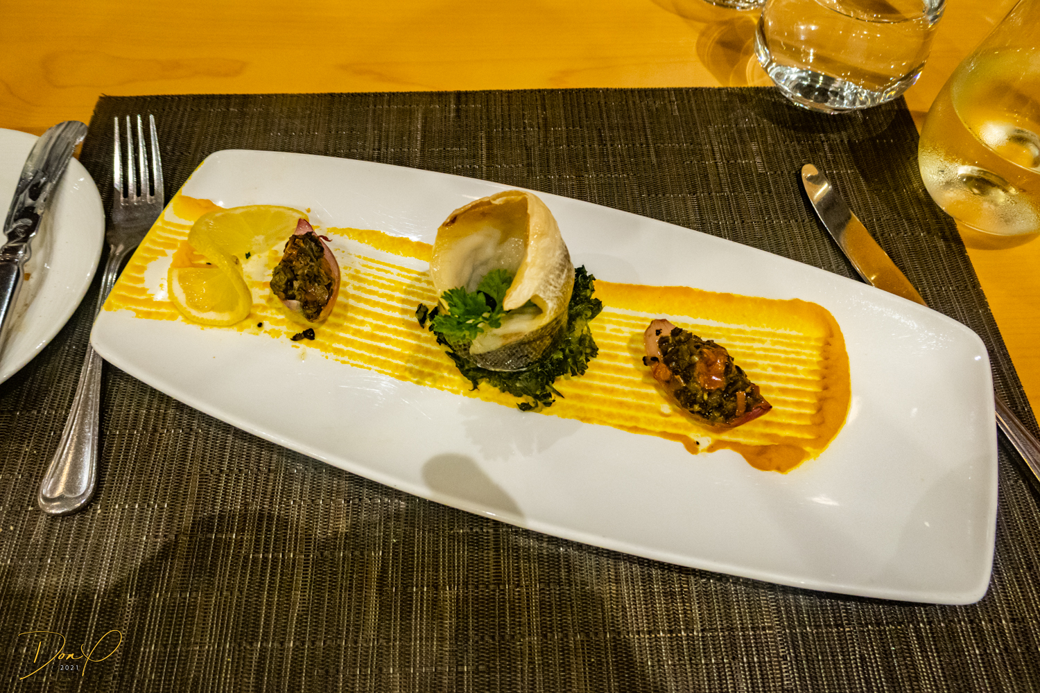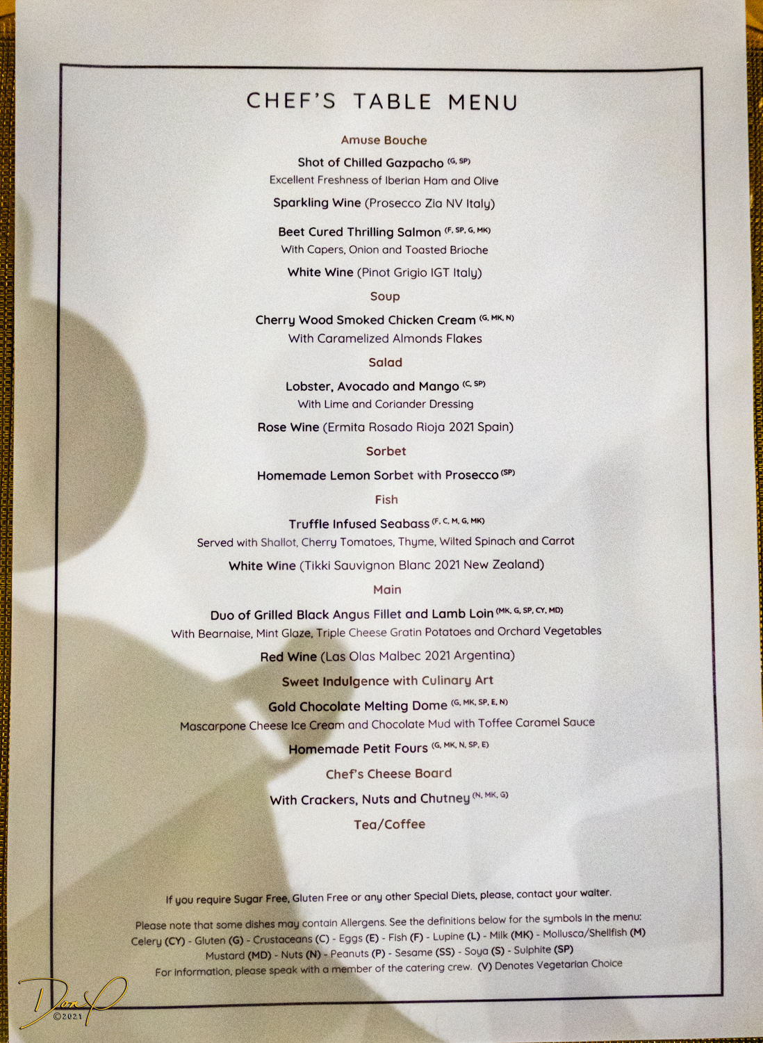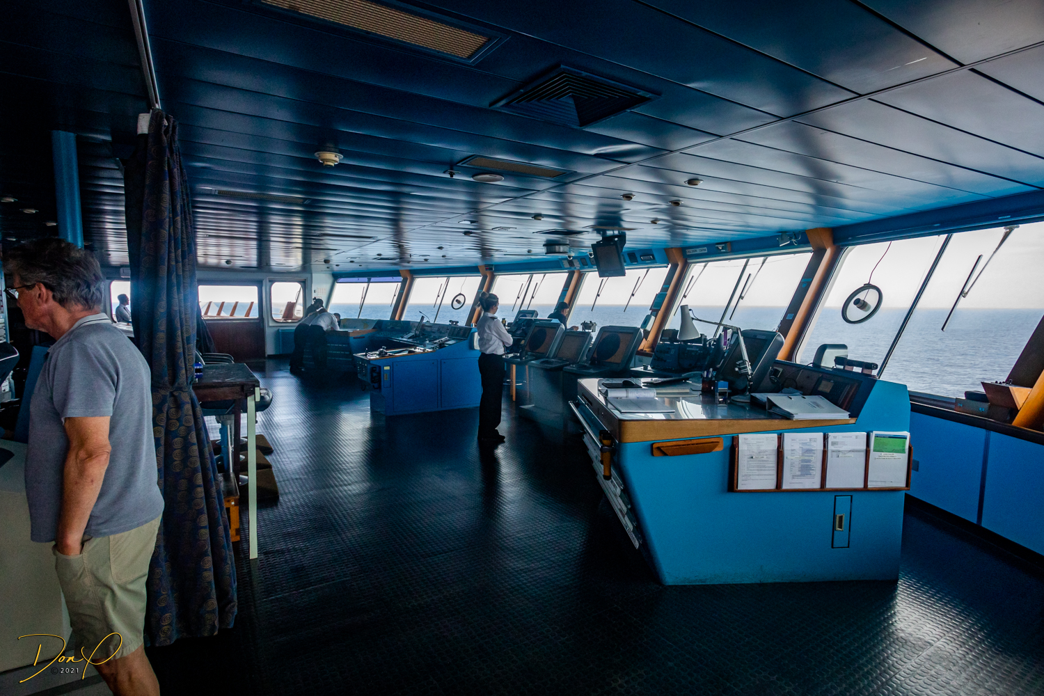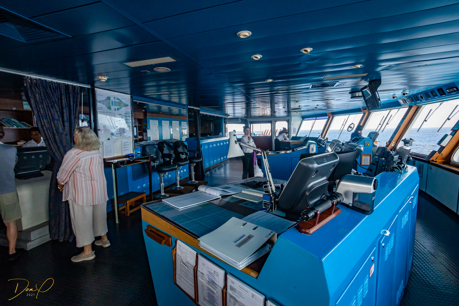 With the Chef’s Table, you automatically get a tour of the galley where the food is prepared. We have toured ship’s galleys in the past and for the most part, we are uninterested. Instead, we request to tour the Bridge and are granted it! So, we are invited to a “Bridge Tour” on Monday! A fabulous tour of the Ship Bridge which is a spectacle in itself!