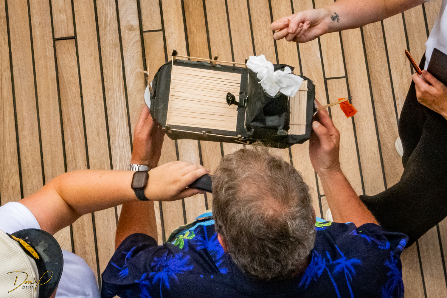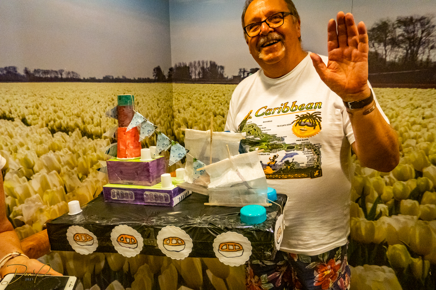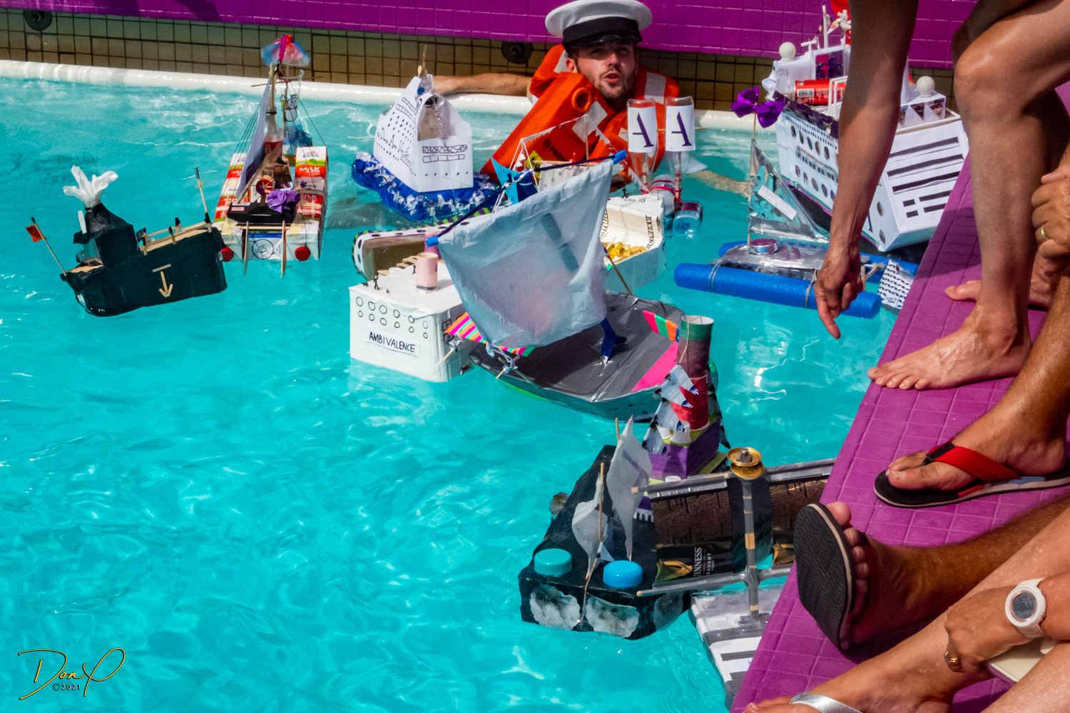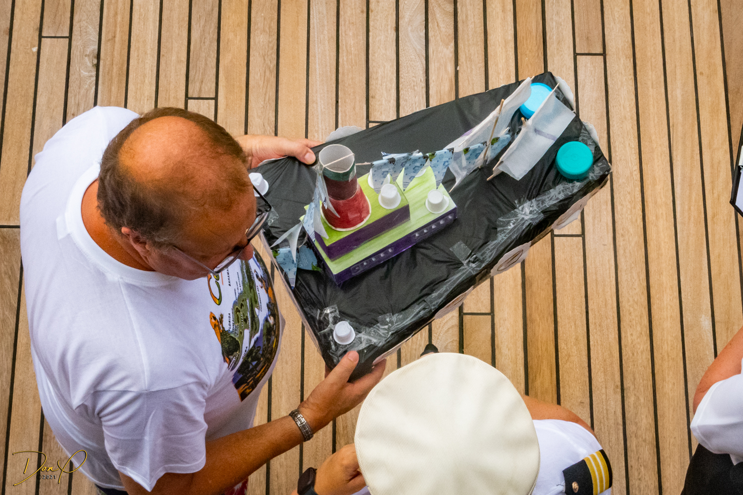 At two o’clock on Friday afternoon, the entertainment crew hosts the “World Cruise Boat Regatta”, a silly entertainment where passengers that wanted to, built some kind of floatable boat out of recycled materials on the ship (so that’s where all the coffee stirrer sticks disappeared to!). Then they were put to the test in the pool where a crew member would put a full bottle of water (the ‘Captain’) somewhere on the boat and if it stood up gor 3 whole seconds, the boat would pass! The final winner was voted by rounds of applause from the spectators. All good fun, lots of laughs and it kept the cocktail waitresses busy!