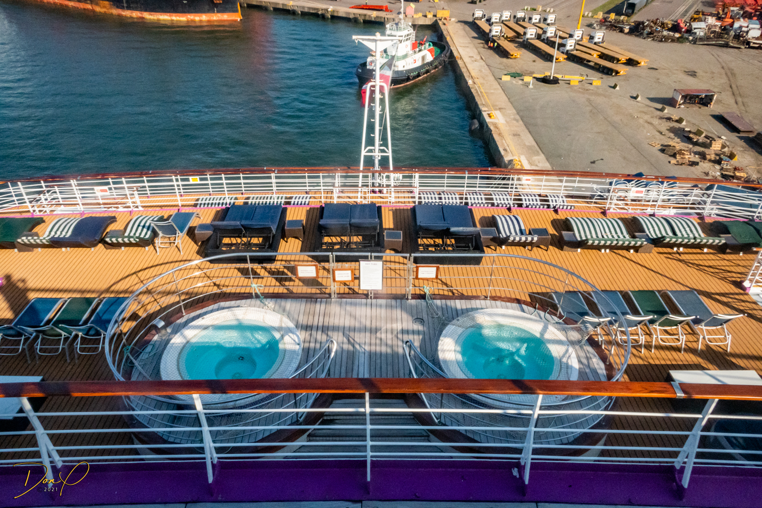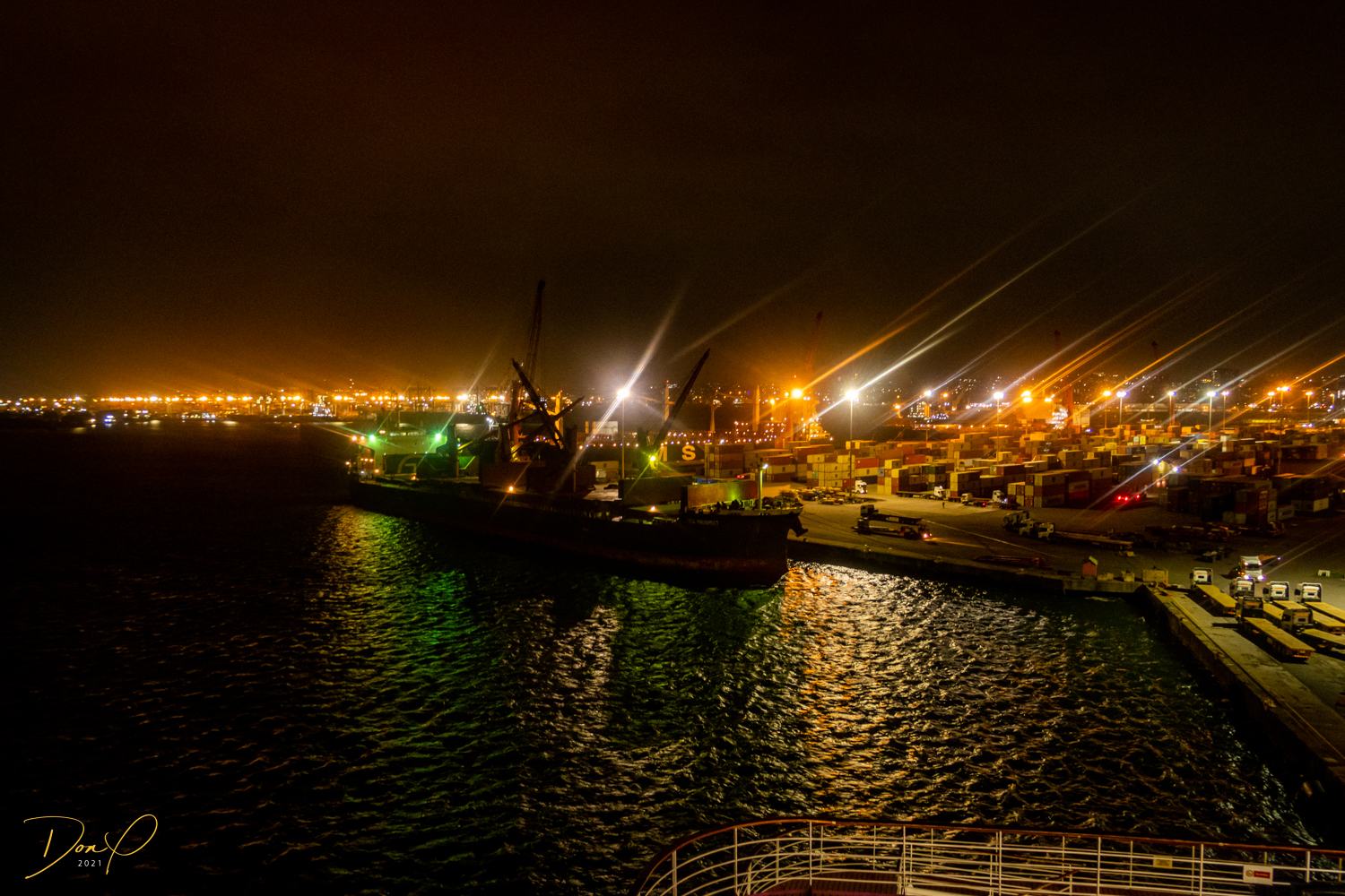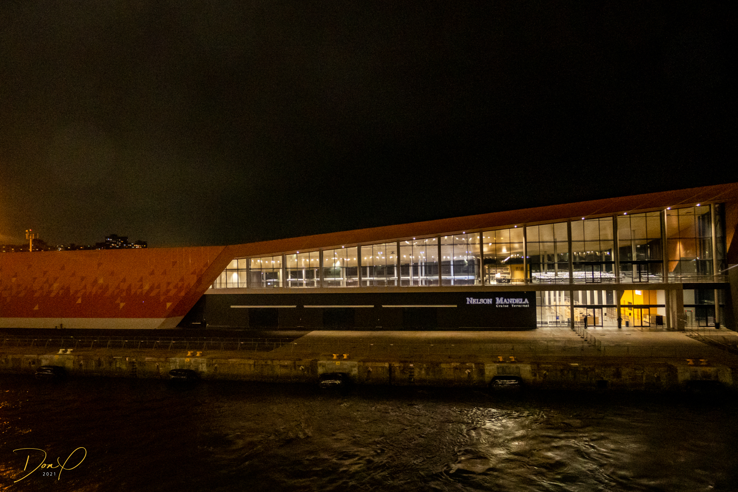 Then I go out on deck and take a few night shots as the ship pushes off the pier and we set sail (so to speak) for Capetown, South Africa. Two Sea Days are ahead of us and we are immediately warned of 5 Meter Seas tonight and a smile forms on my face! I love some motion in the ocean! I will be rocked to sleep tonight and will likely be totally refreshed in the morning! Call me weird!