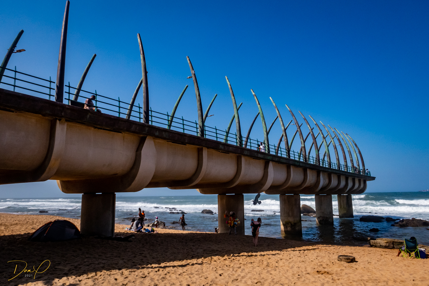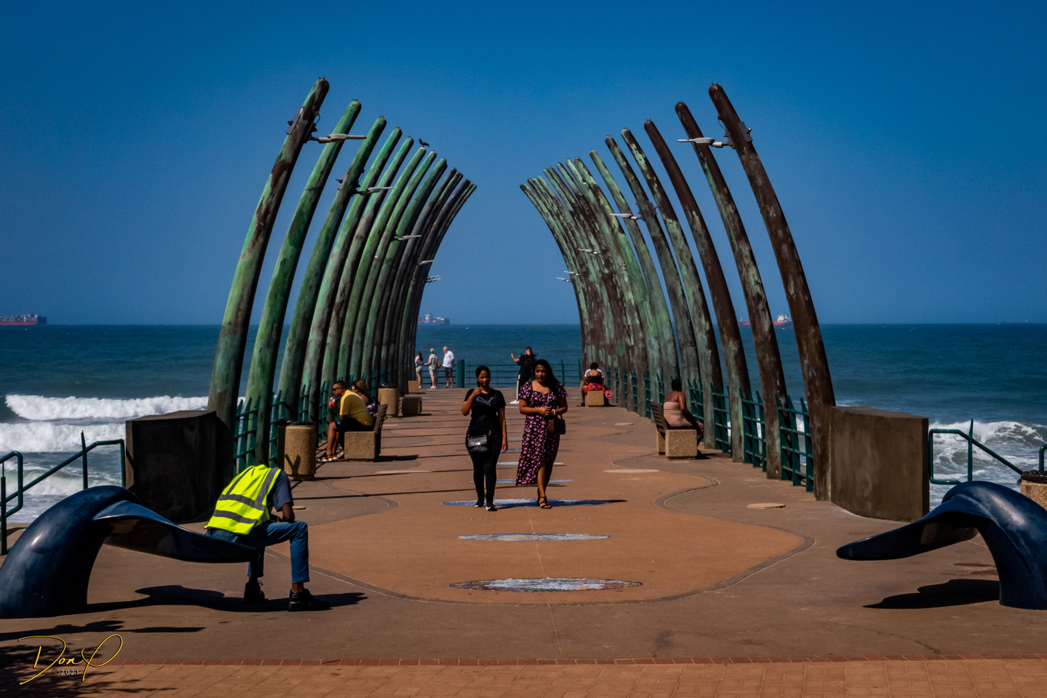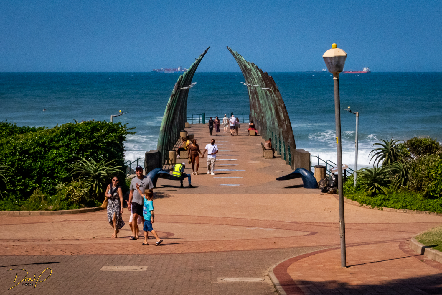 We next drive off for views of the Durban Soccer Stadium, a feat of engineering in itself! More city views and we arrive at Umhlanga Pier, with what appears to be Whalebones built in! A very photogenic pier and our cameras thank us! Even a miscellaneous vendor selling everything from hats and scarves to kites that realistically looks like a large bird!