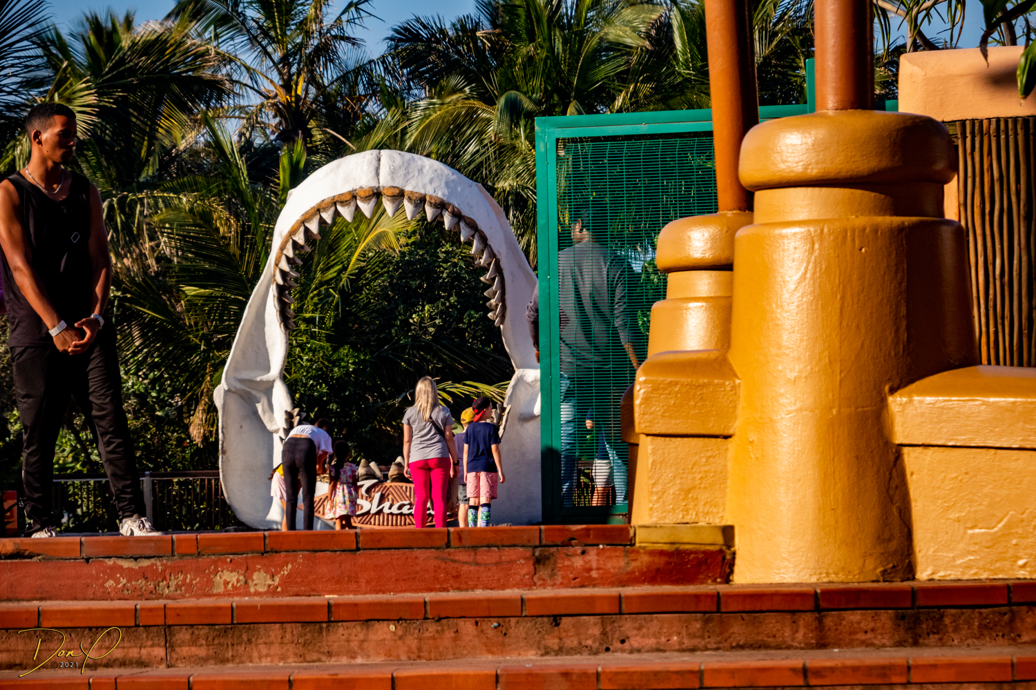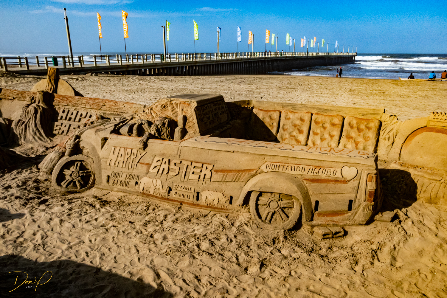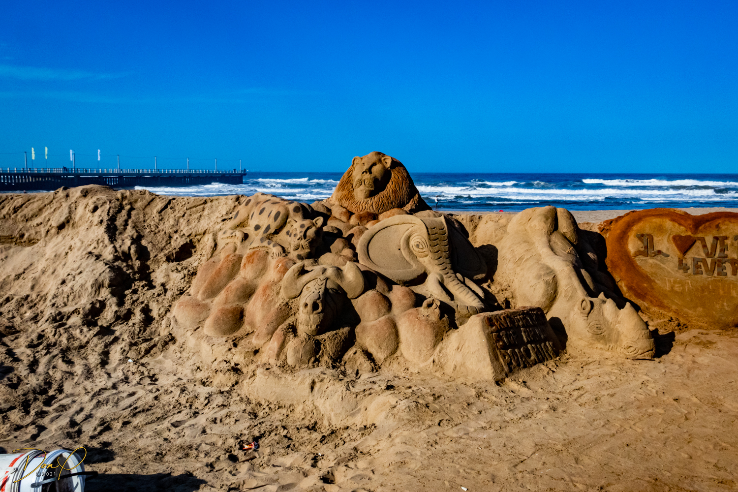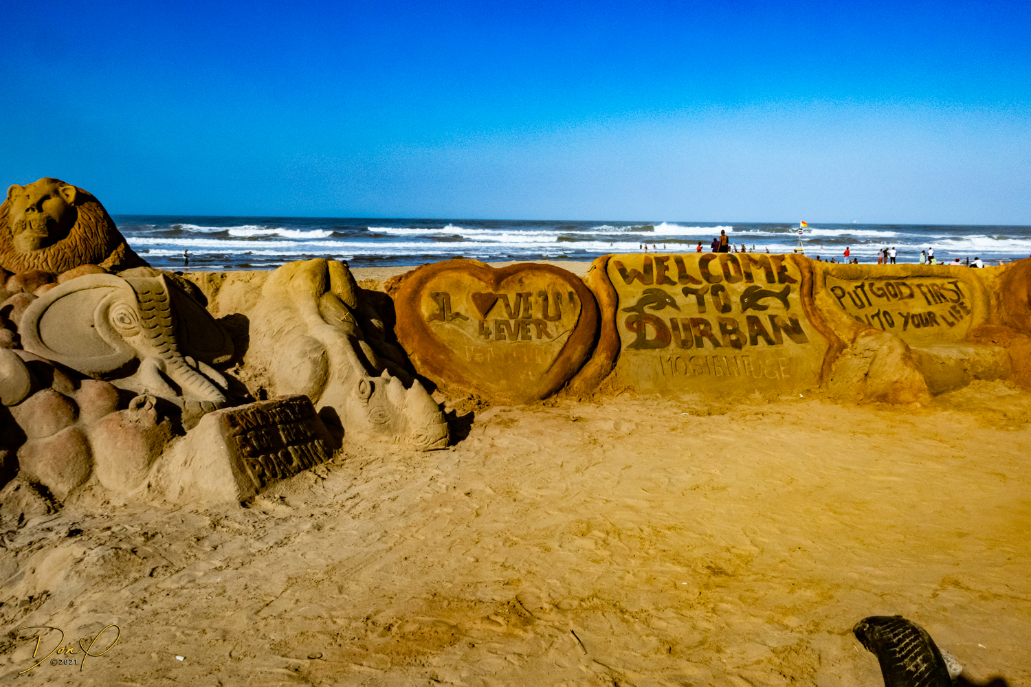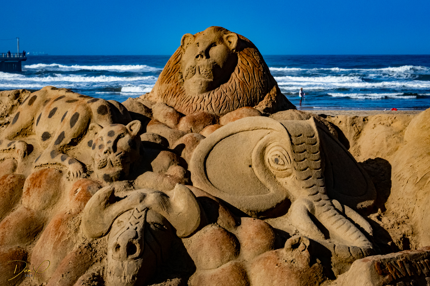 After the birds, we drive along the coast and come across some very well done sand sculptures at the beach! The Zulu Dancers that frequent the location aren’t there on a Tuesday so our tour comes to an end and we head back to the ship. Just before we get there, Thadwyn stops at a Match Factory where a Lion Sculpture in front “Roars” every hour on the hour! Fun!