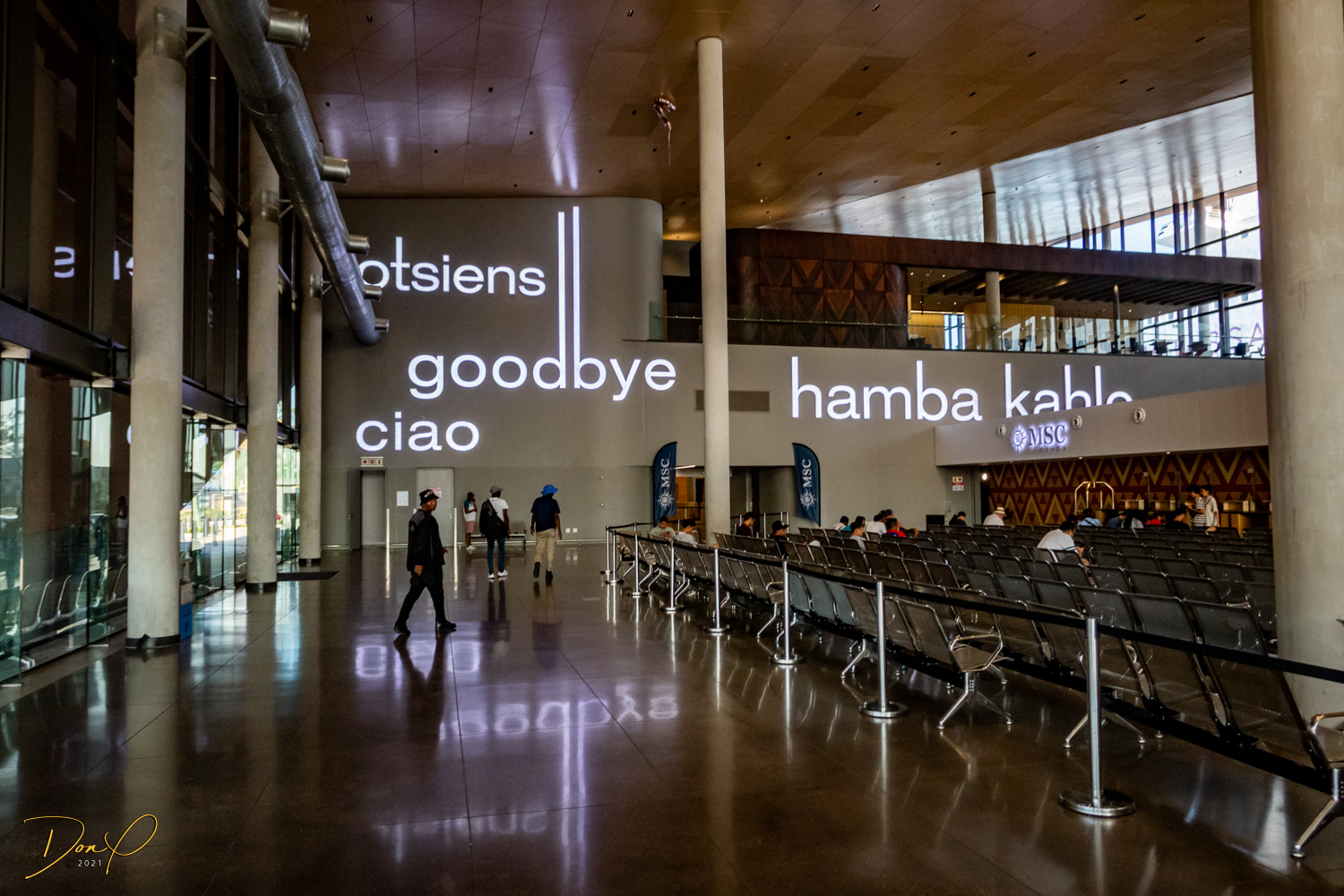 Finally back in port after 4 days at sea. The weather has substantially cooled to 21 C or 72 F. Humidity has also dropped substantially and the weather here is perfect! The ship docks at 8AM at the Nelson Mandela Cruise Terminal. We don’t rush off the ship but let all the planned tours leave first. Around 10AM we get off the ship easily and approach the Immigration booths in the terminal. It takes all of 5 minutes to get through immigration and we walk out to the taxis.