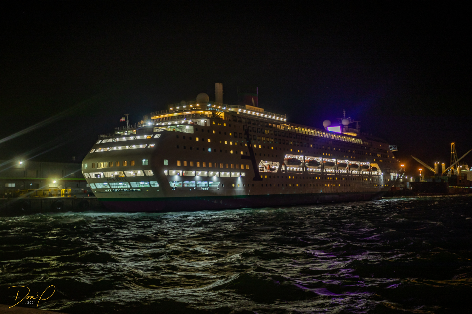 Finally, back in our stateroom, we hear the captain come on the intercom and inform us that the winds are too strong and we can’t leave the pier tonight. We will attempt to leave in the morning!