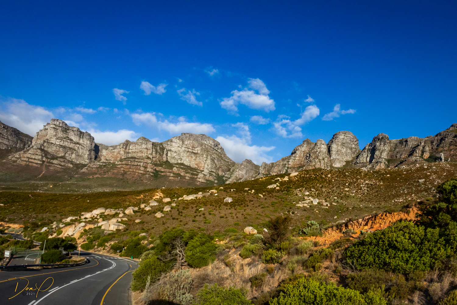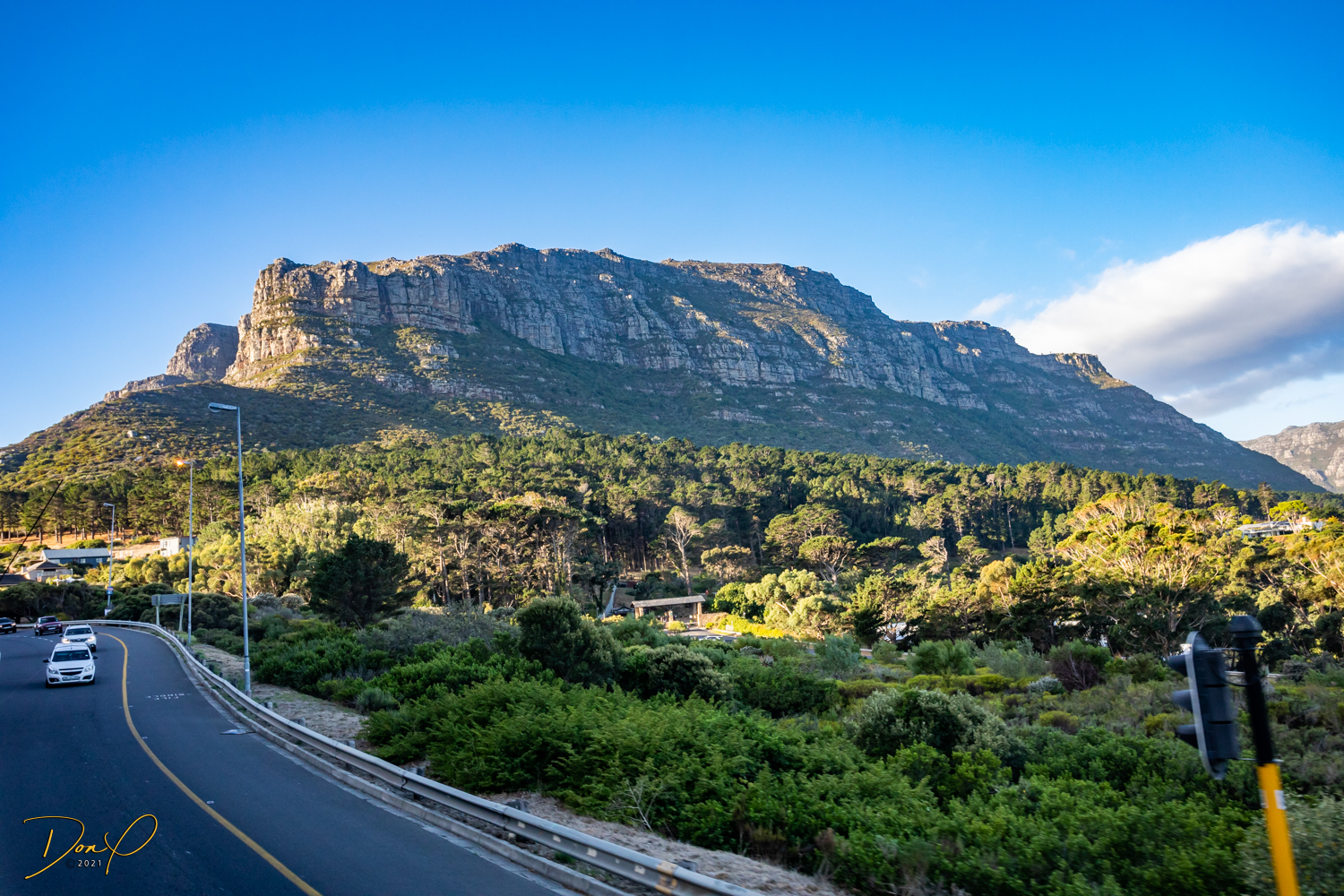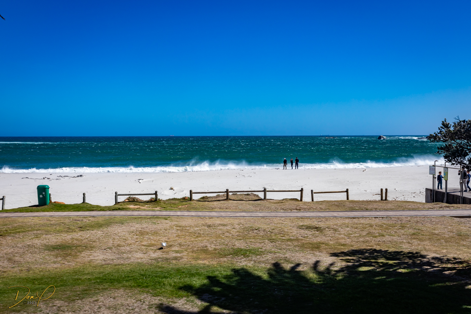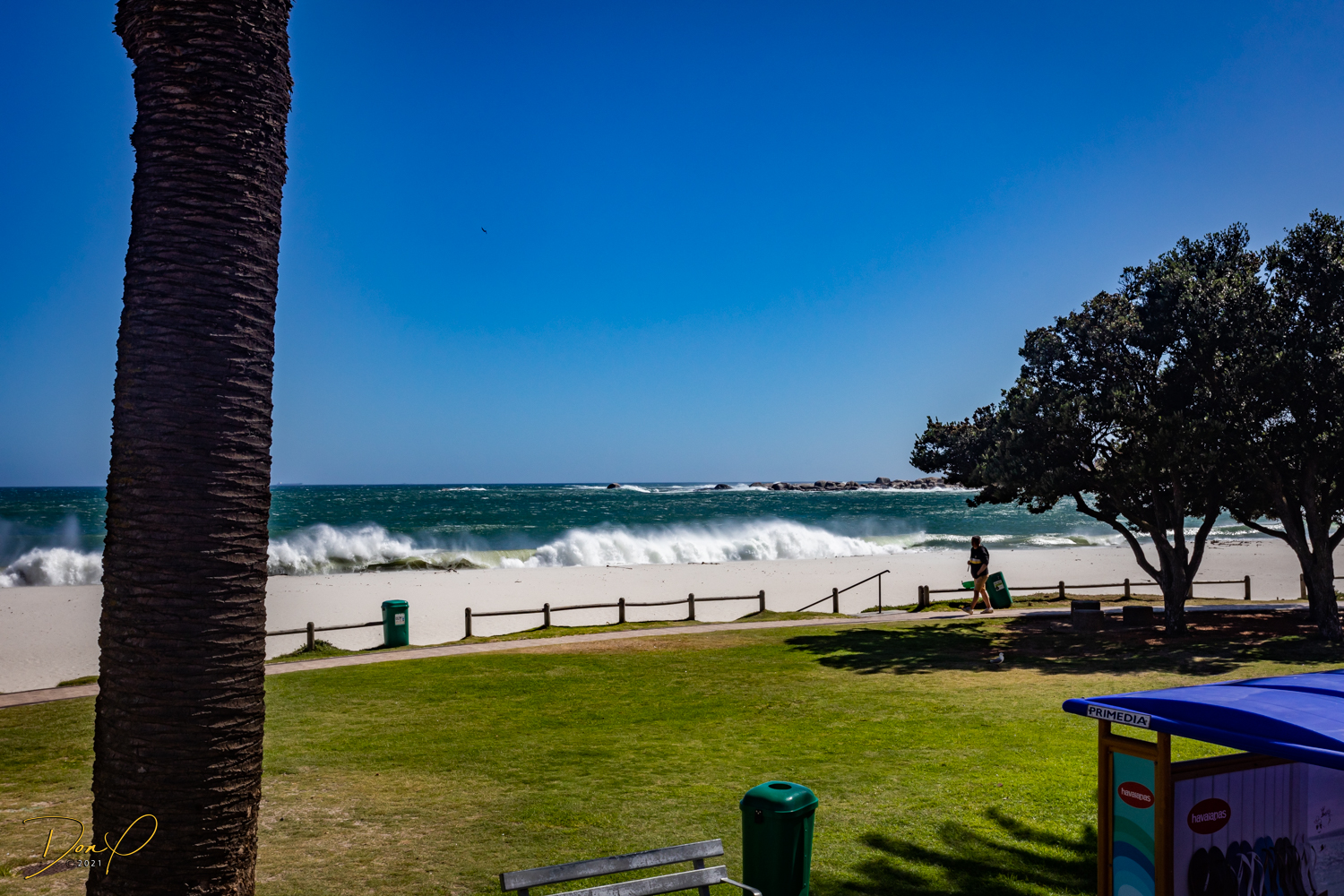 Back on the bus, we drive over the pass between Table Top Mountain and Lion’s Head, a pointy mountain that reminds me of photos I have seen of a mountain in Iceland that I someday want to photograph. Off to the other side of Table Top is a third mountain known as ‘Devil’s Peak’. The scenery here is fantastic and soon we descend down the mountain pass to beautiful beaches with waves crashing in the high winds!