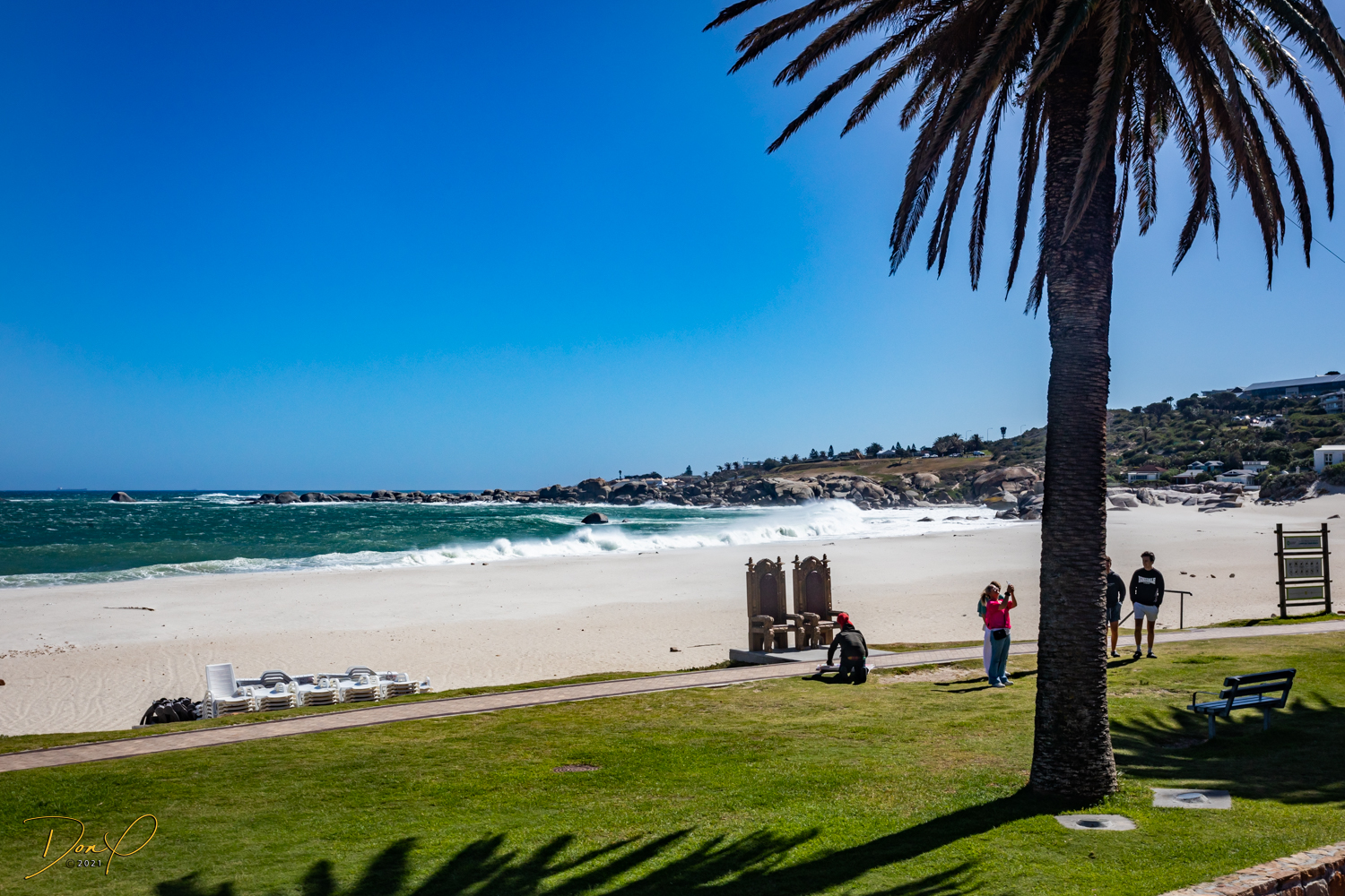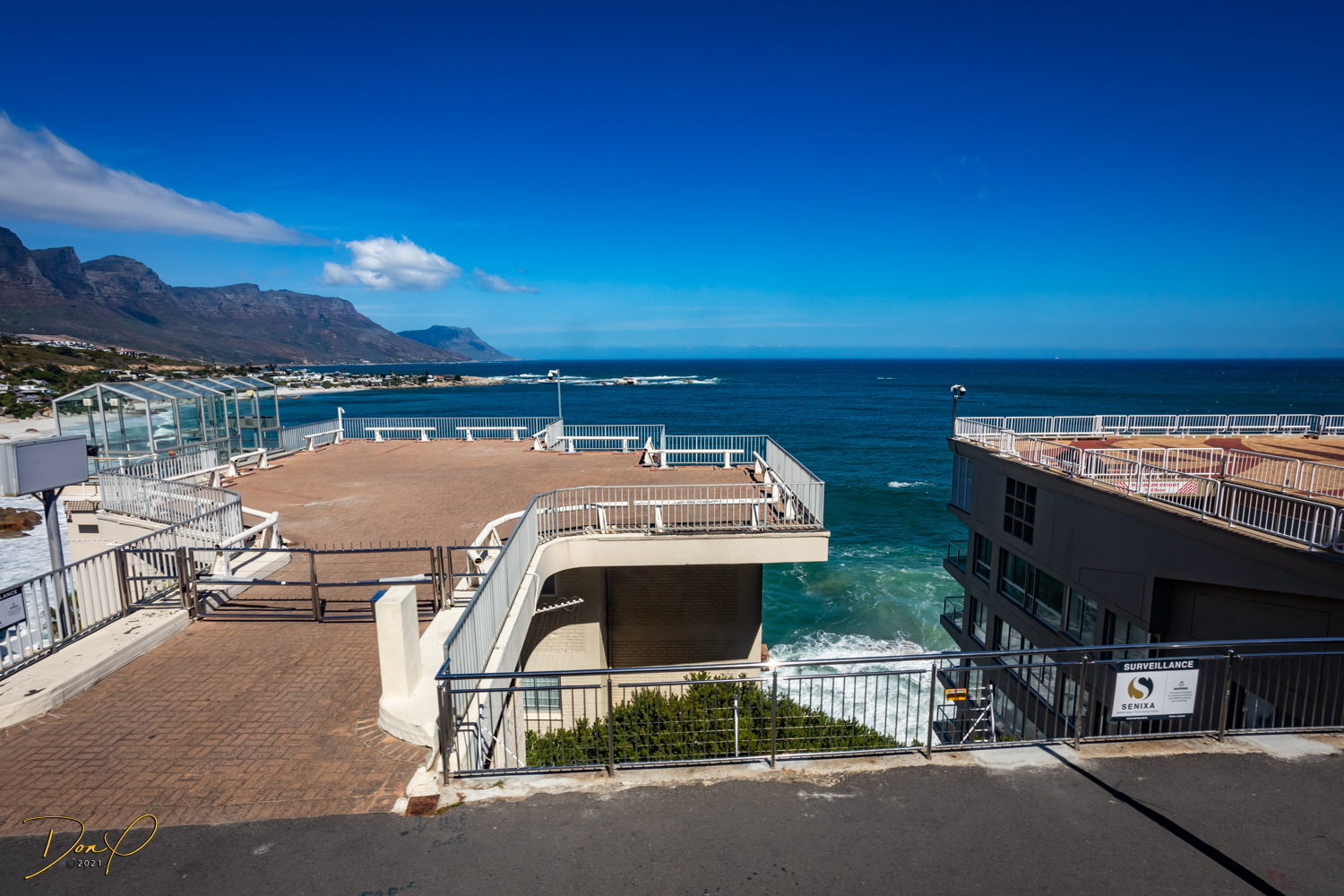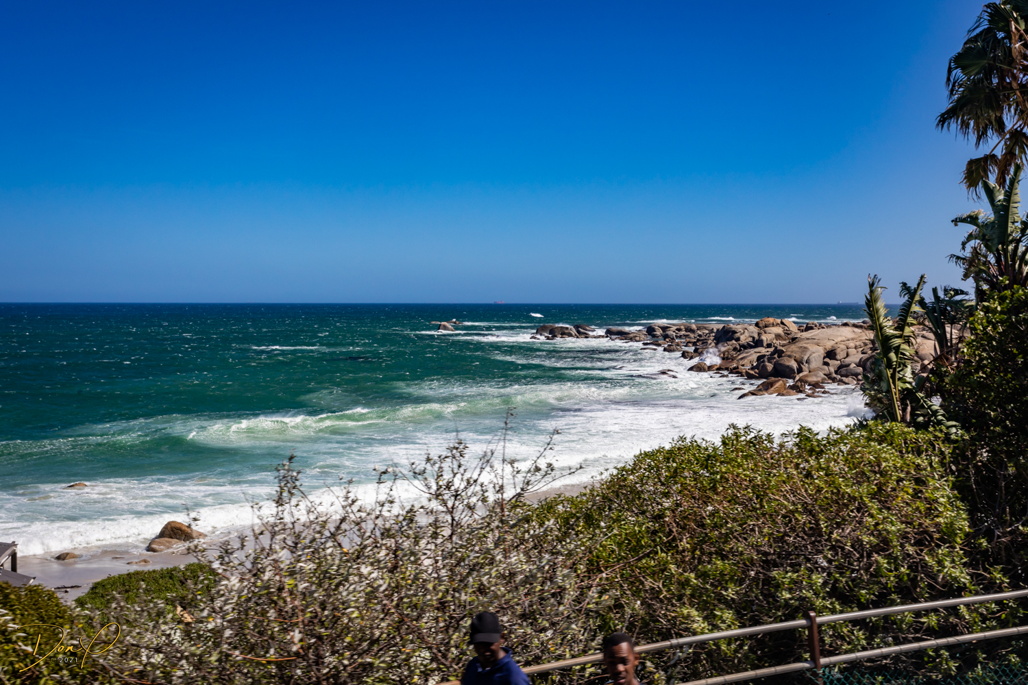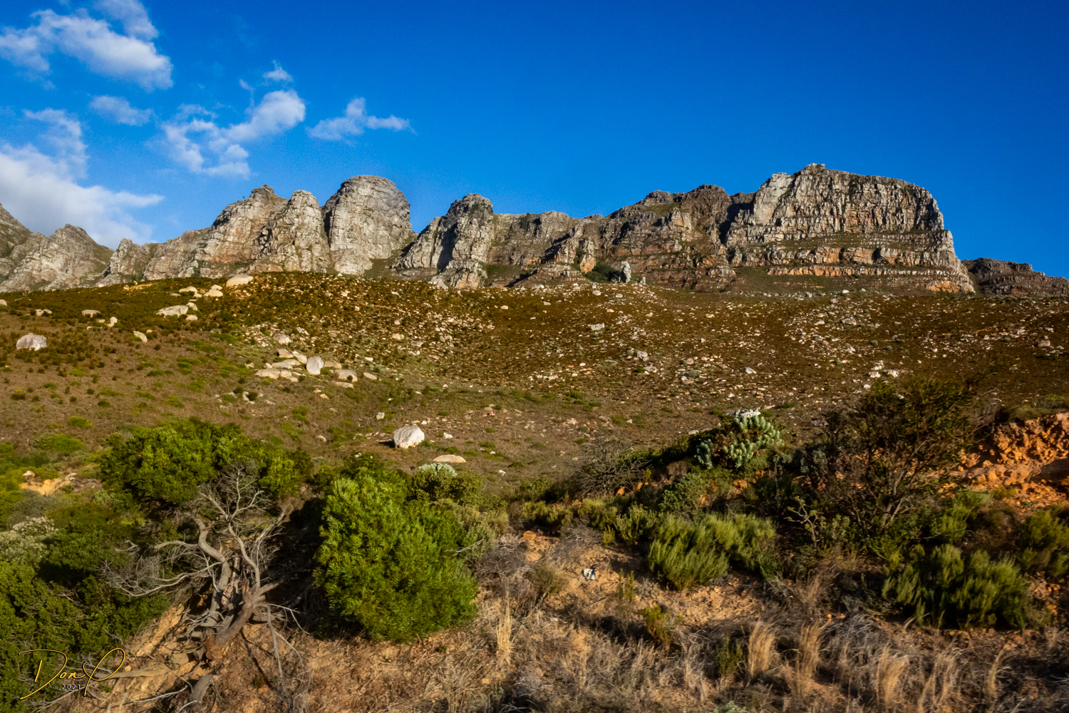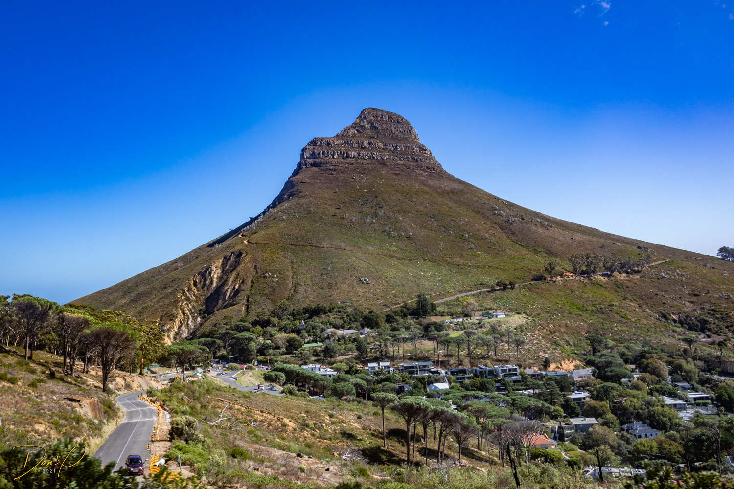 Back on the bus, we drive over the pass between Table Top Mountain and Lion’s Head, a pointy mountain that reminds me of photos I have seen of a mountain in Iceland that I someday want to photograph. Off to the other side of Table Top is a third mountain known as ‘Devil’s Peak’. The scenery here is fantastic and soon we descend down the mountain pass to beautiful beaches with waves crashing in the high winds!