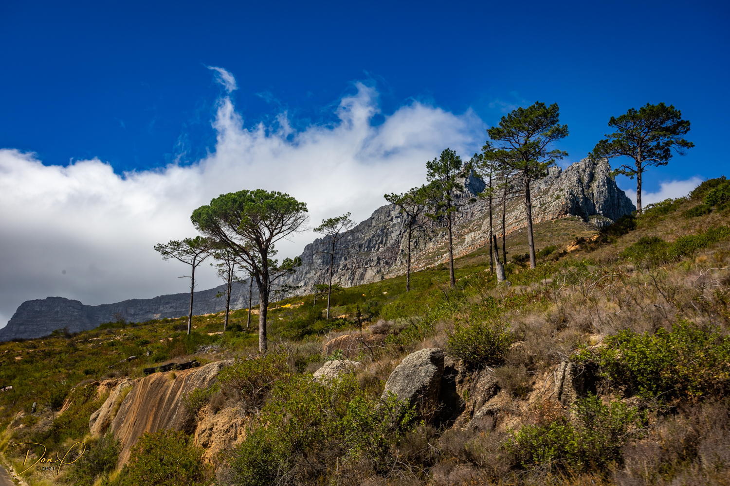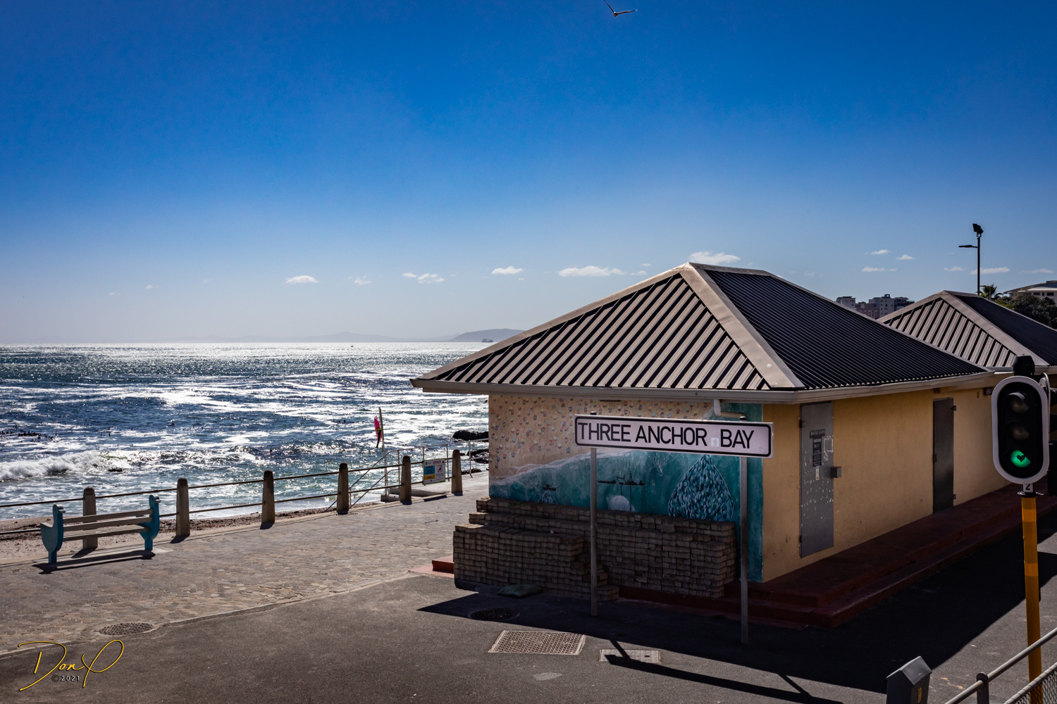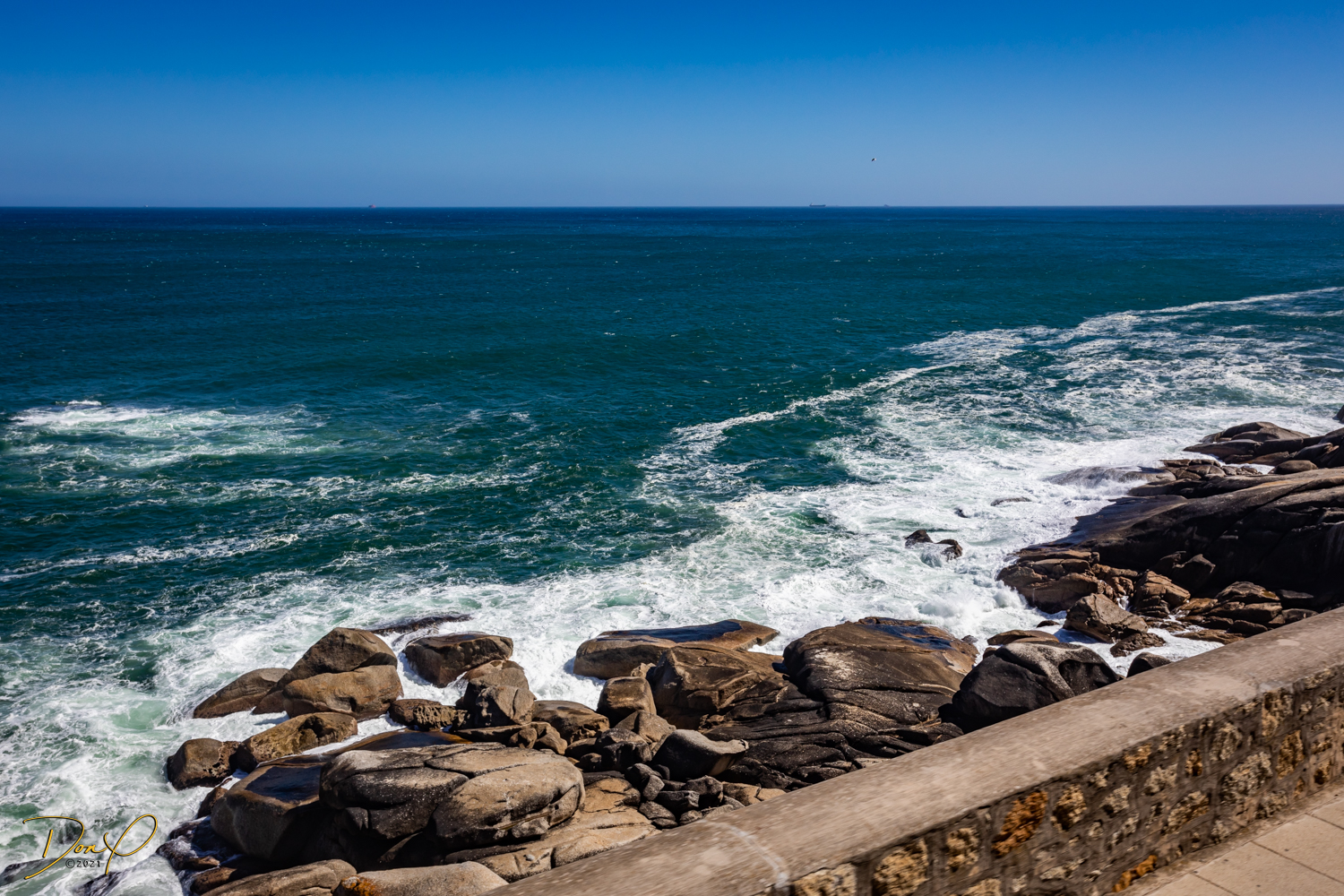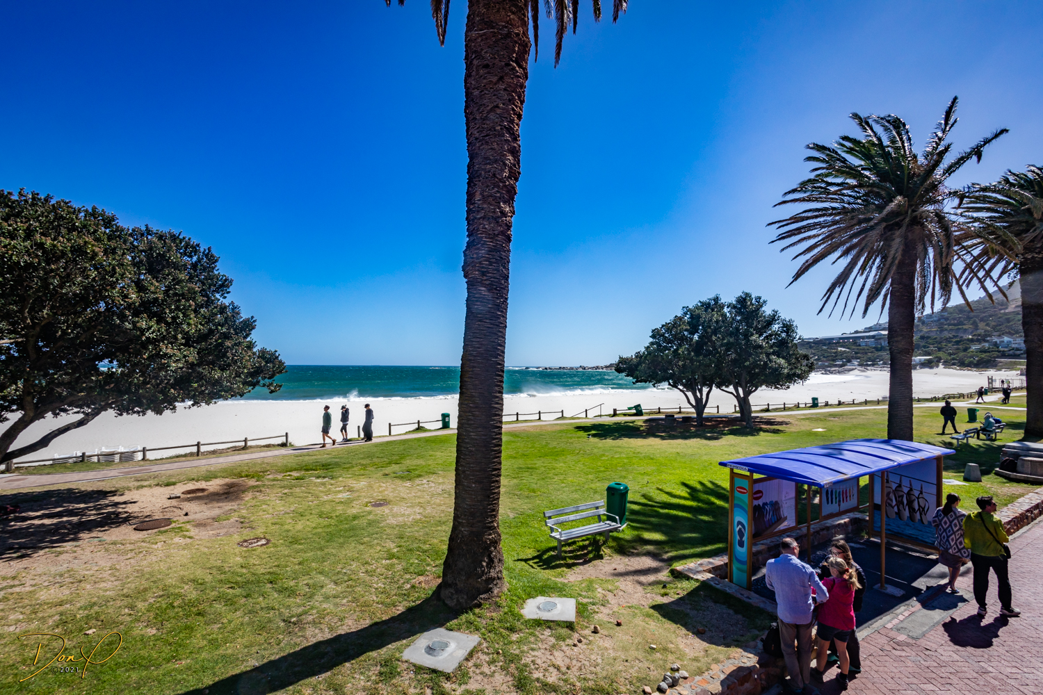 Back on the bus, we drive over the pass between Table Top Mountain and Lion’s Head, a pointy mountain that reminds me of photos I have seen of a mountain in Iceland that I someday want to photograph. Off to the other side of Table Top is a third mountain known as ‘Devil’s Peak’. The scenery here is fantastic and soon we descend down the mountain pass to beautiful beaches with waves crashing in the high winds!