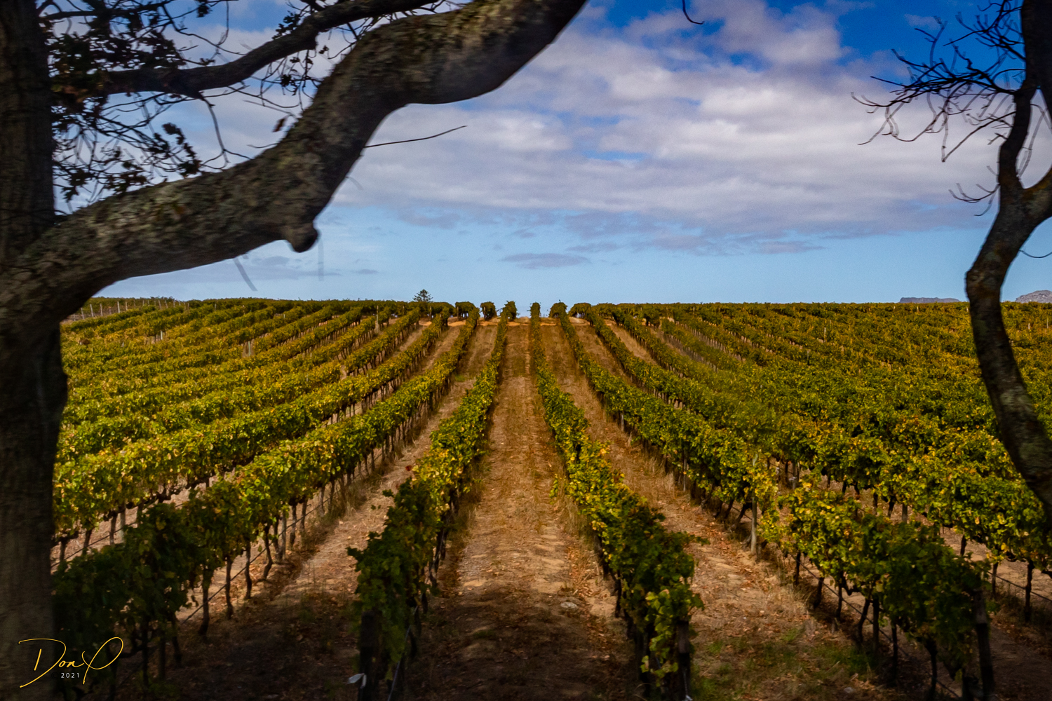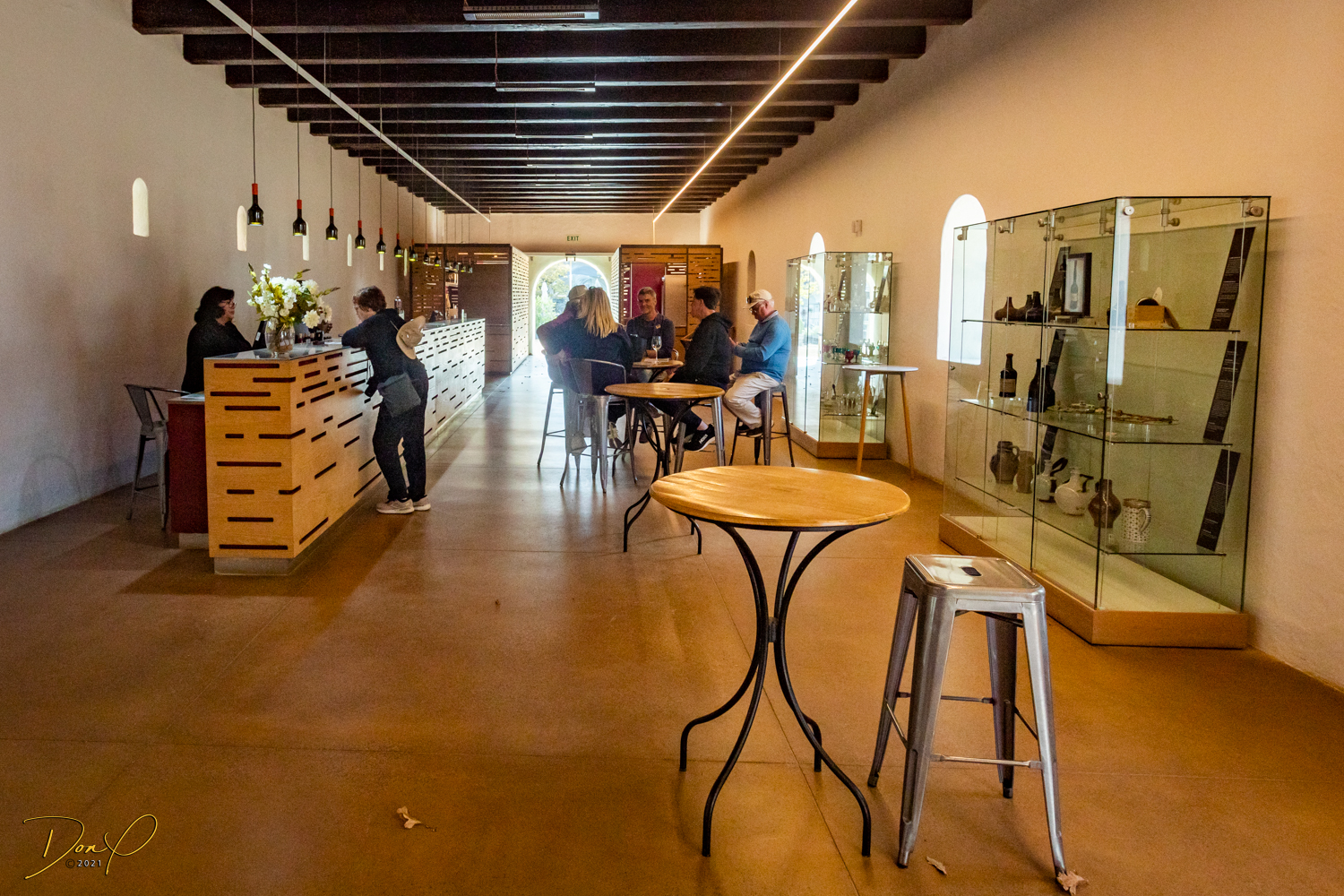 We walk outside and brave the winds again and walk over to the wine tasting building. We look at the wine tasting menu and see the top choices were what we had with lunch so we move on and head back to the bus. The next stop is a walking trail down an extreme slope and we opt out and go back to the bus.