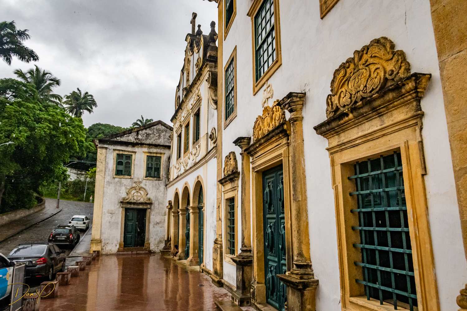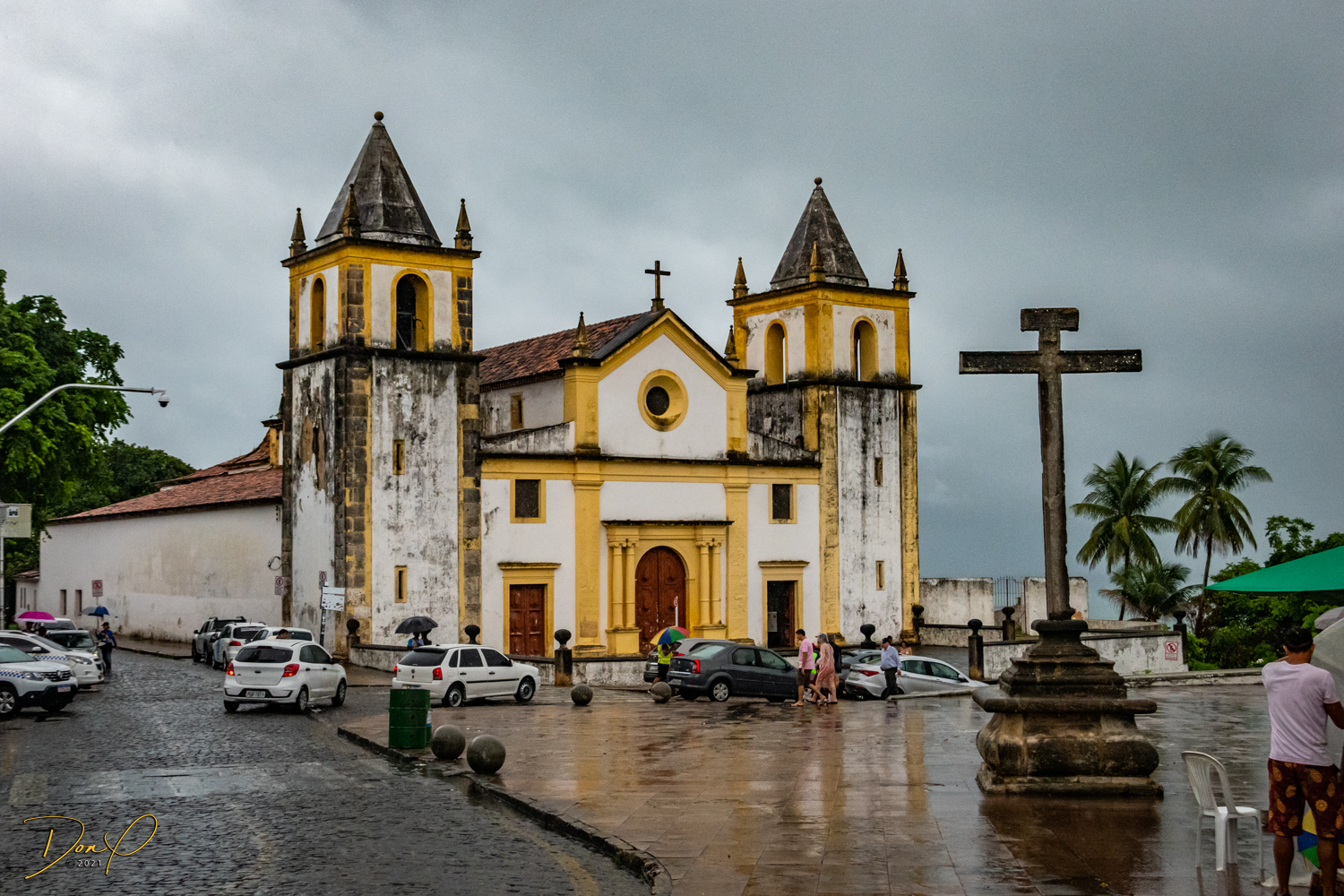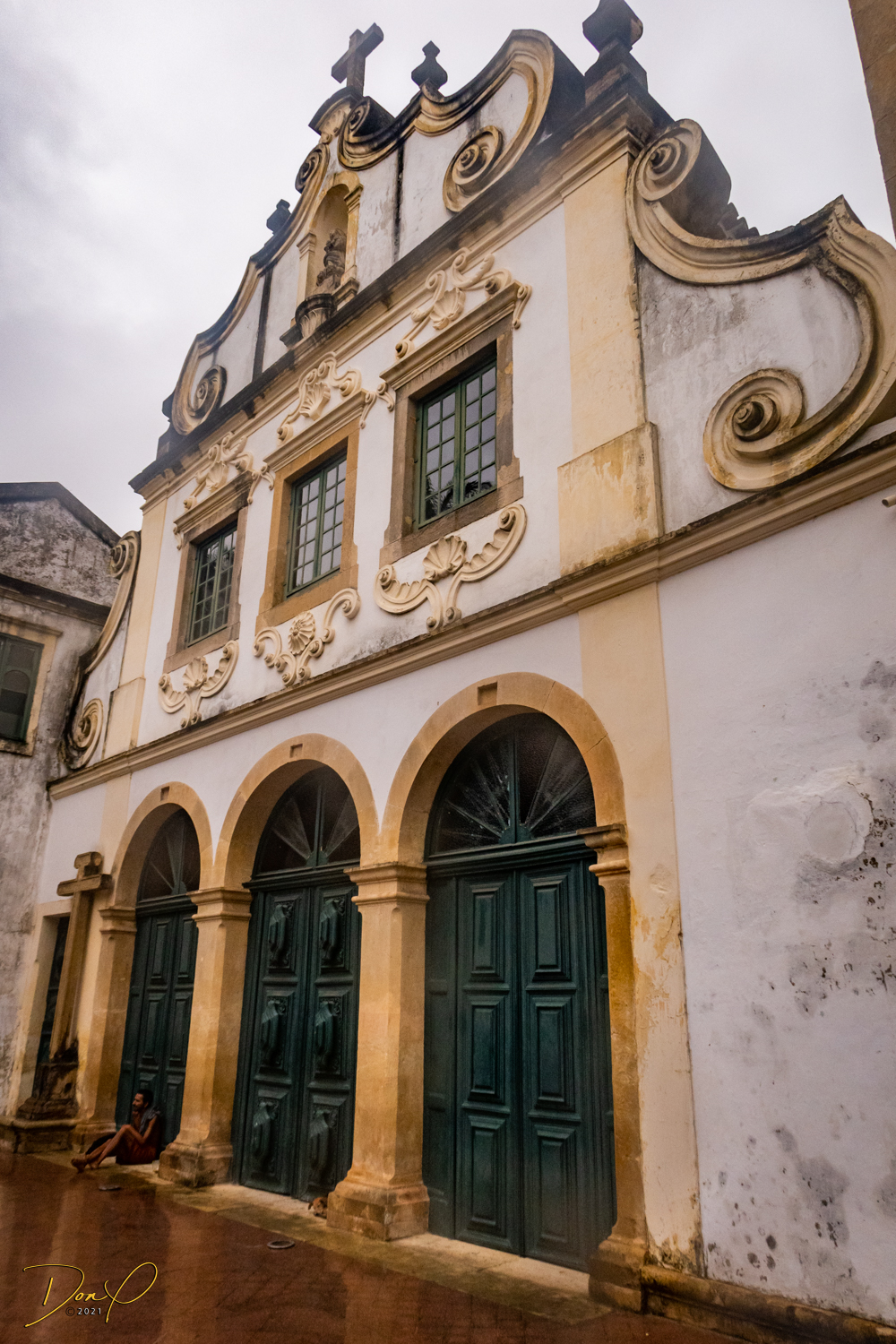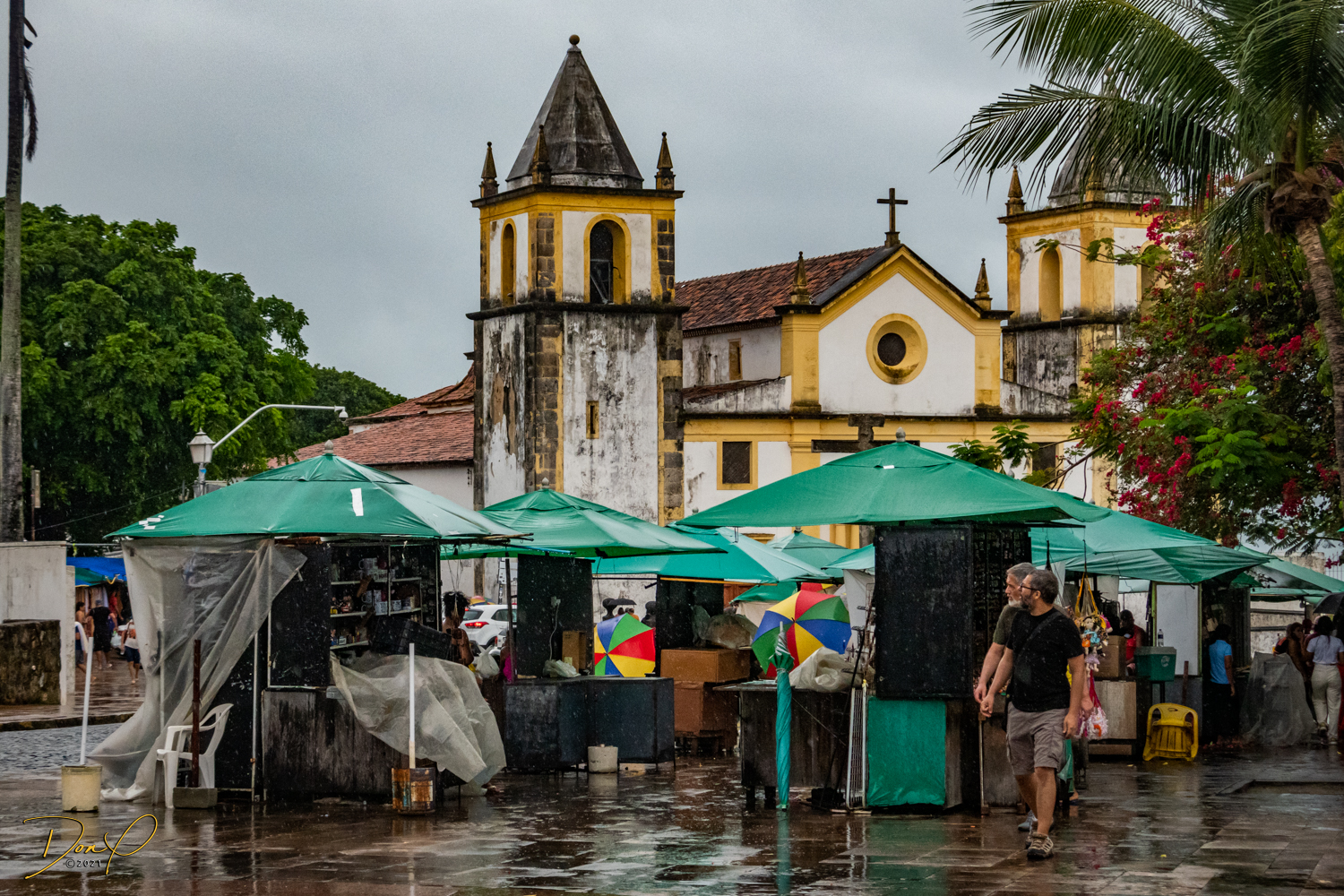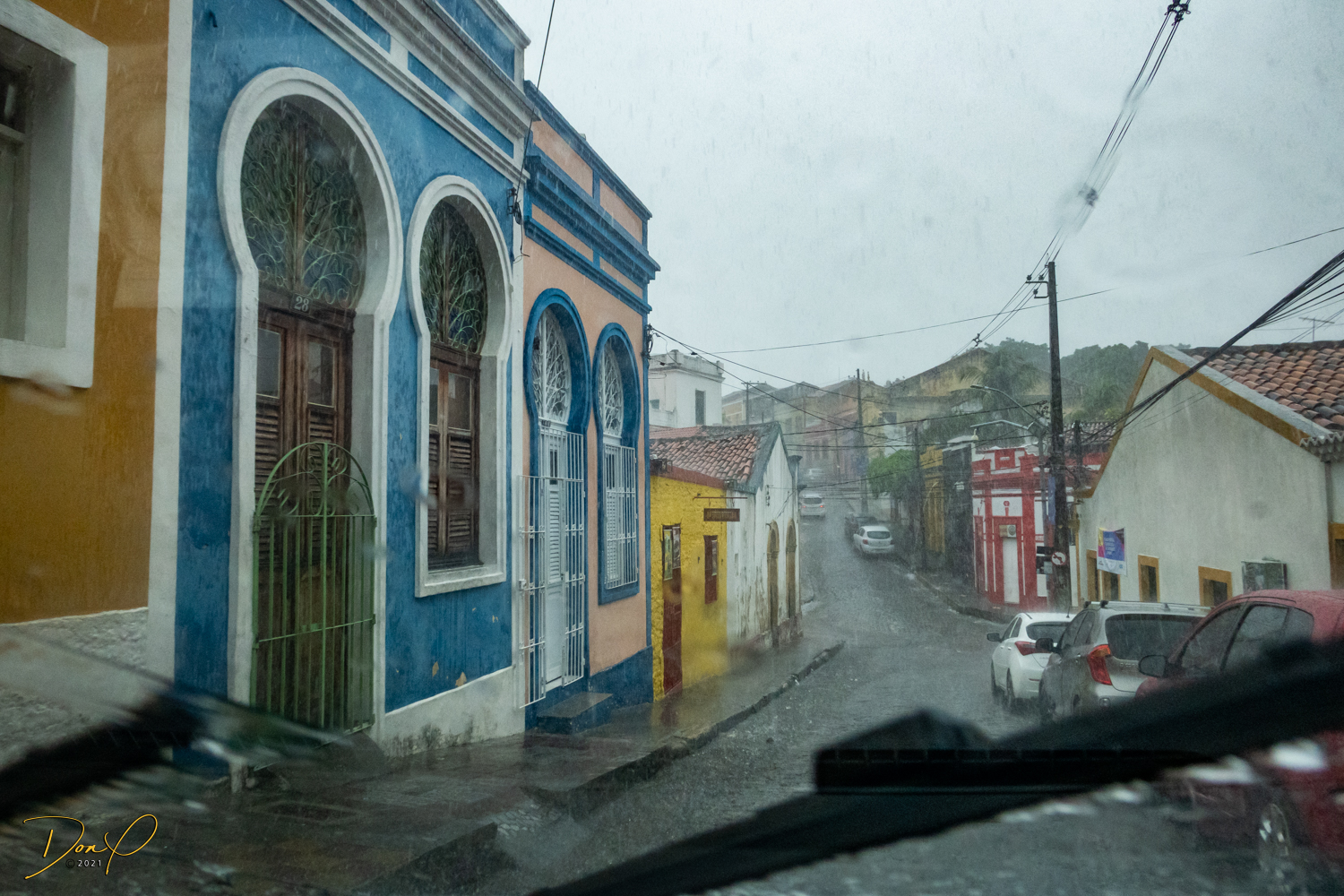 Franklin takes us up the hill to the next town of Olinda where colorful buildings and houses are everywhere! We visit Cathedrals and churches and photograph them to our cameras delight! We get ocean and harbor views in the rain and fog! At times the rain is heavier. But it is a warm rain and at no time do we feel uncomfortable! Soaking wet, the only thing i attempt to do is keep the camera dry. I am mostly successful at that. I am carrying a dry cloth in my back pocket that I use to occasionally wipe down the camera.