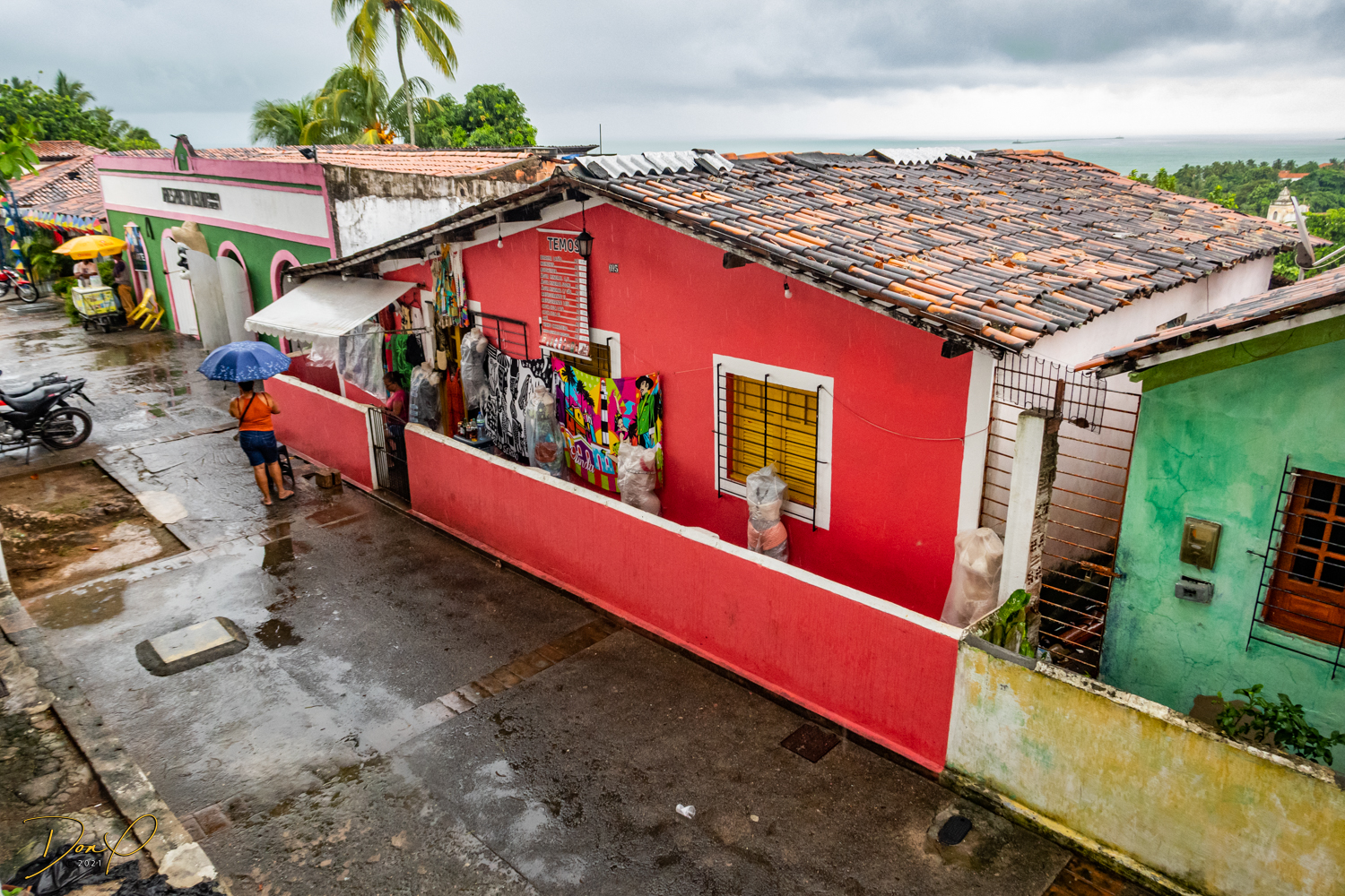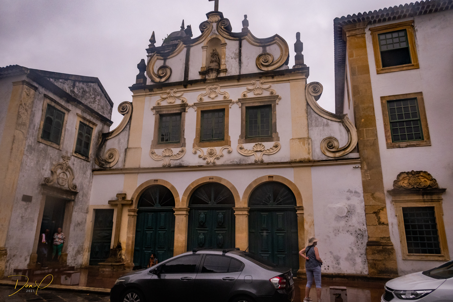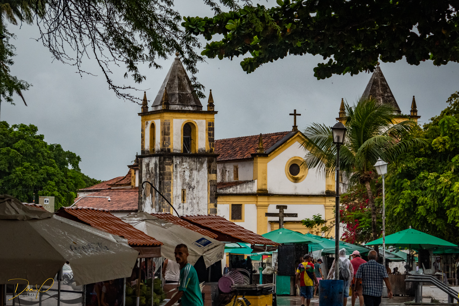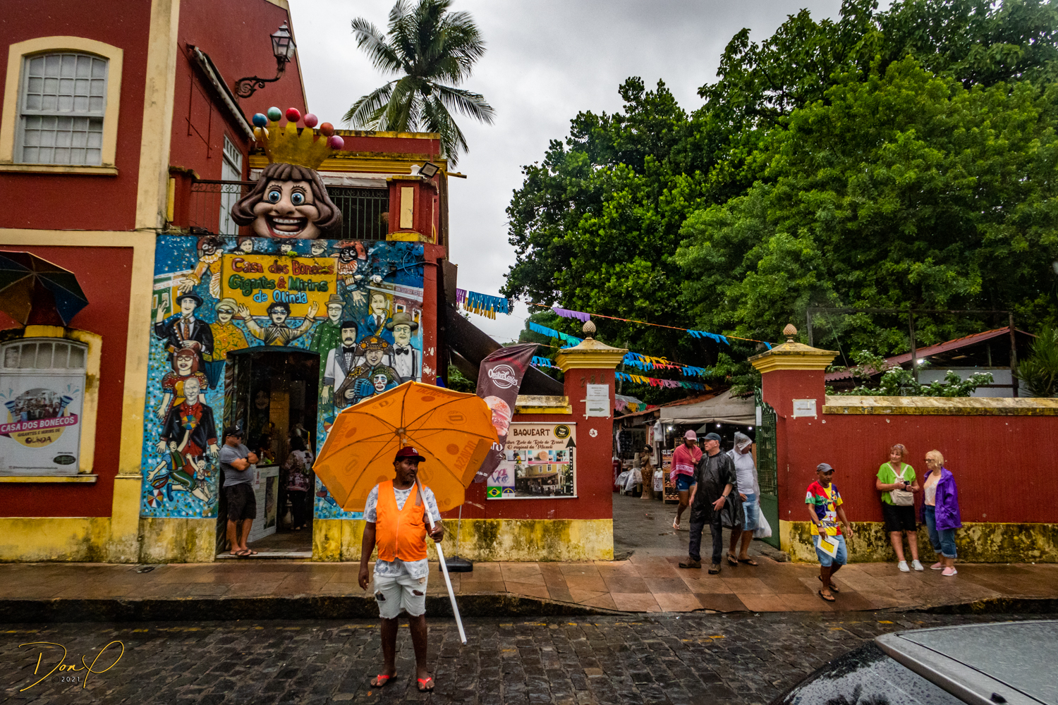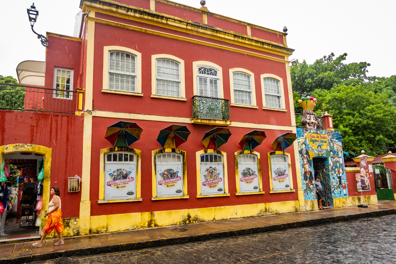 Franklin takes us up the hill to the next town of Olinda where colorful buildings and houses are everywhere! We visit Cathedrals and churches and photograph them to our cameras delight! We get ocean and harbor views in the rain and fog! At times the rain is heavier. But it is a warm rain and at no time do we feel uncomfortable! Soaking wet, the only thing i attempt to do is keep the camera dry. I am mostly successful at that. I am carrying a dry cloth in my back pocket that I use to occasionally wipe down the camera.