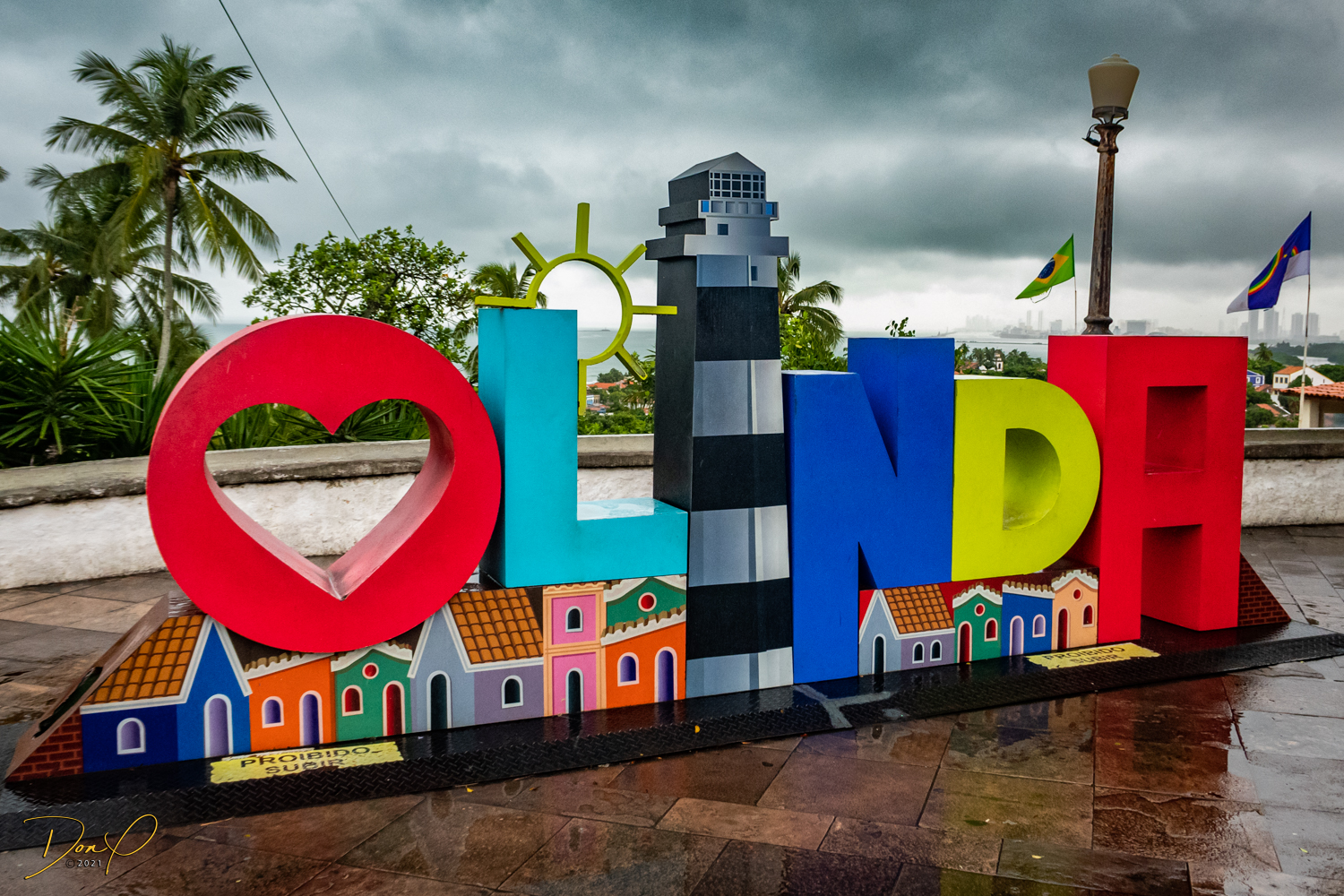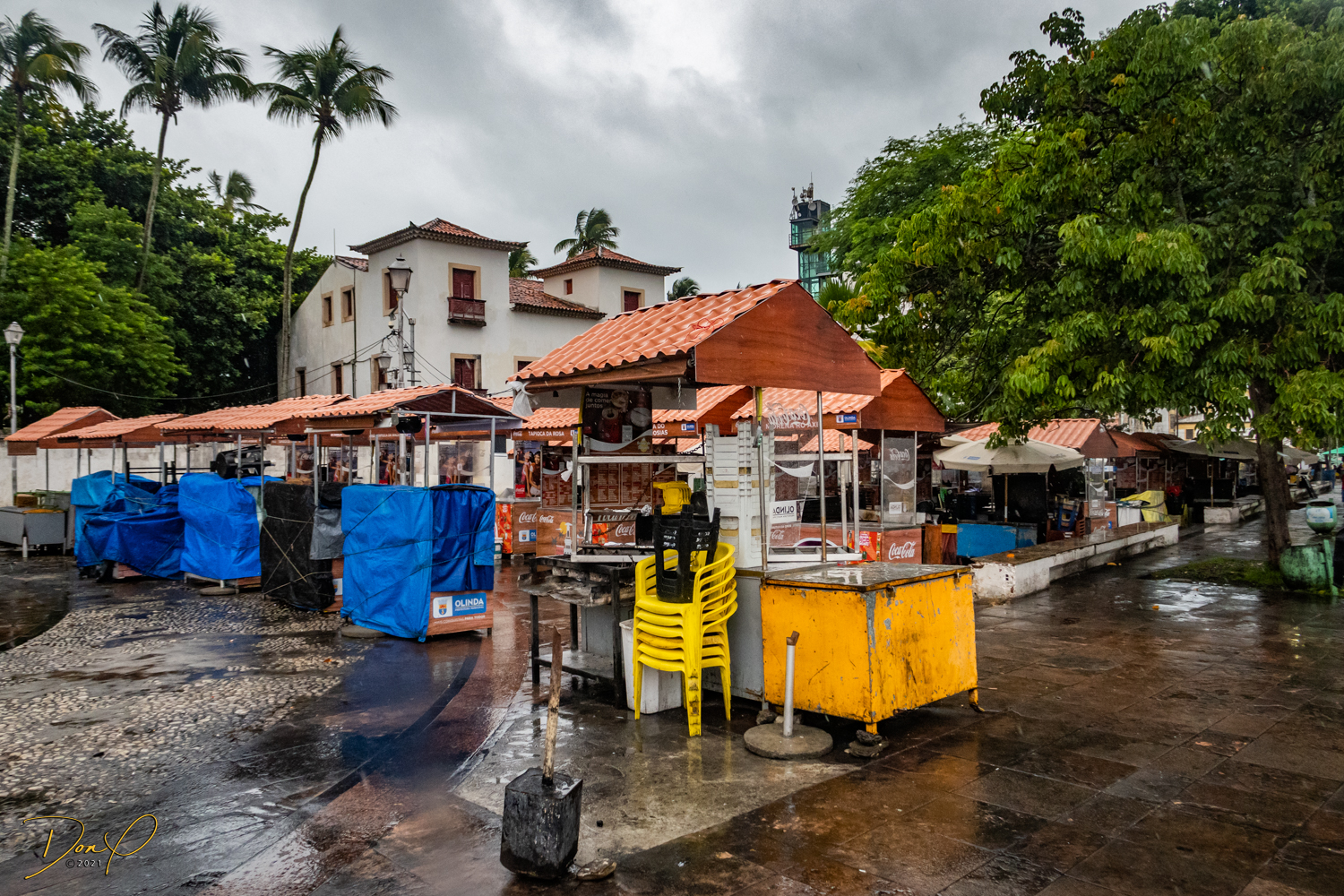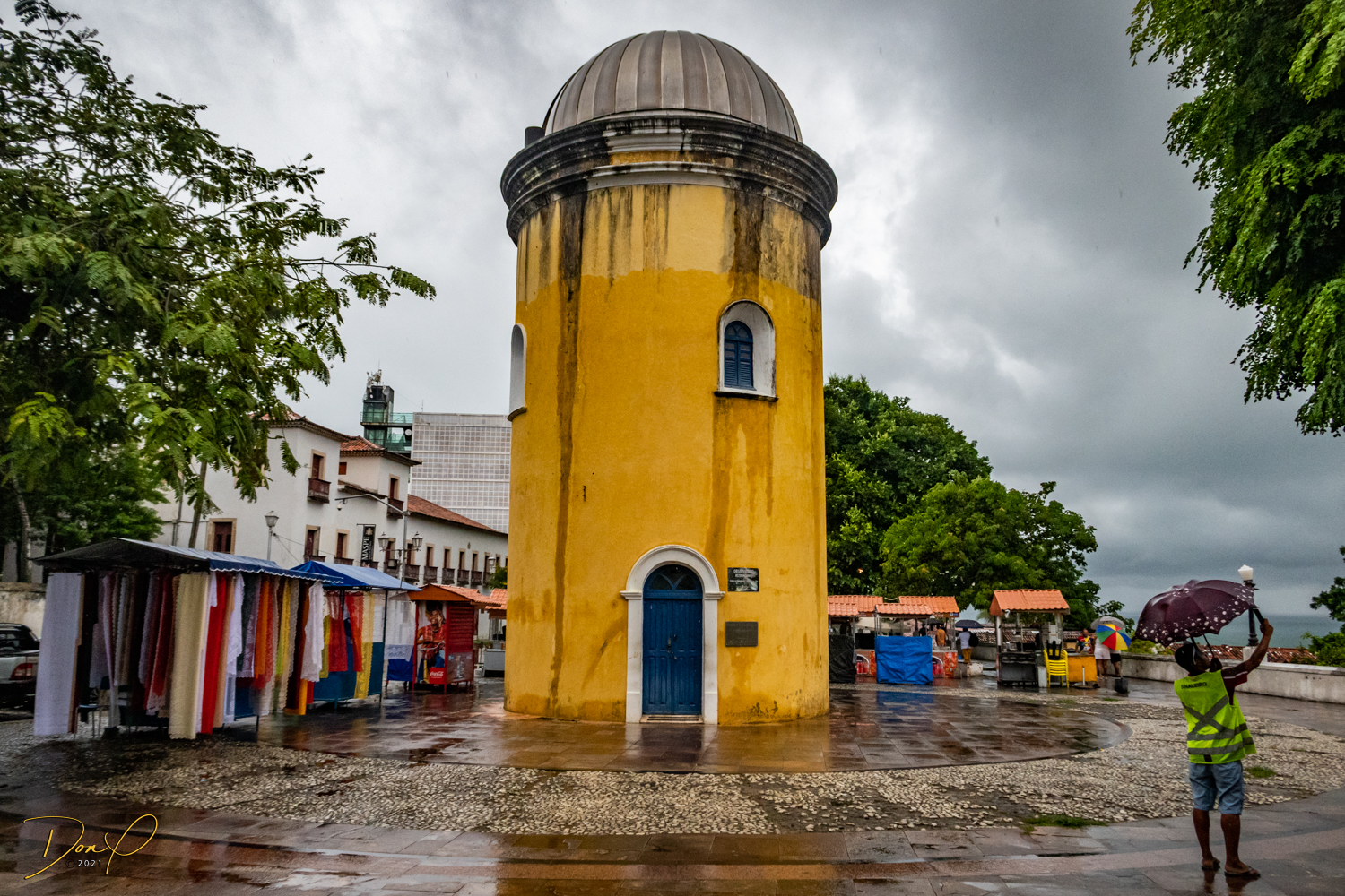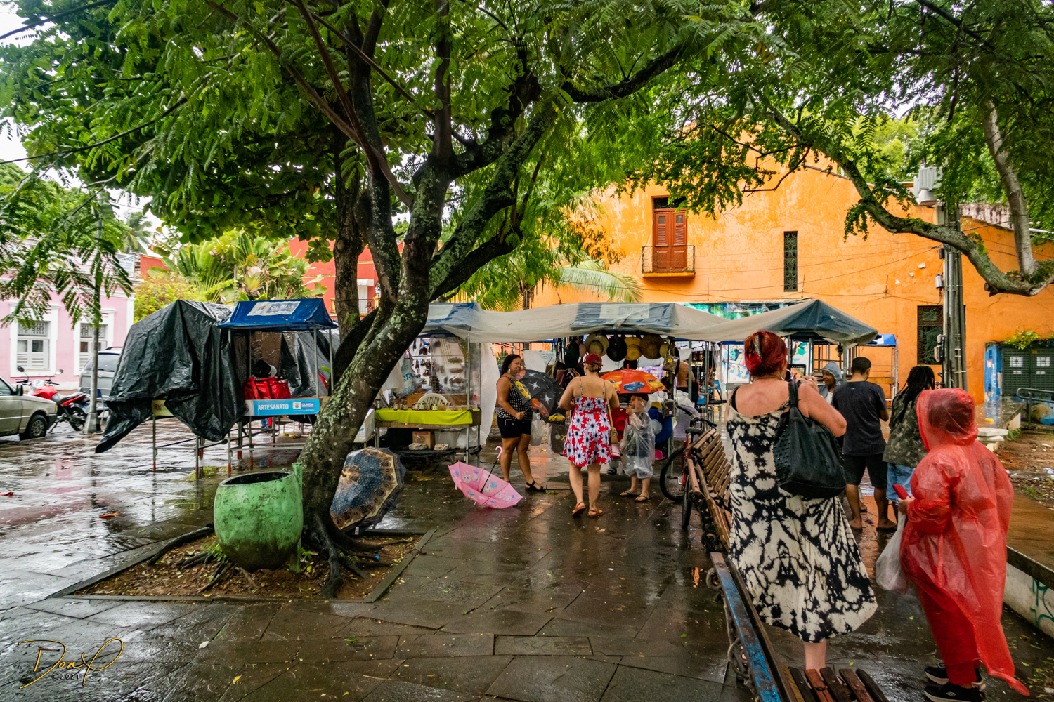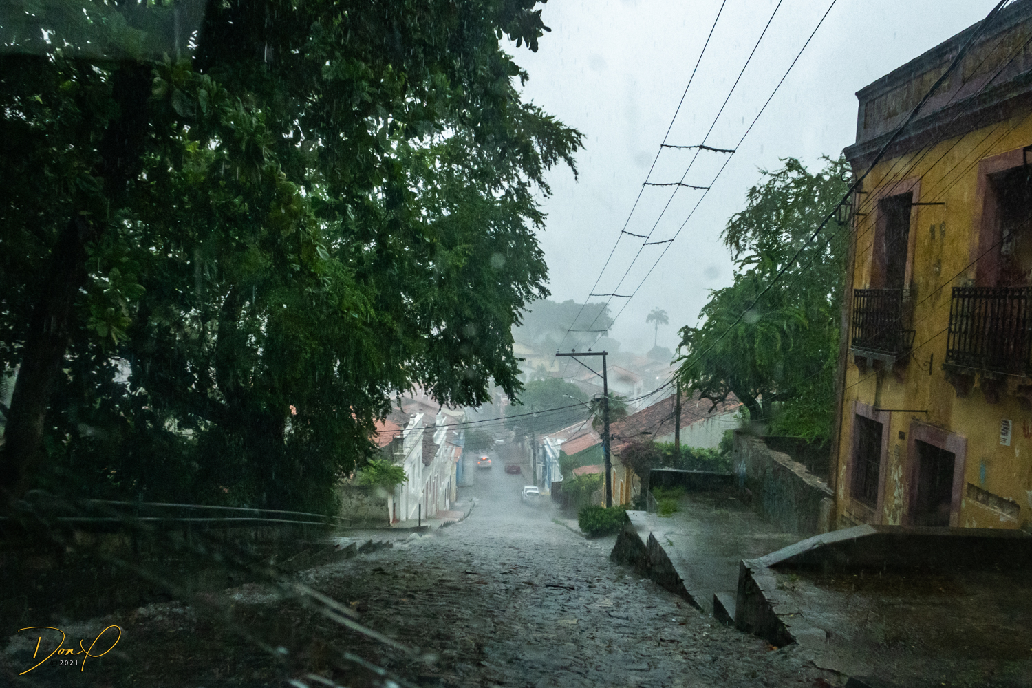 Franklin takes us up the hill to the next town of Olinda where colorful buildings and houses are everywhere! We visit Cathedrals and churches and photograph them to our cameras delight! We get ocean and harbor views in the rain and fog! At times the rain is heavier. But it is a warm rain and at no time do we feel uncomfortable! Soaking wet, the only thing i attempt to do is keep the camera dry. I am mostly successful at that. I am carrying a dry cloth in my back pocket that I use to occasionally wipe down the camera.