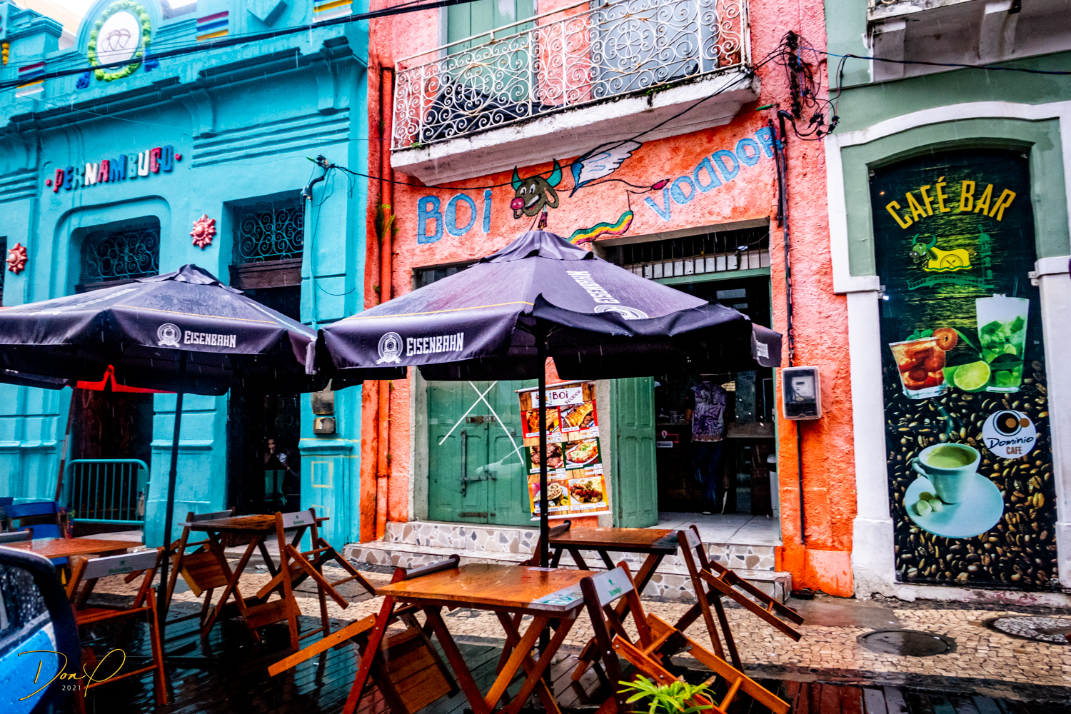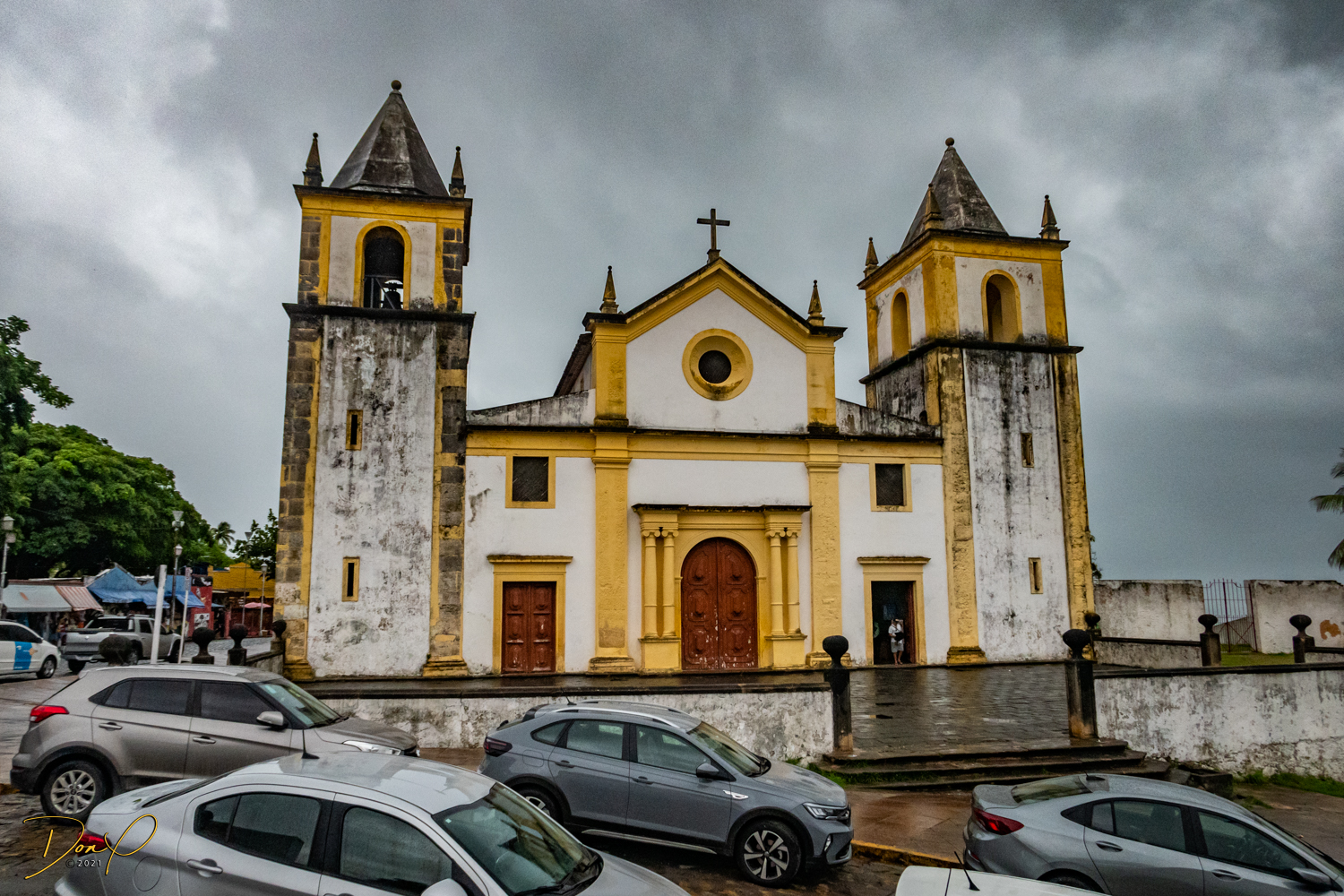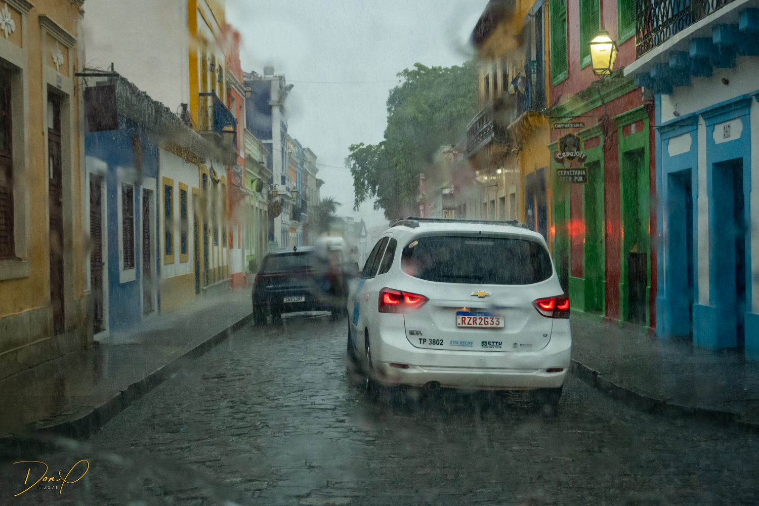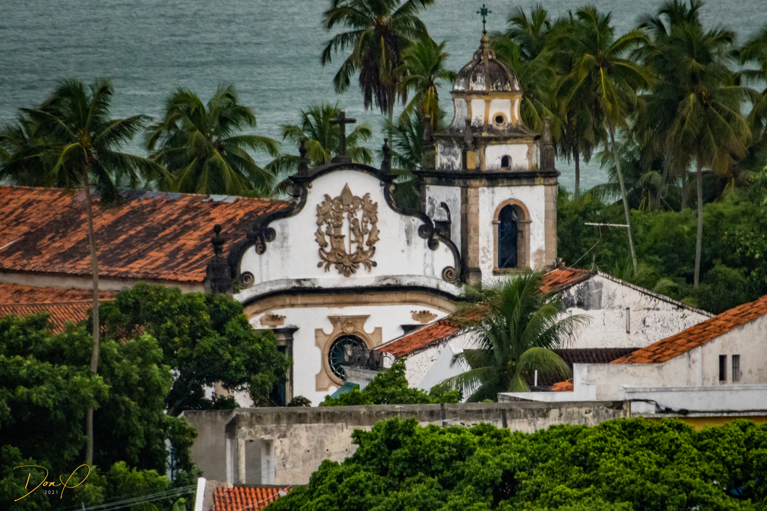 Franklin takes us up the hill to the next town of Olinda where colorful buildings and houses are everywhere! We visit Cathedrals and churches and photograph them to our cameras delight! We get ocean and harbor views in the rain and fog! At times the rain is heavier. But it is a warm rain and at no time do we feel uncomfortable! Soaking wet, the only thing i attempt to do is keep the camera dry. I am mostly successful at that. I am carrying a dry cloth in my back pocket that I use to occasionally wipe down the camera.