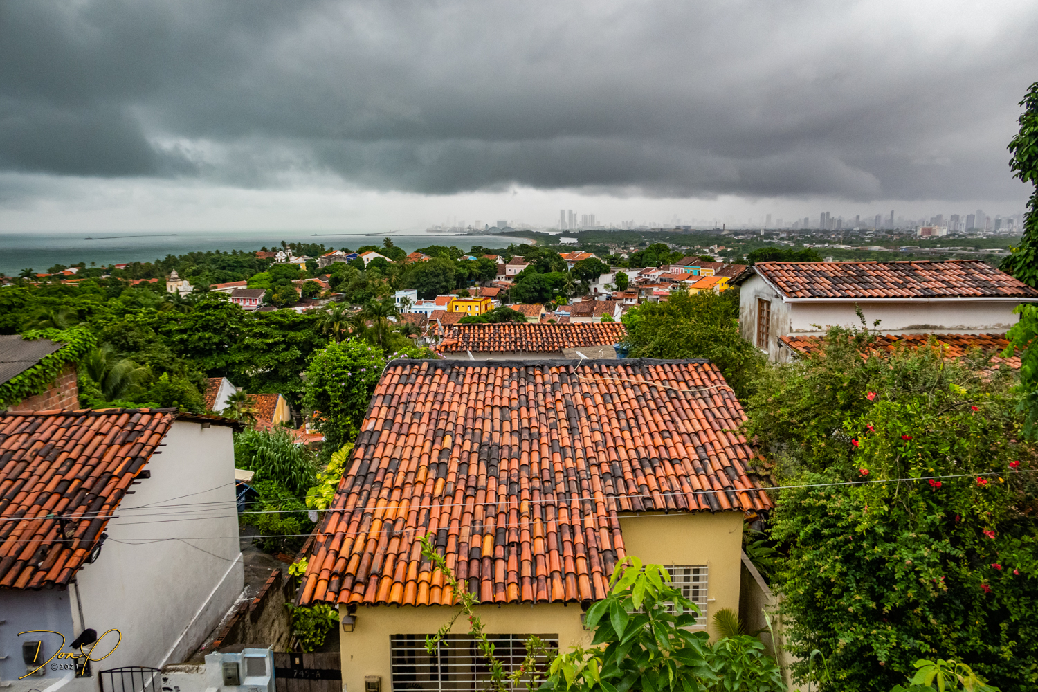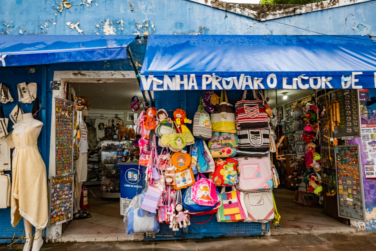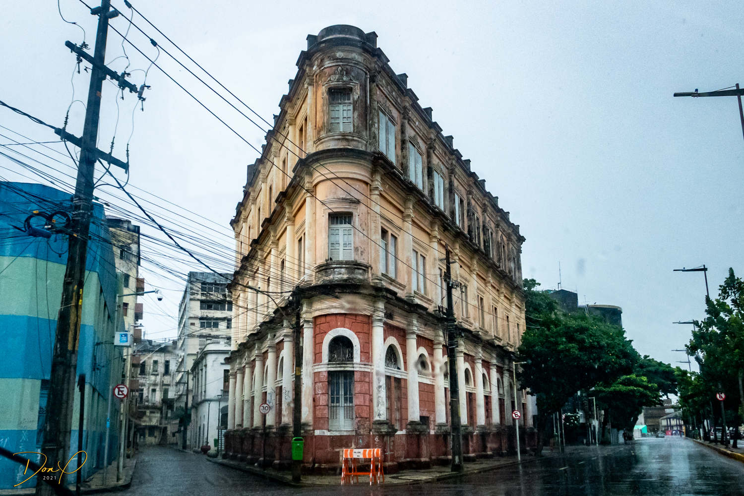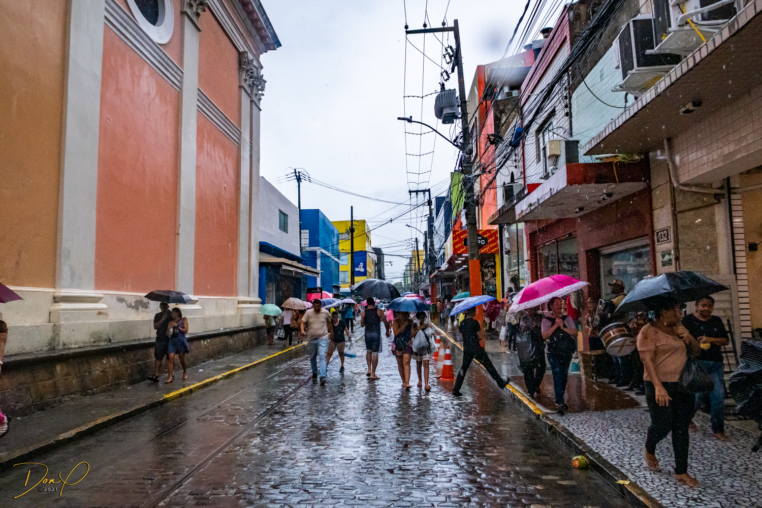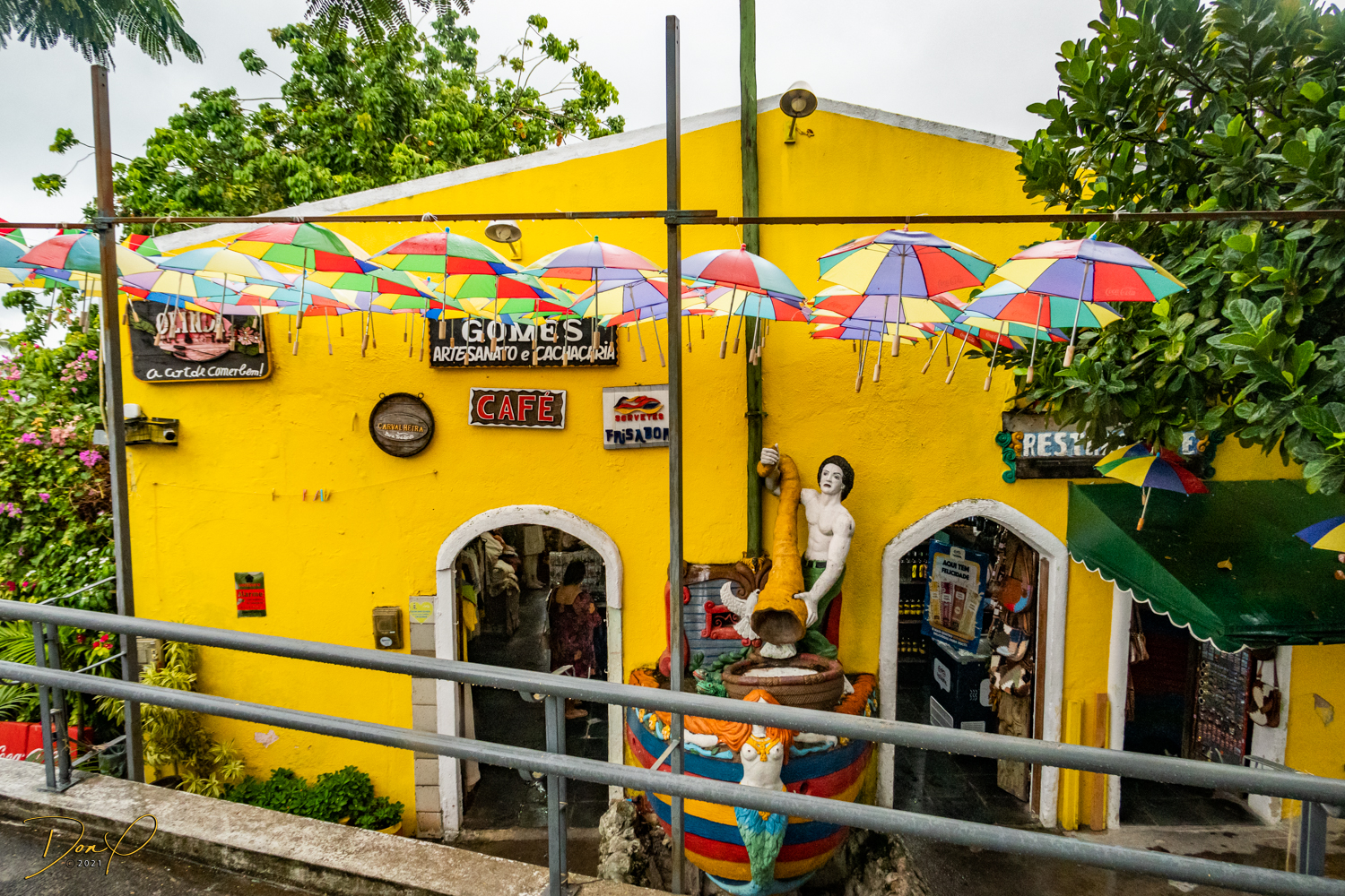 Franklin takes us up the hill to the next town of Olinda where colorful buildings and houses are everywhere! We visit Cathedrals and churches and photograph them to our cameras delight! We get ocean and harbor views in the rain and fog! At times the rain is heavier. But it is a warm rain and at no time do we feel uncomfortable! Soaking wet, the only thing i attempt to do is keep the camera dry. I am mostly successful at that. I am carrying a dry cloth in my back pocket that I use to occasionally wipe down the camera.