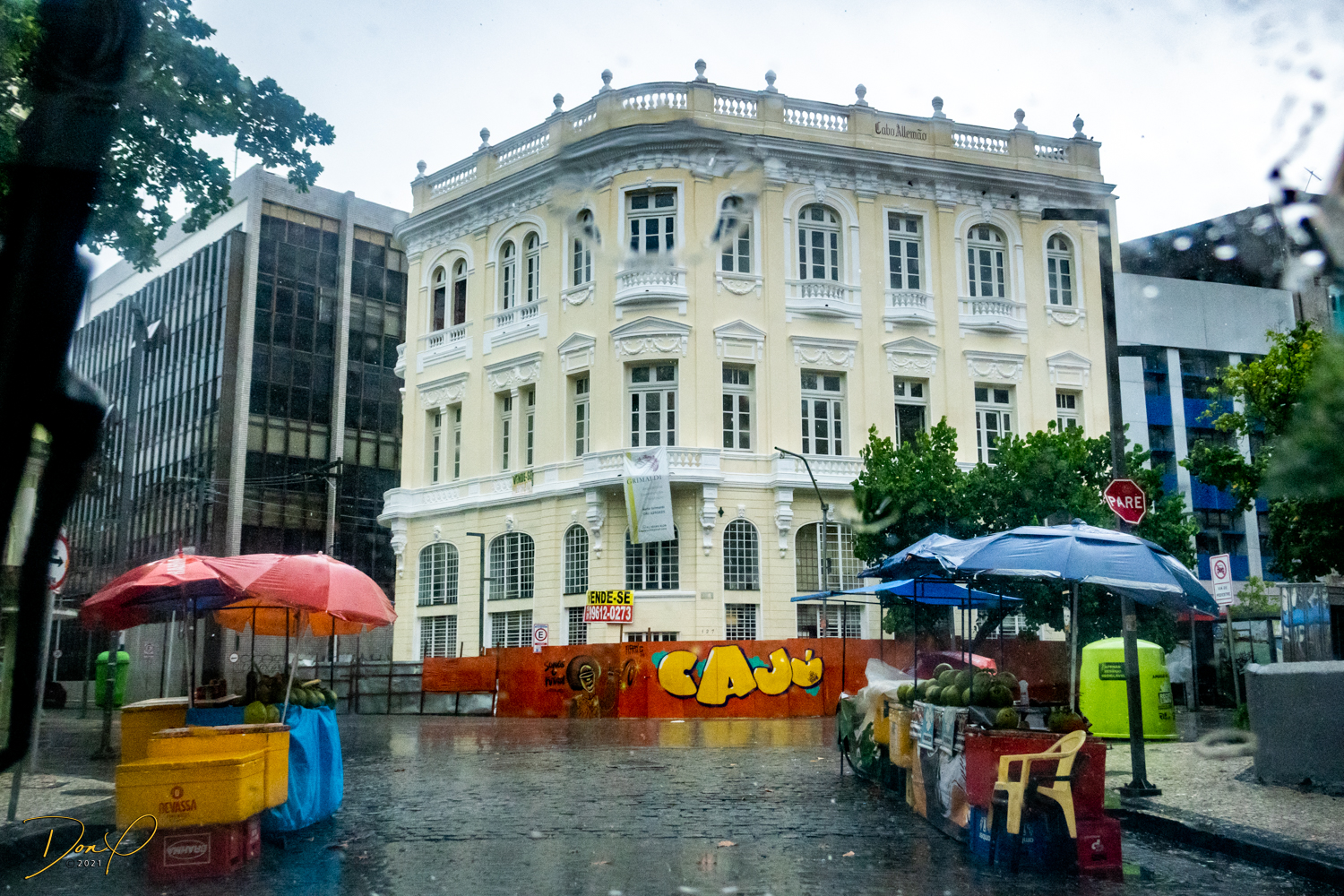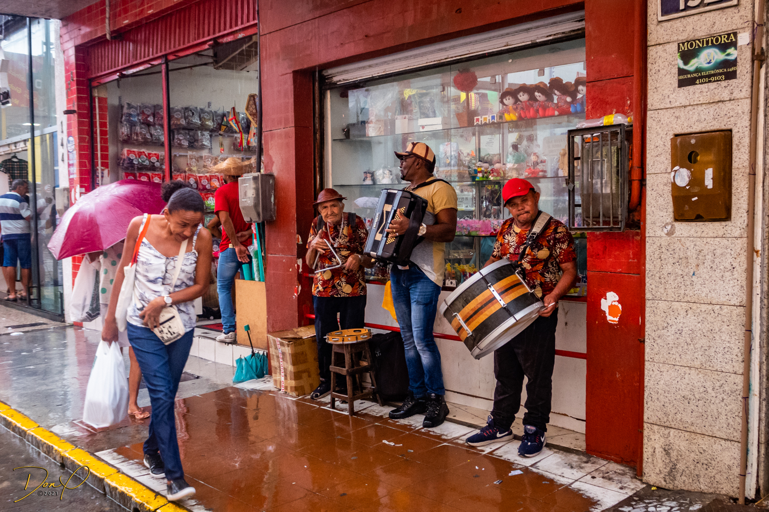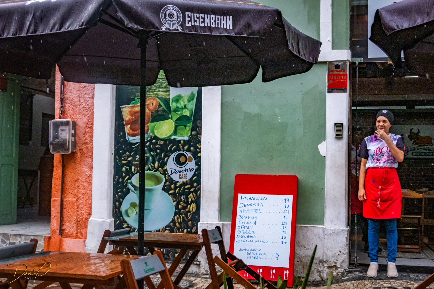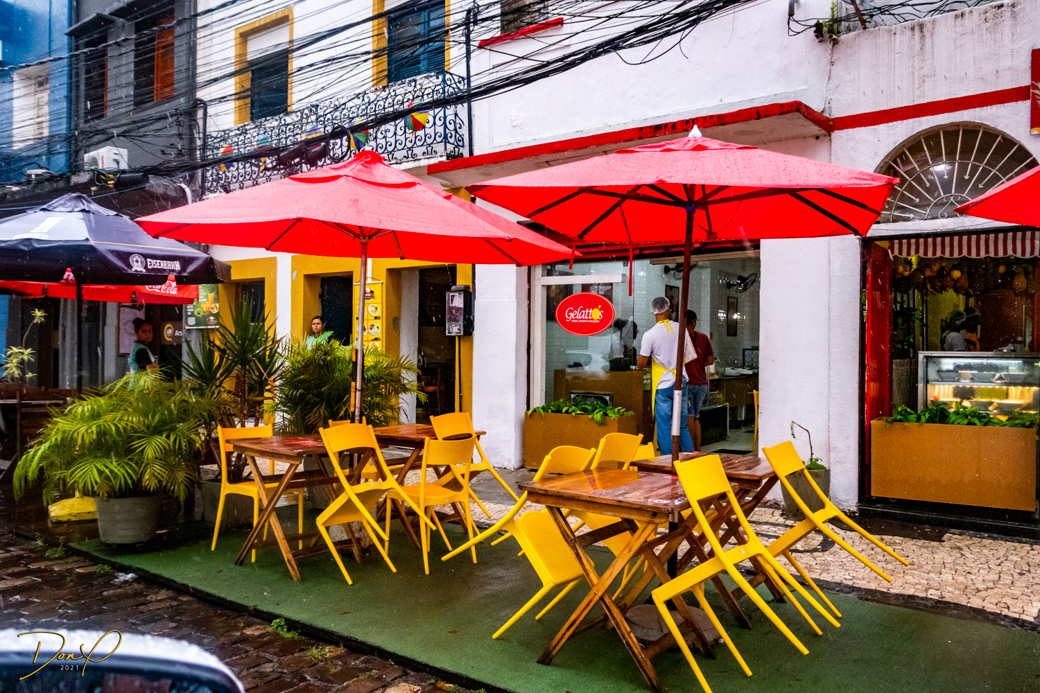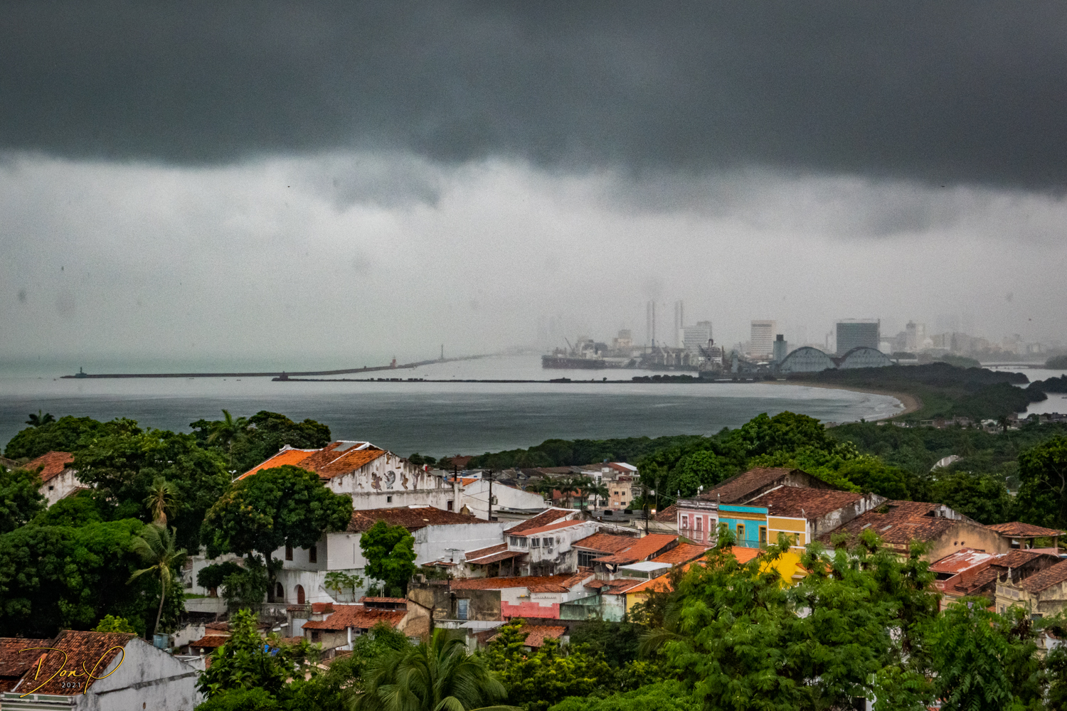 Franklin takes us up the hill to the next town of Olinda where colorful buildings and houses are everywhere! We visit Cathedrals and churches and photograph them to our cameras delight! We get ocean and harbor views in the rain and fog! At times the rain is heavier. But it is a warm rain and at no time do we feel uncomfortable! Soaking wet, the only thing i attempt to do is keep the camera dry. I am mostly successful at that. I am carrying a dry cloth in my back pocket that I use to occasionally wipe down the camera.