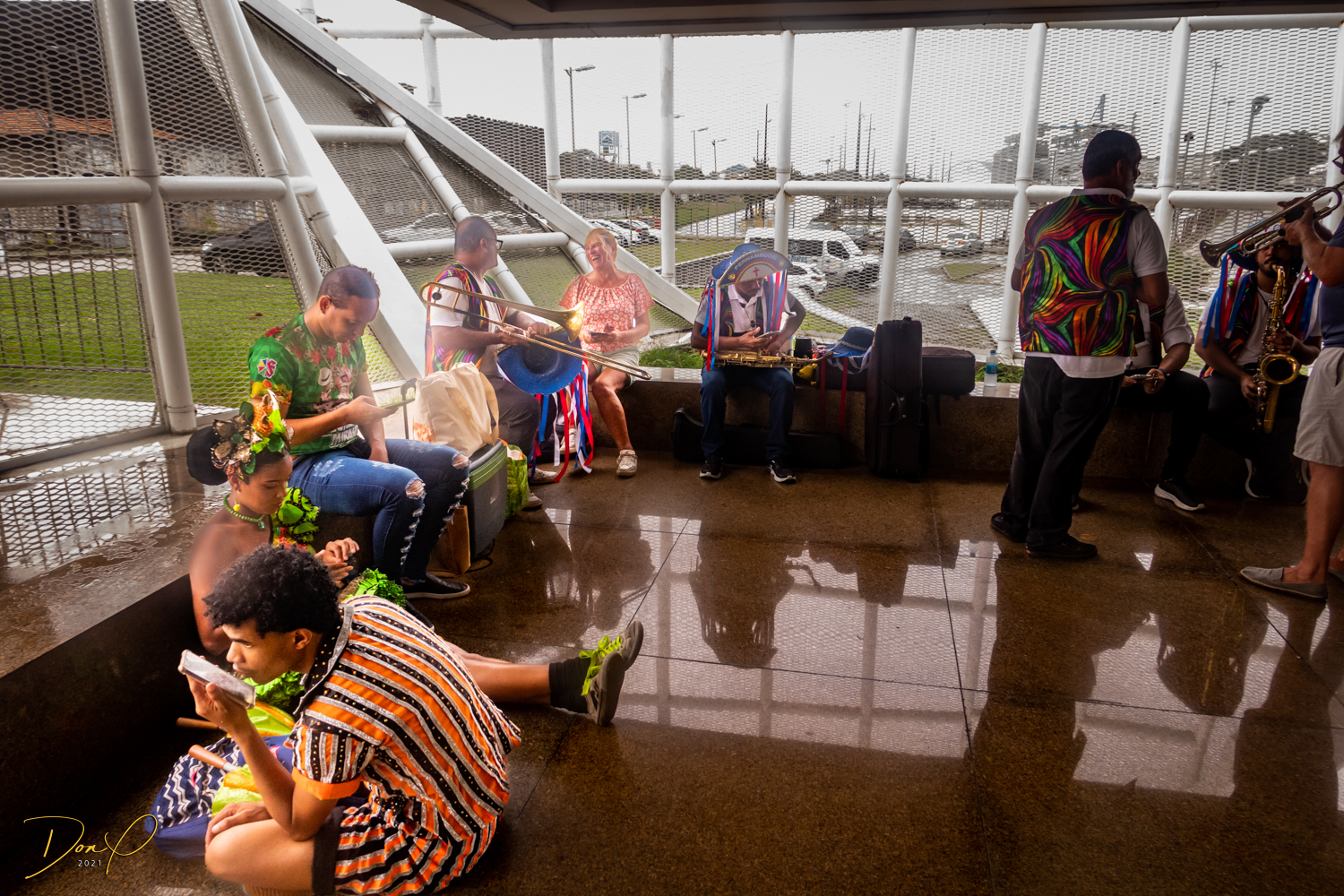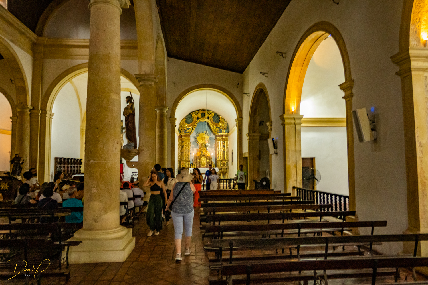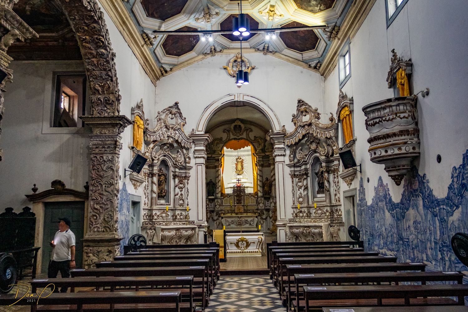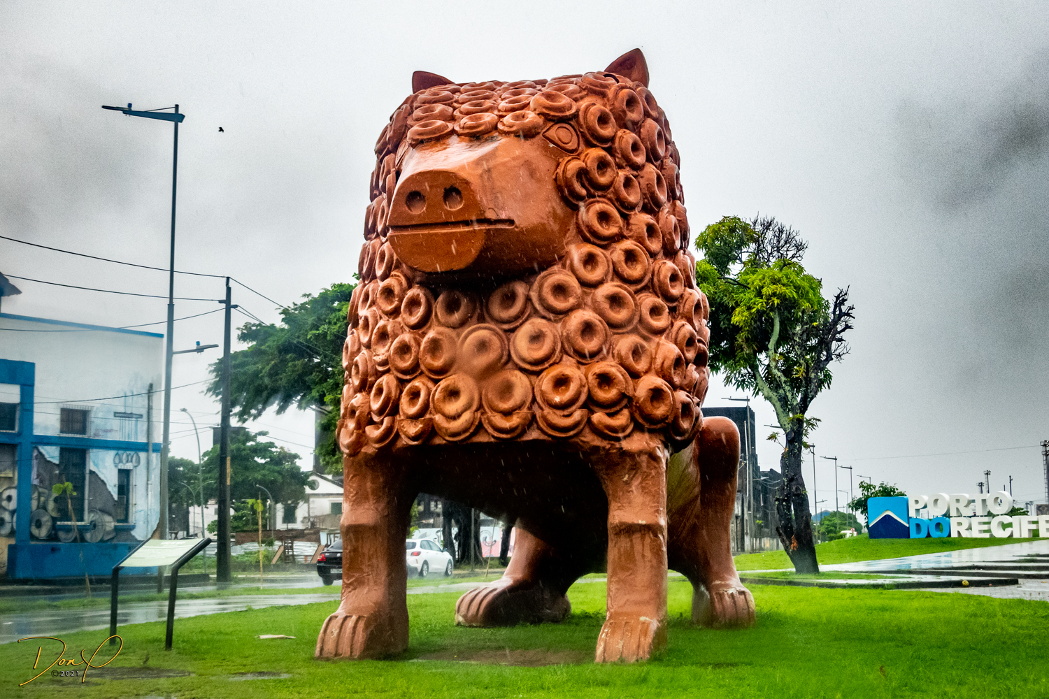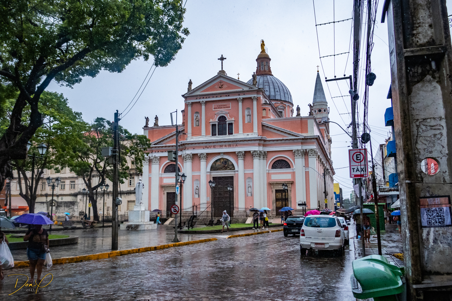Franklin takes us up the hill to the next town of Olinda where colorful buildings and houses are everywhere! We visit Cathedrals and churches and photograph them to our cameras delight! We get ocean and harbor views in the rain and fog! At times the rain is heavier. But it is a warm rain and at no time do we feel uncomfortable! Soaking wet, the only thing i attempt to do is keep the camera dry. I am mostly successful at that. I am carrying a dry cloth in my back pocket that I use to occasionally wipe down the camera.