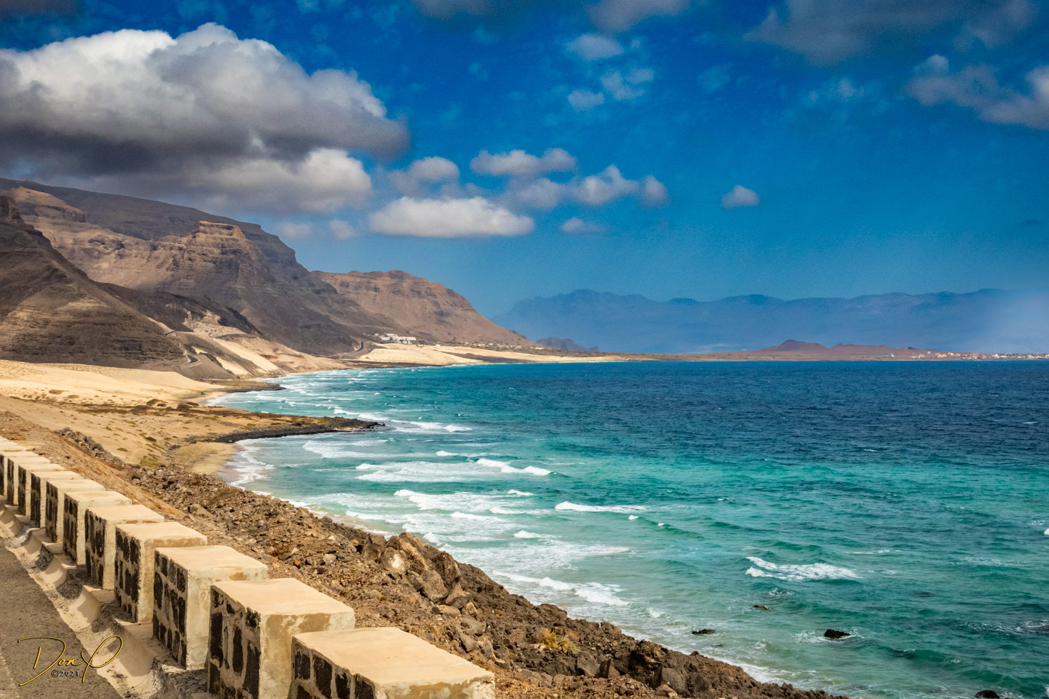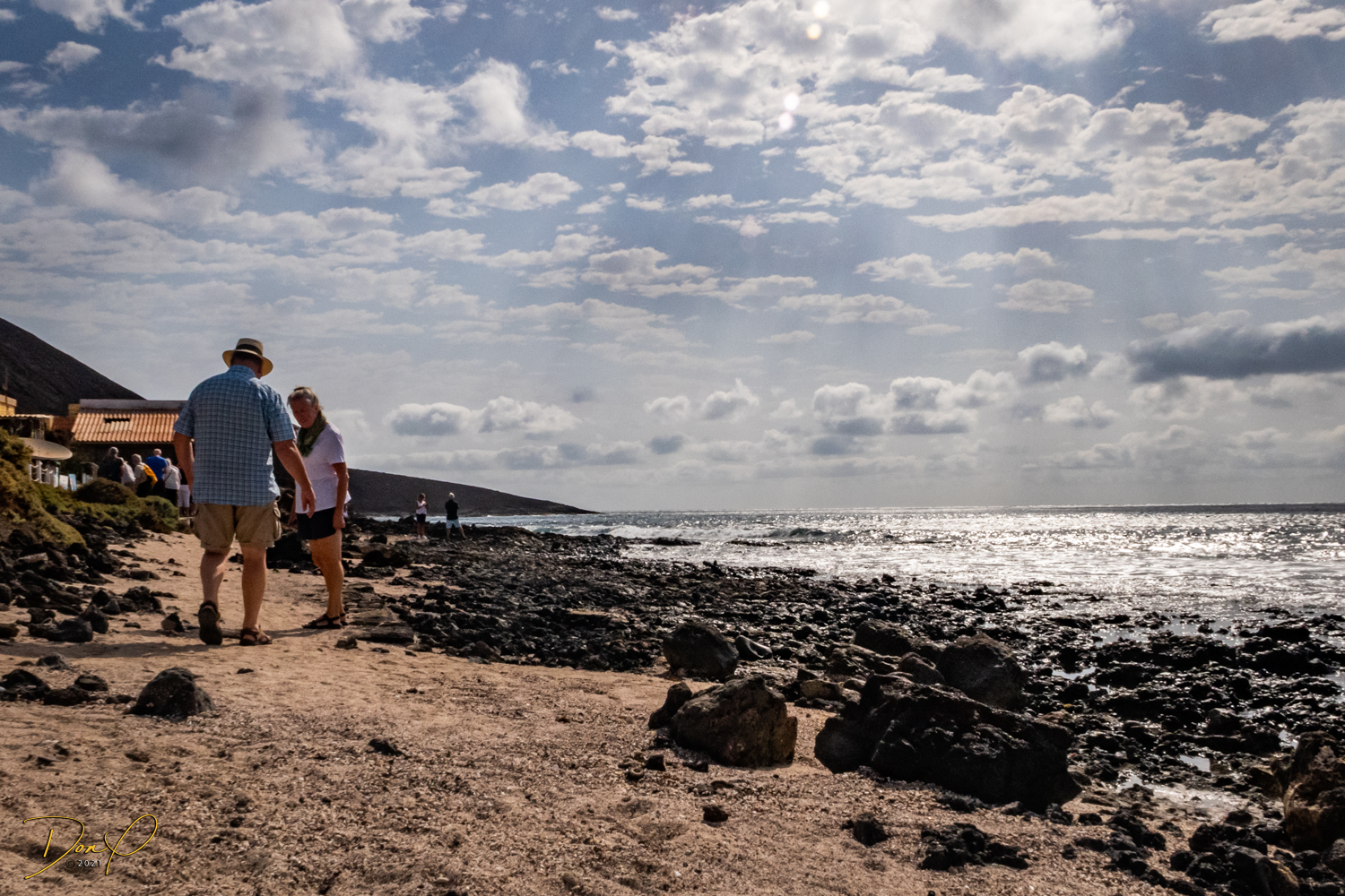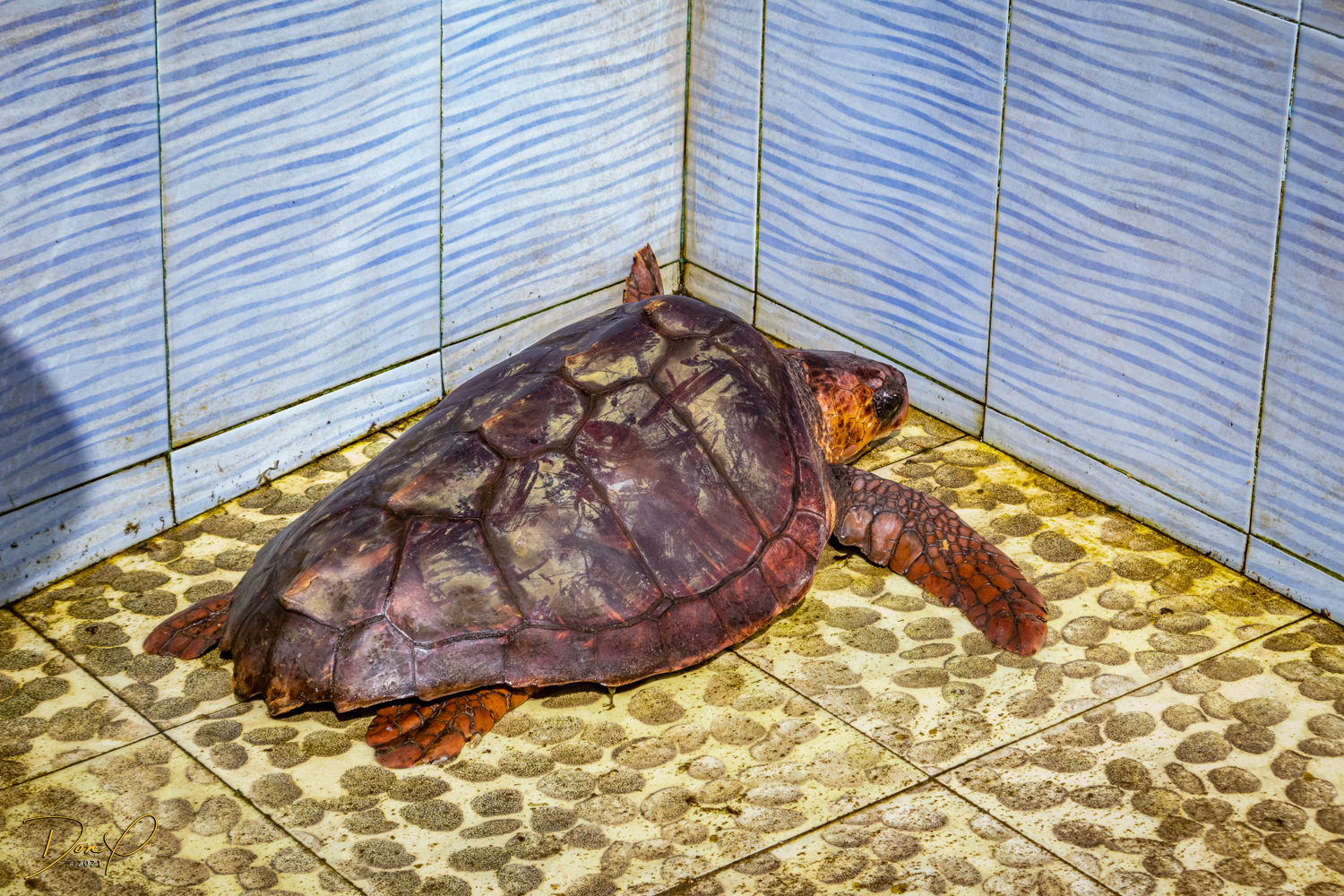 Driving on, we travel along the shore where the contrasting volcanic rock and sand dunes paint a picture with the azure seas and turquoise waters in the background. We arrive at a fishing village and our cameras are assaulted with views of fishermen and their boats and colorful houses. We walk along and come to a sea turtle rehabilitation center and even see a sea turtle with a missing flipper (leg). We are told the flipper will grow back but we wonder how long that will take.