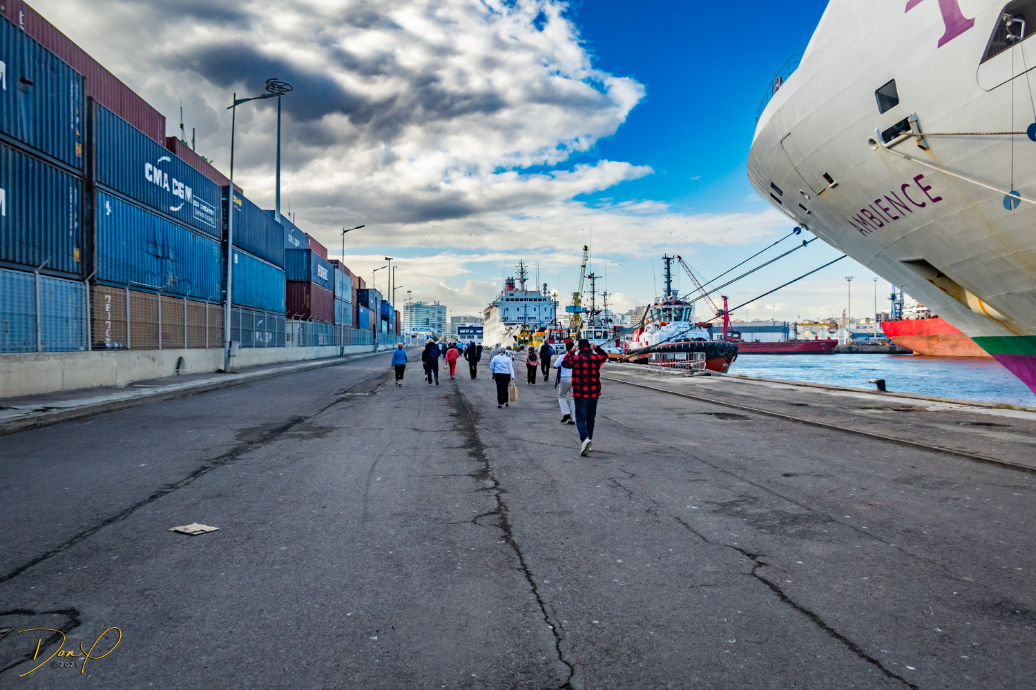 There are 3 busses scheduled for the tour. We watch, dejected as the first two bus loads head off ship. Then the last straw drops as the third bus load heads off ship. Talk about disappointment? This excursion means more to me than most as it is a bucket list item since childhood! There is some commotion among the organizers and suddenly we are approached and offered two seats on bus three! Yippee! We made it after all!